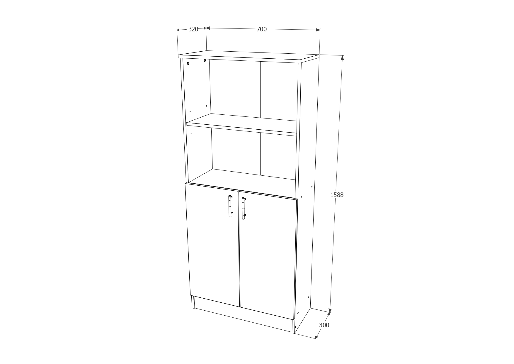 Biblioteca Flint, cu Usi Inferioare si O Polita, Wenge, 70 x 32 x 159 cm