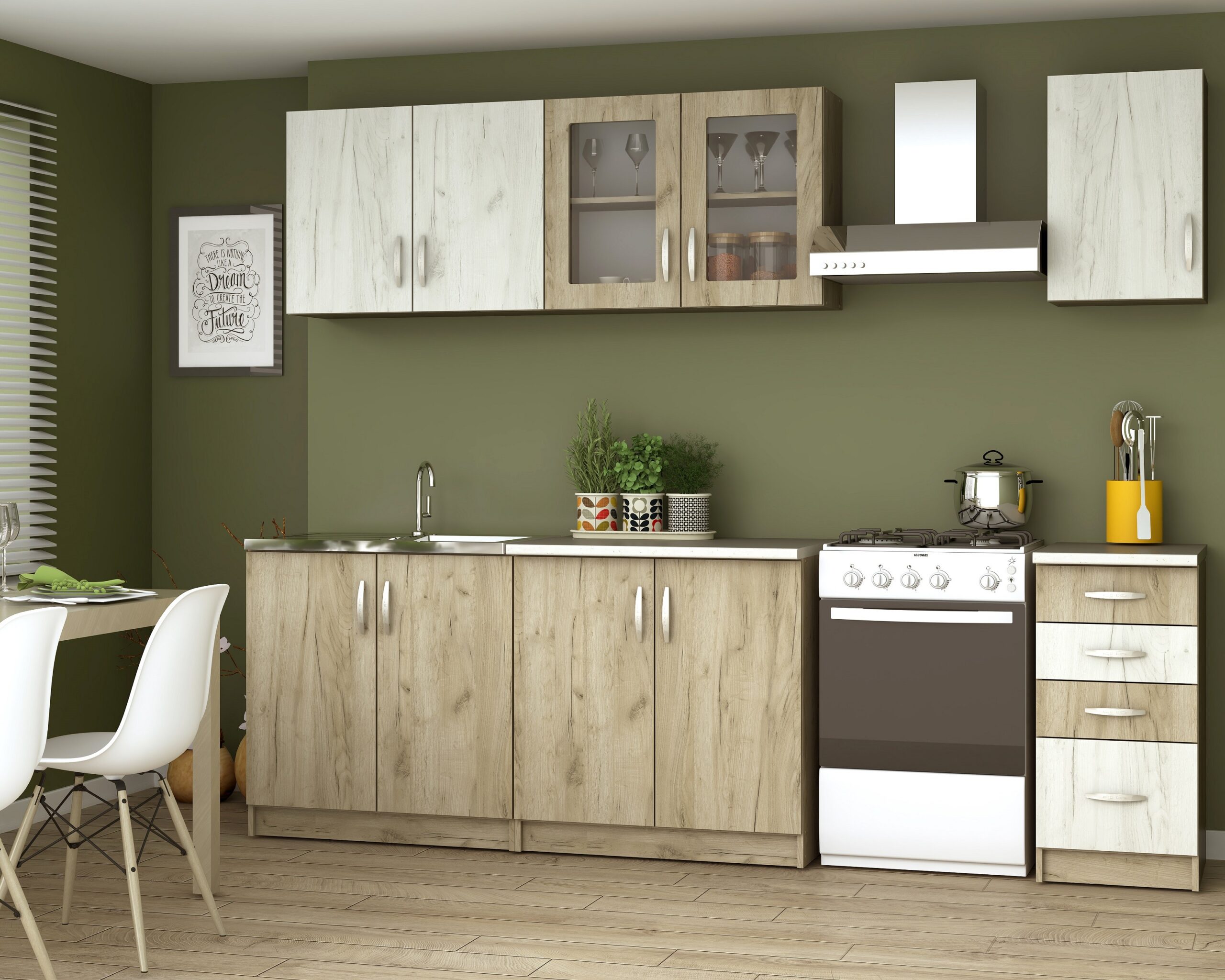 Bucatarie Venus ro, 200x60x200 cm, k001+k002