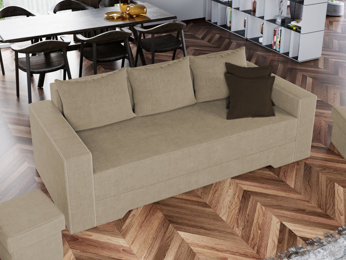 Canapea Bella Castel 15 Canapea Bella Castel 15 are un design linear, modern si versatil. Cele trei perne detasabile aduc acesteia un plus si in confort, sustinand corpul in pozitia dorita. Canapeaua este spatioasa, fiind ideala pentru trei persoane. In plus, datorita posibilitatii de extindere , obtineti un spatiu pentru odihna si relaxare pentru doua persoane, cu suprafata utila de 153 x 190 cm . Dimensiunile acestei canapele sunt: 228 cm lungime, 106 cm latime, 88 cm inaltime totala . Este prevazuta cu lada pentru depozitare, utila pentru depozitarea lenjeriei, a pernelor sau a paturii, pentru a pastra la indemana toate articolele frecvent utilizate. Este tapitata cu stofa de calitate pe diverse culori. Atentie: Pretul afisat nu include alte accesorii sau obiecte de decor. Taburetele, pernele deco si draperiile se pot achizitiona optional. Livrare gratuita si rapida, 4-10 zile lucratoare prin flota proprie Suntem producatori de tapiterii, fara intermediari Toate piesele de tapiterii au o garantie de 2 ani Sezutul si extensia canapelei sunt pe relaxa (arcuri elicoidale și poliuretan) . Scheletul este rezistent, realizat pe structura solida de fag si pal . Extensia este de tip Doppelliege, ce prezinta un sistem actionat prin role, astfel ca partea de sezut se trage si permite partii de spatar sa gliseze spre partea din fata si sa se pozitioneze orizontal. Canapea Bella Castel 15 se incadreaza cu usurinta in majoritatea locuintelor indiferent de stilul acestora. Puteti alege din mai multe culori pentru stofa. Produsele disponibile le puteti vedea aici Modele Bella . Dimensiuni Canapea Bella Castel 15 Lungime: 228 cm Latime: 106 cm Inaltime sezut: 45 cm Inaltime totala: 88 cm Inaltime fara perne: 78 cm Adancime sezut: 82 cm Latime brate: 18 cm Inaltime brate: 60 cm Dimensiuni extinsa Lungime extinsa: 190 cm Adancime extinsa: 153 cm Tapiterie Canapea Bella Castel 15 Tapiteria produsului este din stofa Castel 15 . Nuanta acestui produs nu este pretentioasa, mascheaza eventualele evenimente neplacute prin care se poate murdari sau pata si se integreaza perfect in majoritatea locuintelor. Intretinere: se recomanda ca praful sa se stearga cu un material textil moale (finet) umed si sa nu se curete cu agenti chimici (diluant, acetona). Imaginile sunt cu titlu de prezentare si pot avea mici diferente de nuante in functie de display. Dimensiunile sunt exprimate în centimetri și pot oscila între ± 50 mm.