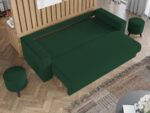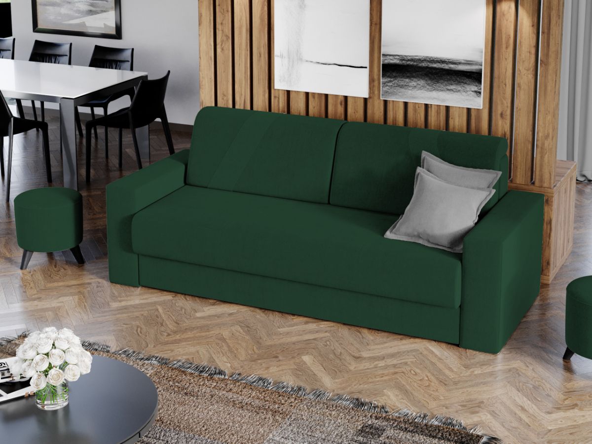 Canapea Bravisimo Verde Canapea Bravisimo Verde este o canapea versatila, cu un design inedit, care iese in evidenta in orice sufragerie sau living. Datorita posibilitatii de extindere , obtineti un spatiu pentru odihna si relaxare cu suprafata utila de 148 x 190 cm . Aceasta este prevazuta si cu lada de depozitare , utila pentru a pastra lenjeria, pernele sau patura si pentru a pastra la indemana toate articolele frecvent utilizate. Este o canapea cu trei locuri , dimensiunile acesteia fiind de: 235 cm lungime, 100 cm latime, 90 cm inaltime totala. Este tapitata cu stofa de calitate pe diverse culori. Dungile pernelor sunt din stofa de aceeasi culoare ca si restul canapelei. Atentie: Pretul afisat nu include alte accesorii sau obiecte de decor. Taburetele, pernele deco si draperiile se pot achizitiona optional. Livrare gratuita si rapida, 4-10 zile lucratoare prin flota proprie Suntem producatori de tapiterii, fara intermediari Toate piesele de tapiterii au o garantie de 2 ani Sezutul si extensia canapelei sunt pe relaxa (arcuri elicoidale si poliuretan) . Scheletul este rezistent, realizat pe structura solida de fag si pal . Extensia este de tip Doppelliege, ce prezinta un sistem actionat prin role, astfel ca partea de sezut se trage si permite partii de spatar sa gliseze spre partea din fata si sa se pozitioneze orizontal. Canapea Bravisimo Verde se incadreaza cu usurinta in majoritatea locuintelor indiferent de stilul acestora. Puteti alege din mai multe culori pentru stofa. Produsele disponibile le puteti vedea aici Modele Bravisimo . Dimensiuni Canapea Bravisimo Verde Lungime: 235 cm Latime: 100 cm Lungime intre brate: 190 cm Inaltime sezut: 45 cm Inaltime: 90 cm Adancime sezut: 75 cm Inaltime brate: 60 cm Lungime brate: 92 cm Grosime brate: 21 cm Dimensiuni extinsa Lungime extinsa: 190 cm Adancime extinsa: 148 cm Tapiterie Canapea Bravisimo Verde Tapiteria produsului este din stofa Verde . Nuanta acestui produs nu este pretentioasa, mascheaza eventualele evenimente neplacute prin care se poate murdari sau pata si se integreaza perfect in majoritatea locuintelor. Intretinere: se recomanda ca praful sa se stearga cu un material textil moale (finet) umed si sa nu se curete cu agenti chimici (diluant, acetona). Imaginile sunt cu titlu de prezentare si pot avea mici diferente de nuante in functie de display. Dimensiunile sunt exprimate în centimetri si pot oscila între ± 50 mm.
