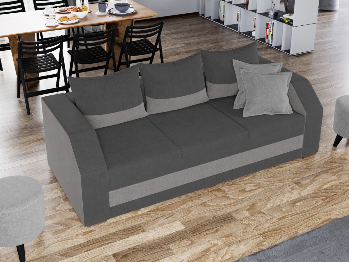 Canapea Camino Gri Antracit / Gri Canapeaua Camino este o canapea extensibila cu lada pentru living cu un aspect modern si usor elegant. Designul imbina doua nuante de stofa si, impreuna cu bratele cu forma deosebita, creeaza un stil desavarsit. Cele trei perne incluse sunt detasabile. Atentie: Pretul afisat nu include alte accesorii sau obiecte de decor. Taburetele, pernele deco si draperiile se pot achizitiona optional. Livrare gratuita si rapida, 4-10 zile lucratoare prin flota proprie Suntem producatori de tapiterii, fara intermediari Toate piesele de tapiterii au o garantie de 2 ani Canapea Camino Gri Antracit / Gri este potrivita pentru incaperi medii sau mari si are dimensiunile de: 220 cm lungime, 94 cm latime, 87 cm inaltime totala. In plus, datorita posibilitatii de extindere, obtineti un spatiu pentru odihna si relaxare, cu suprafata utila 180 x 140 cm . Canapea Camino Gri Antracit / Gri Sezutul si extensia canapelei sunt pe relaxa (arcuri elicoidale si poliuretan) . Ofera fermitatea optima, dar si confortul dorit. Poti trage un pui de somn binemeritat in timpul zilei sau te poti relaxa cu familia si prietenii seara. O canapea confortabila, care ofera spatiu generos. Lada incorporata este ideala pentru depozitarea lenjeriei, a pernelor sau a paturii, pentru a pastra la indemana toate articolele frecvent utilizate. Scheletul este rezistent realizat pe structura solida. Avem incredere in imaginatia dvs. in materie de mobilier. Moderna, incapatoare si comoda, Canapea Camino Gri Antracit / Gri poate fi acompaniata de multe stiluri de mobila. Canapeaua este extensibila si se transforma rapid intr-un pat de doua persoane de 180 x 140 cm. Dimensiuni Canapea Camino Lungime totala: 220 cm Latime totala: 94 cm Lungime intre brate: 180 cm Inaltime brat: 65 cm Inaltime totala: 87 cm Inaltime sezut: 42 cm Adancime sezut cu perne: 52 cm Adancime sezut fara perne: 80 cm Spatiu de dormit dupa extindere: 180 x 140 cm Tapiterie Canapea Extensibila Camino Tapiteria produsului este din stofa . Nuanta acestui produs nu este pretentioasa, mascheaza eventualele evenimente neplacute prin care se poate murdari sau pata si se integreaza perfect in majoritatea locuintelor. Intretinere: se recomanda ca praful sa se stearga cu un material textil moale (finet) umed si sa nu se curete cu agenti chimici (diluant, acetona). Imaginile sunt cu titlu de prezentare si pot avea diferente de nuanta in functie de display. Dimensiunile sunt exprimate în centimetri si pot oscila între ± 50 mm.