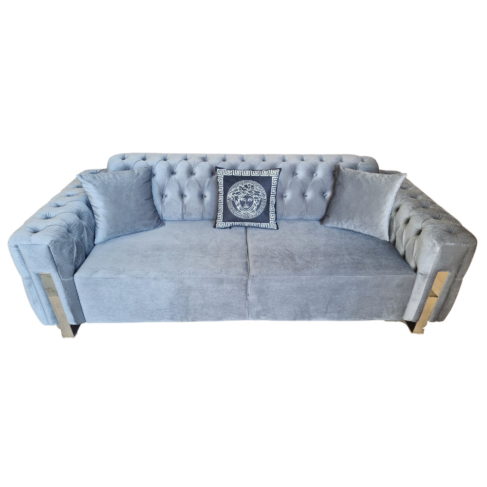 Canapea Extensibila Carmen Electric, 240x95x75cm, 3 locuri, Baby Face V-27 Grey, Glasspandoor Lungime: 240 cm Latime: 95 cm Inaltime:75 cm Inaltime sezut: 45 cm Produsul este realizat pe structura de pal de 18mm, cu grinzi de rezistenta, din lemn de brad de 3x5cm si 5x5cm.