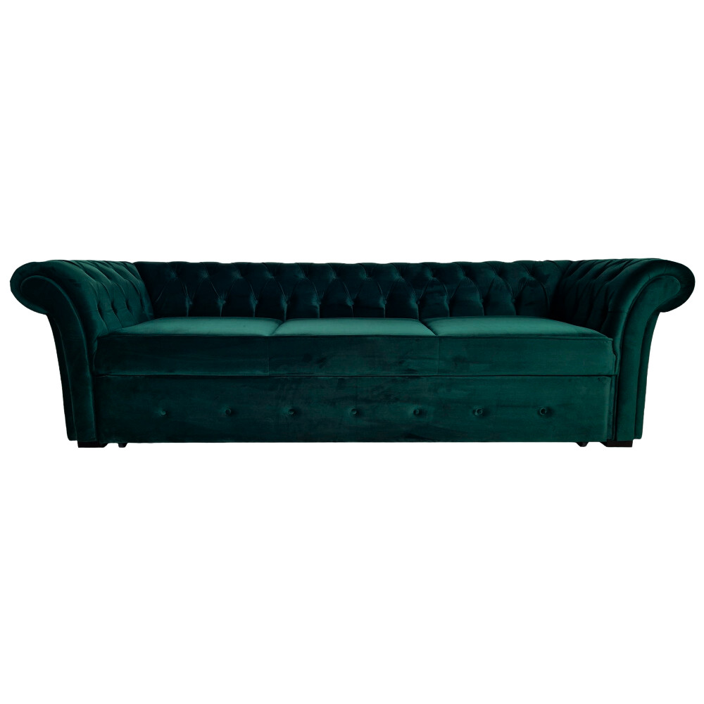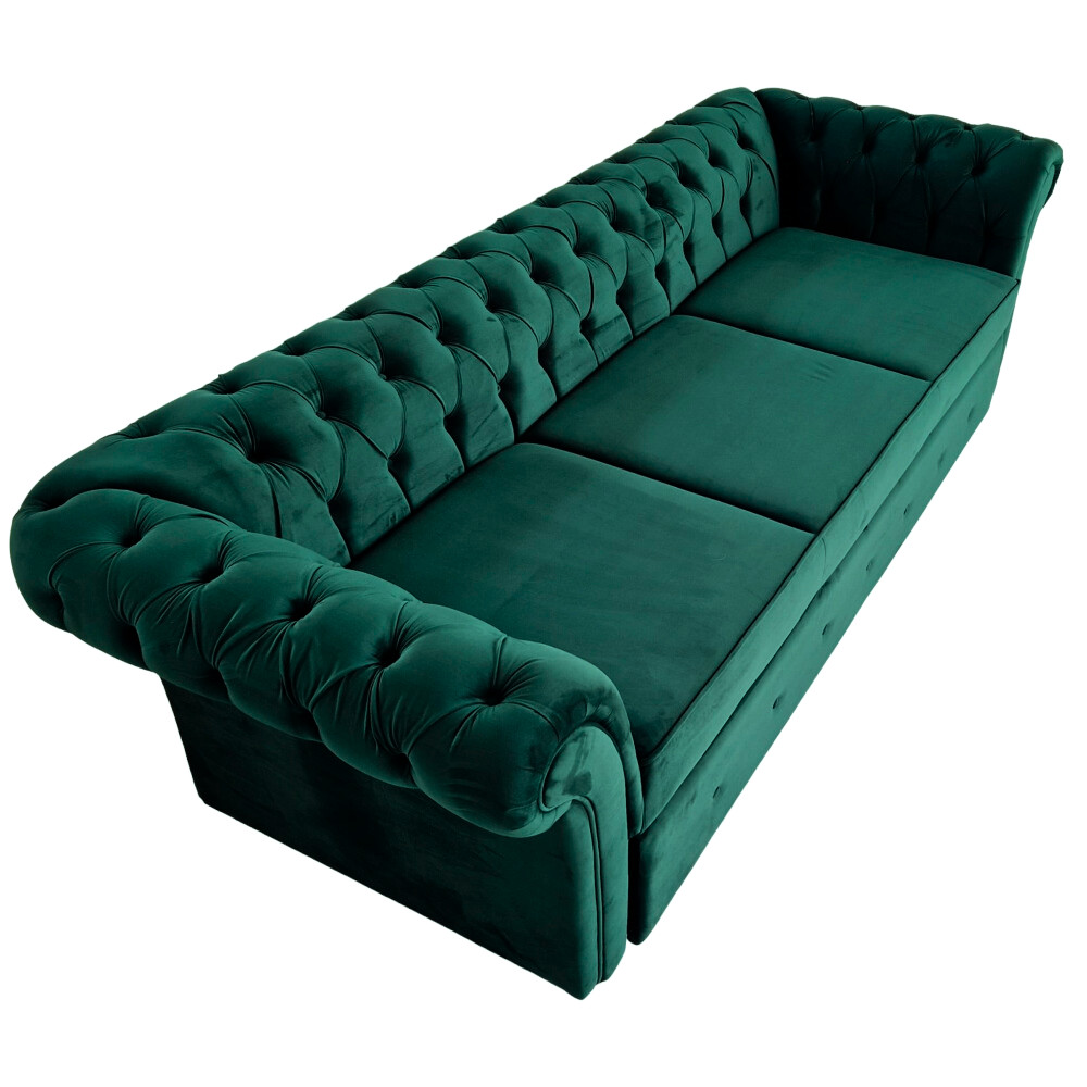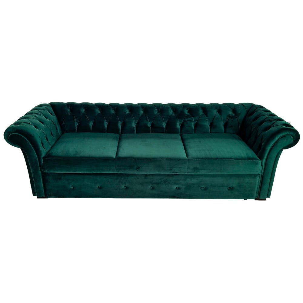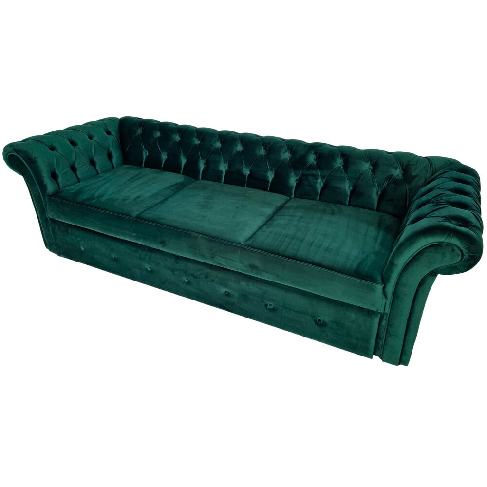 Canapea Extensibila Chesterfield, 250x100x75cm, 3 locuri, Velutto 27 Jungle Green, Glasspandoor