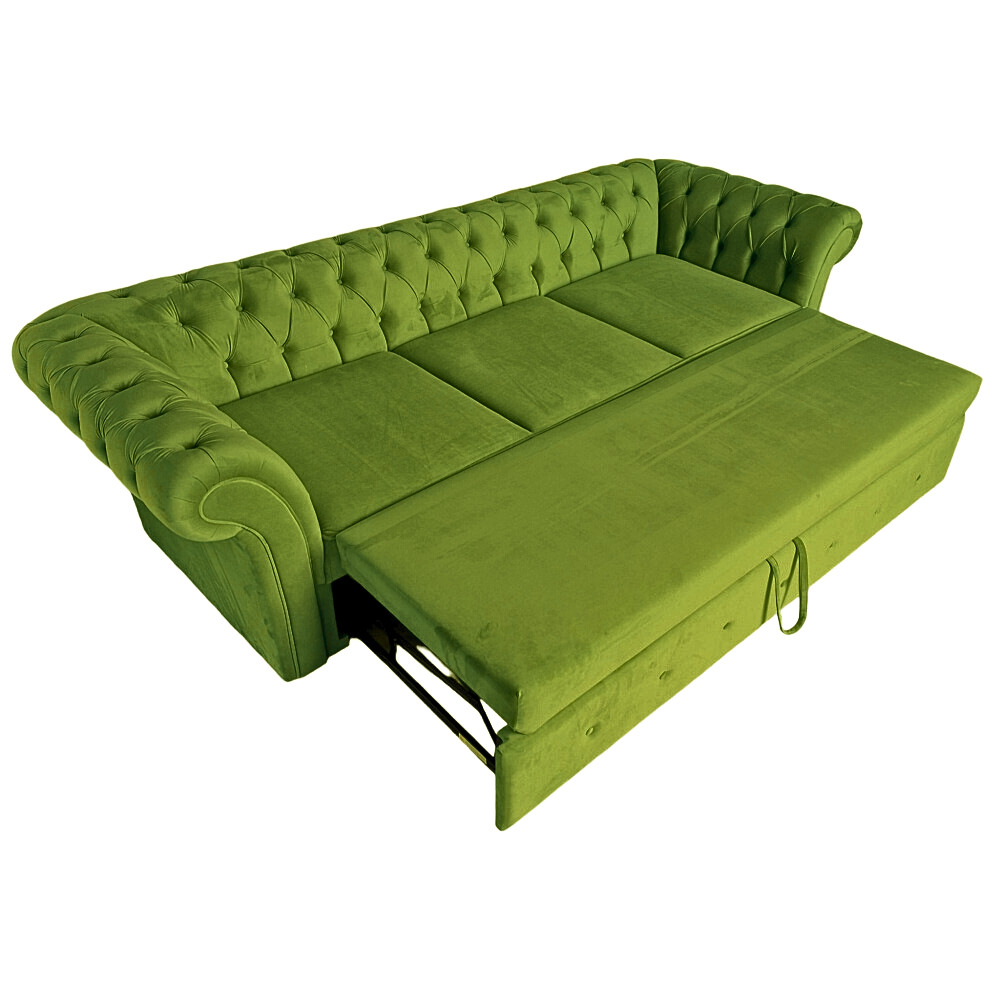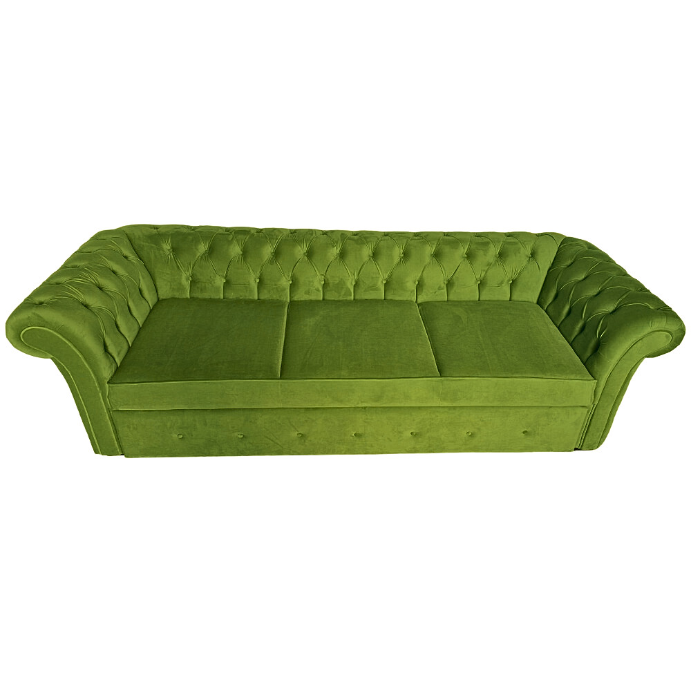 Canapea Extensibila Chesterfield, 250x100x75cm, 3 locuri, Velutto 35 Cedar, Glasspandoor Lungime: 250 cm Latime: 100 cm Inaltime:75 cm Inaltime sezut: 45 cm Produsul este realizat pe structura de pal de 18mm, cu grinzi de rezistenta, din lemn de brad de 3x5cm si 5x5cm.