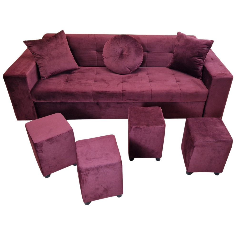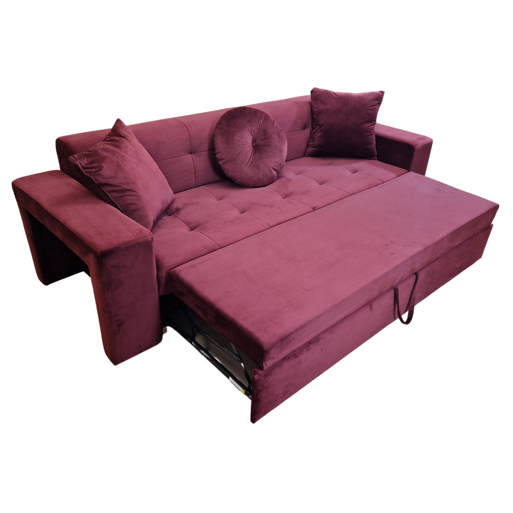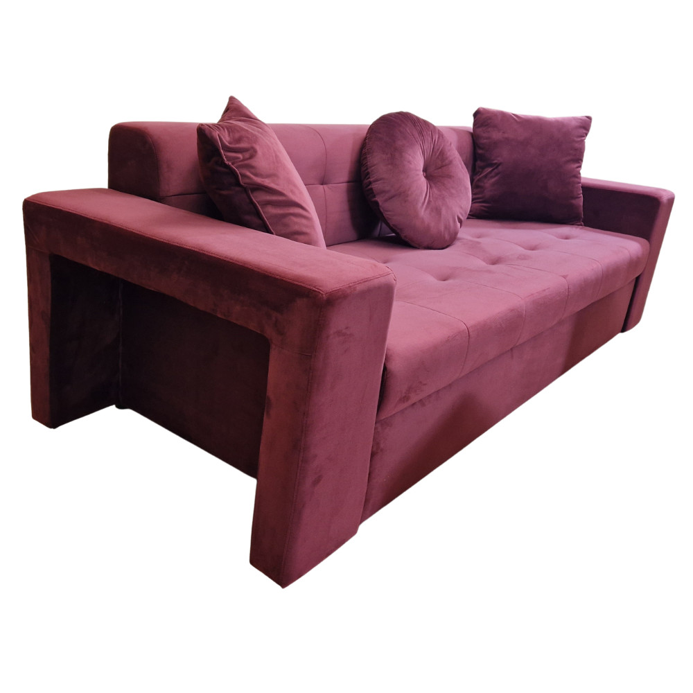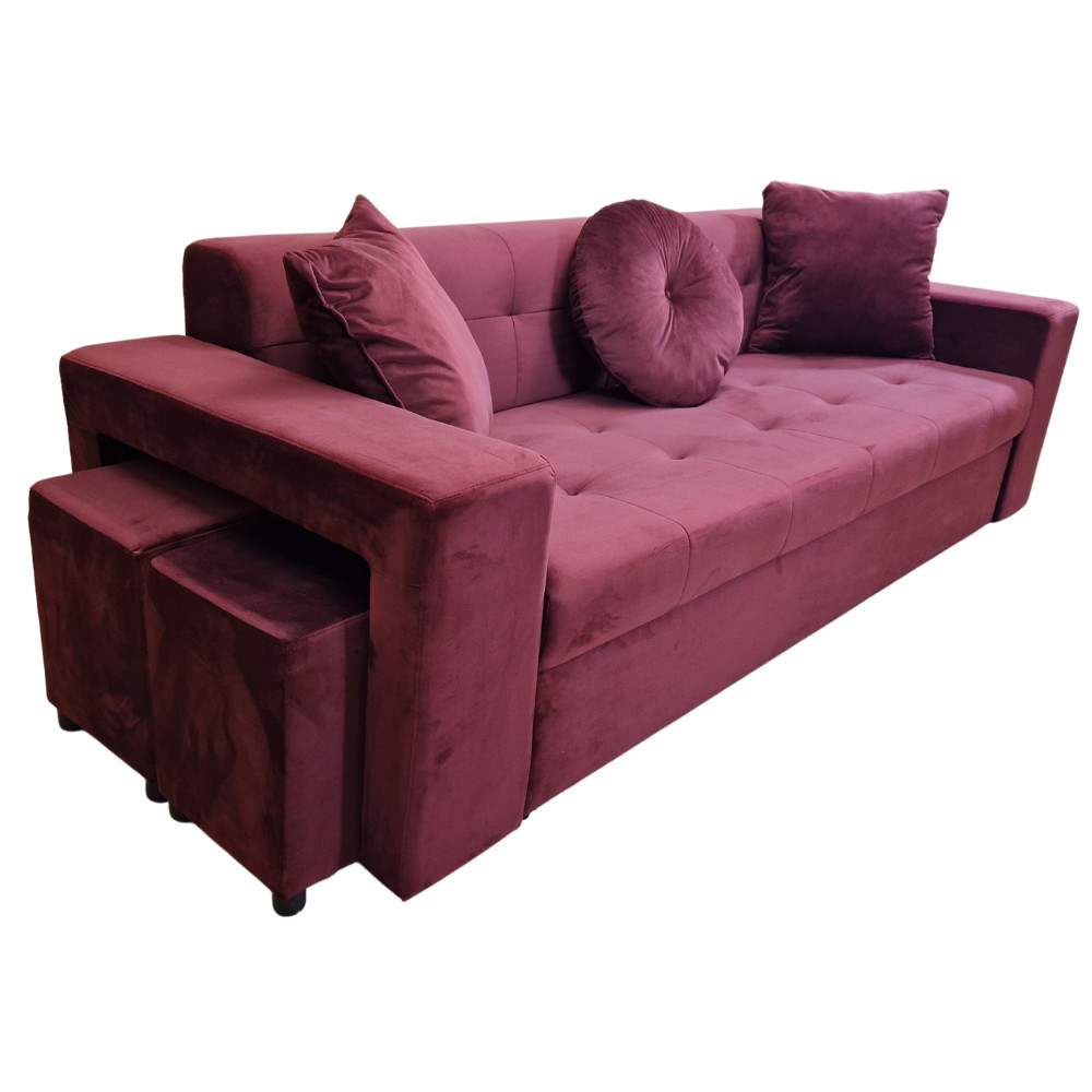 Canapea Extensibila Corporate, 3 locuri, 230x90x80cm, Velutto 32 Chianti, Glasspandoor Lungime: 230 cm Latime: 90 cm Inaltime:80 cm Inaltime sezut: 45 cm Produsul este realizat pe structura de pal de 18mm, cu grinzi de rezistenta, din lemn de brad de 3x5cm si 5x5cm. Acesta canapea are 4 tabureti inclusi, care sunt plasati sub bratele acesteia. Dimensiunea fiecarui taburet este: 33x33x45cm