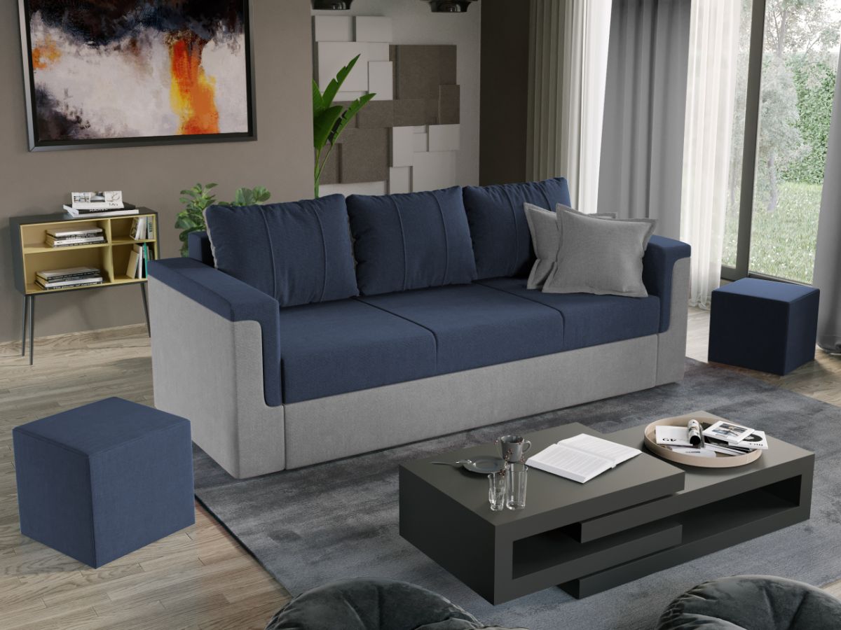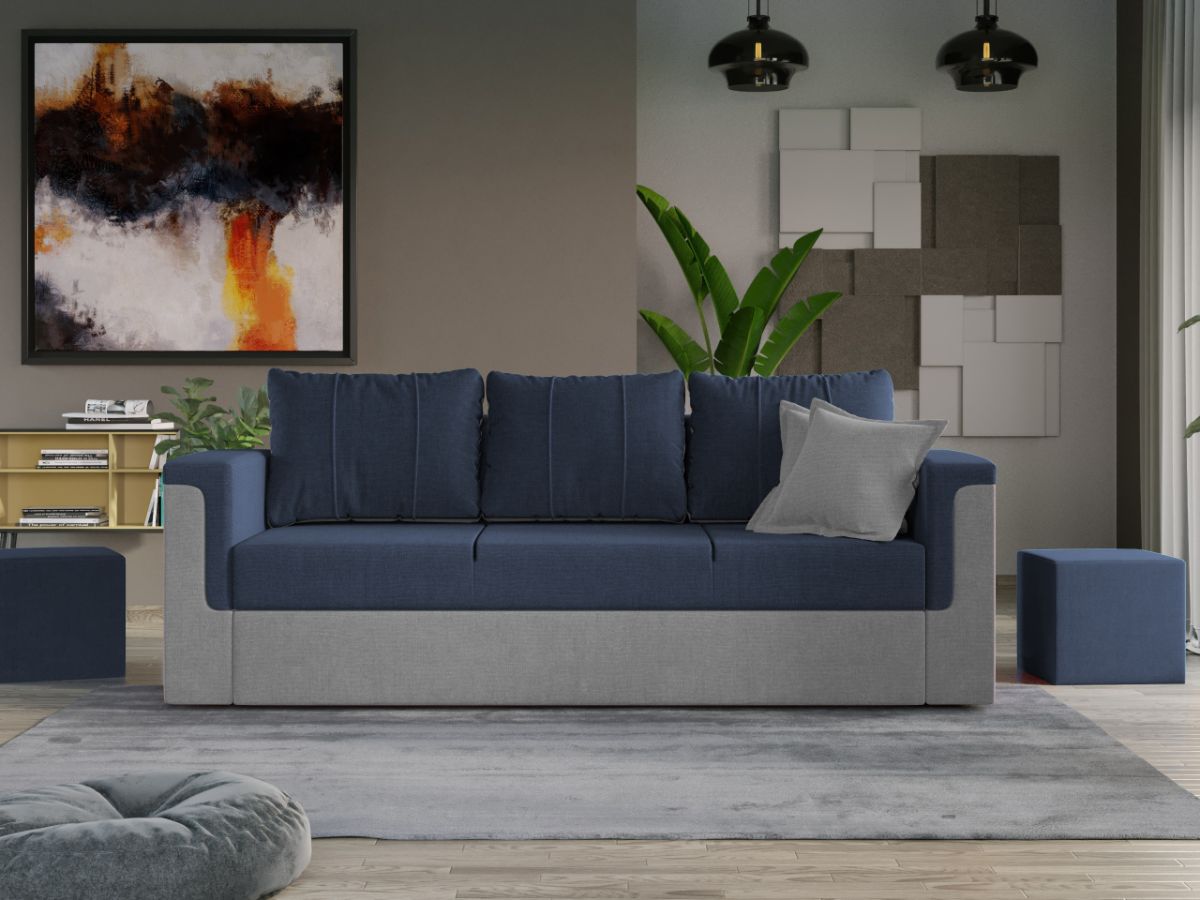 Canapea Extensibila Faro gri / petrol O canapea ideala pentru relaxare, dar şi pentru somn. Canapea Extensibila Faro gri / petrol cu lada are 3 perne mari si sezut relaxa, totul pentru confortul tau. Designul imbina doua nuante de stofa si creeaza un stil desavarsit. Atentie: Pretul afisat nu include alte accesorii sau obiecte de decor. Taburetele, pernele deco si draperiile se pot achizitiona optional. Livrare gratuita si rapida, 4-10 zile lucratoare prin flota proprie Suntem producatori de tapiterii, fara intermediari Toate piesele de tapiterii au o garantie de 2 ani Canapea Extensibila Faro gri / petrol este potrivita pentru incaperi medii sau mari si are dimensiunile de: 220 cm lungime, 95 cm latime, 85 cm inaltime totala . In plus, datorita posibilitatii de extindere, obtineti un spatiu pentru odihna si relaxare, cu suprafata utila 180 x 140 cm . Canapea Extensibila Faro gri / petrol Sezutul si extensia canapelei sunt pe relaxa (arcuri elicoidale și poliuretan) . Ofera fermitatea optima, dar si confortul dorit. Poti trage un pui de somn binemeritat in timpul zilei sau te poti relaxa cu familia si prietenii seara. O canapea confortabila, care ofera spatiu generos. Lada incorporata este ideala pentru depozitarea lenjeriei, a pernelor sau a paturii, pentru a pastra la indemana toate articolele frecvent utilizate. Scheletul este rezistent realizat pe structura solida. Avem incredere in imaginatia dvs. in materie de mobilier. Moderna, incapatoare si comoda, Canapea Extensibila Faro gri / petrol poate fi acompaniata de multe stiluri de mobila. Canapeaua este extensibila si se transforma rapid intr-un pat de doua persoane de 180 x 140 cm Dimensiuni Canapea Faro Lungime totala: 220 cm Latime totala: 95 cm Lungime intre brate: 180 cm Inaltime brate: 60 cm Inaltime spatar cu perne: 85 cm Inaltime sezut: 43 cm Adancime sezut cu perne: 58 cm Adancime sezut fara perne: 80 cm Spatiu de dormit dupa extindere: 180 x 140 cm Tapiterie Canapea Extensibila Faro Tapiteria produsului este din stofa . Nuanta acestui produs nu este pretentioasa, mascheaza eventualele evenimente neplacute prin care se poate murdari sau pata si se integreaza perfect in majoritatea locuintelor. Intretinere: se recomanda ca praful sa se stearga cu un material textil moale (finet) umed si sa nu se curete cu agenti chimici (diluant, acetona). Imaginile sunt cu titlu de prezentare si pot avea diferente de nuanta in functie de display. Dimensiunile sunt exprimate în centimetri și pot oscila între ± 50 mm.