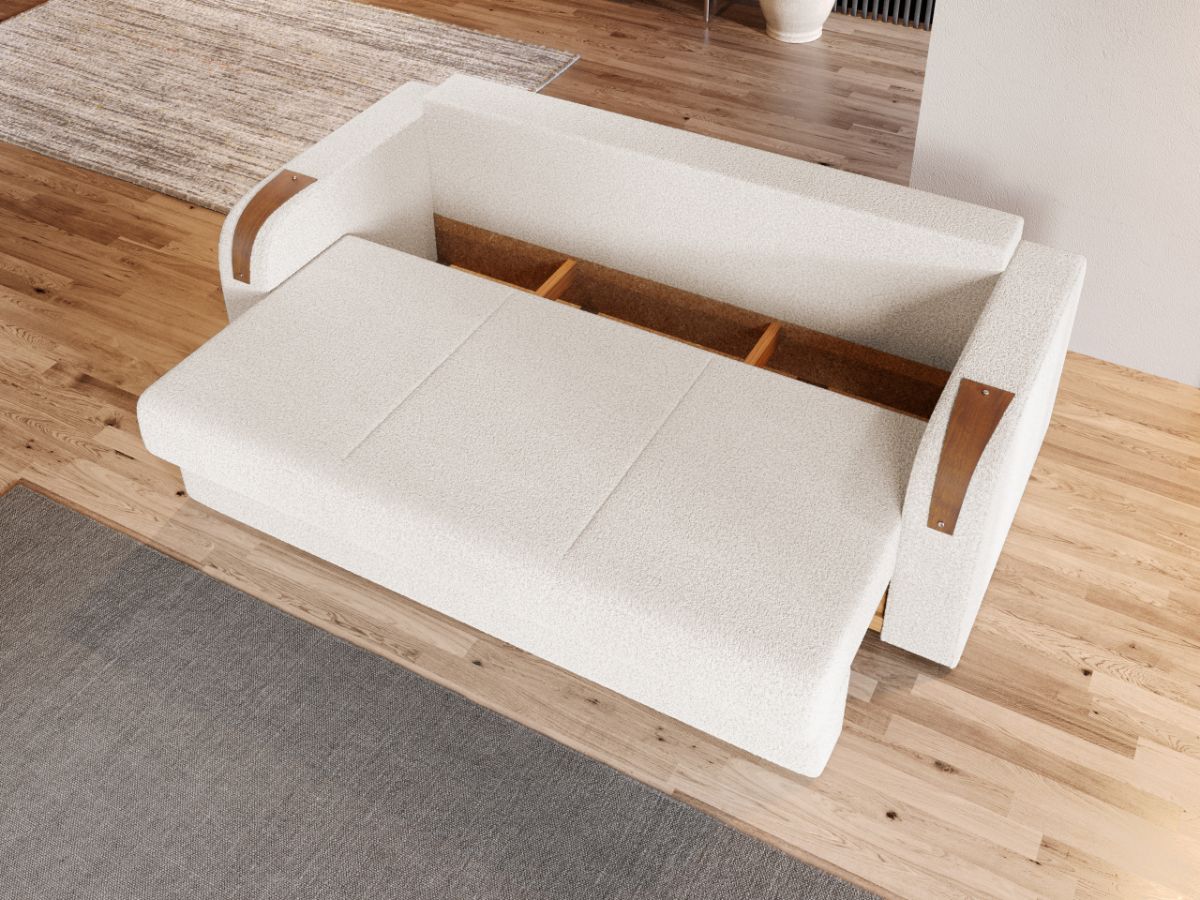 Canapea Morelia plusata aspect lana alba Canapea Morelia plusata aspect lana alba este o canapea extensibila cu lada, cu un aspect minimalist si usor elegant, datorita insertiilor de lemn de pe brate. Este usor de integrat in orice decor, fiind ideala pentru incaperi medii sau mari si are dimensiuni generoase: 210 cm lungime, 93 cm latime, 85 cm inaltime totala . In plus, datorita posibilitatii de extindere , obtineti un spatiu pentru odihna si relaxare, cu suprafata utila 180 x 145 cm . Cele trei perne ale canapelei sunt detasabile . Atentie: Pretul afisat nu include alte accesorii sau obiecte de decor. Taburetele, pernele deco si draperiile se pot achizitiona optional. Livrare gratuita si rapida, 4-10 zile lucratoare prin flota proprie Suntem producatori de tapiterii, fara intermediari Toate piesele de tapiterii au o garantie de 2 ani Sezutul si extensia canapelei sunt pe relaxa (arcuri elicoidale și poliuretan) . Lada incorporata este ideala pentru depozitarea lenjeriei sau a altor obiecte. Scheletul este rezistent realizat pe structura solida de fag si pal. Canapea Morelia se incadreaza cu usurinta in majoritatea locuintelor indiferent de stilul acestora. Puteti alege din mai multe culori pentru stofa. Produsele disponibile le puteti veadea aici Modele Morelia . Dimensiuni Canapea Morelia Lungime: 210 cm Latime: 93 cm Lungime intre brate: 180 cm Inaltime sezut: 42 cm Adancime sezut: 82 cm (fara perne) Adancime sezut: 60 cm (pana in perne) Inaltime cu perne: 85 cm Inaltime fara perne: 68 cm Dimensiuni extinsa Lungime extinsa: 180 cm Adancime extinsa: 145 cm Dimensiuni brate Inaltime brate: 64 cm Lungime brate: 93 cm Tapiterie Canapea Morelia plusata aspect lana alba Tapiteria produsului este din stofa plusata cu aspect lana alba . Nuanta acestui produs nu este pretentioasa, mascheaza eventualele evenimente neplacute prin care se poate murdari sau pata si se integreaza perfect in majoritatea locuintelor. Intretinere: se recomanda ca praful sa se stearga cu un material textil moale (finet) umed si sa nu se curete cu agenti chimici (diluant, acetona). Imaginile sunt cu titlu de prezentare si pot avea mici diferente de nuante in functie de display. Dimensiunile sunt exprimate în centimetri și pot oscila între ± 50 mm.