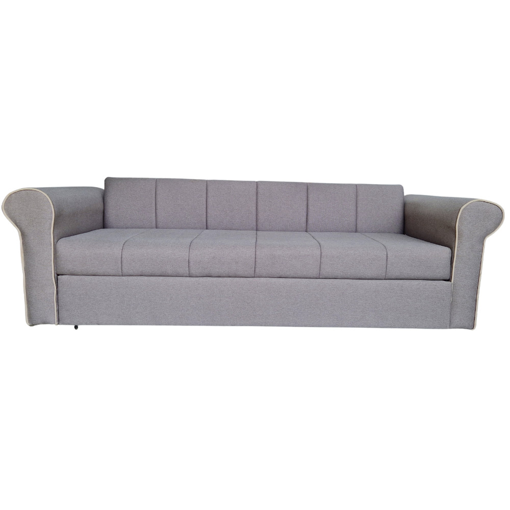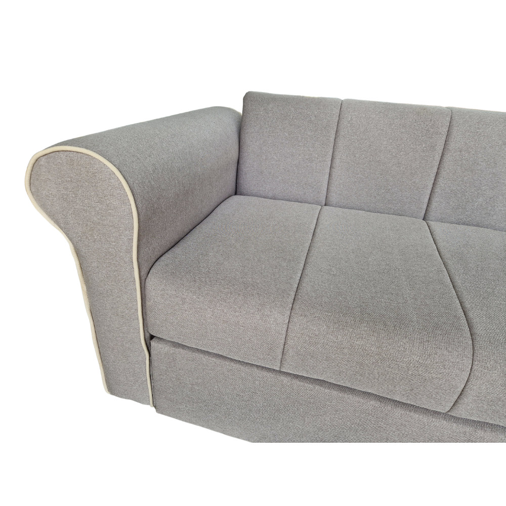Canapea Extensibila Nixos, 240x80x85cm, 3 locuri, Luna 31 Light Grey, Glasspandoor Lungime: 240 cm Latime: 80 cm Inaltime:85 cm Inaltime sezut: 46 cm Produsul este realizat pe structura de pal de 18mm, cu grinzi de rezistenta, din lemn de brad de 3x5cm si 5x5cm.