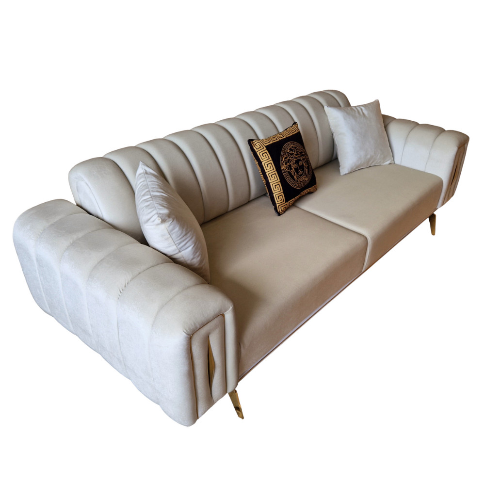 Canapea Extensibila Saray, 190x100x75cm, 2 locuri, Baby Face V-01 Beige, Glasspandoor Lungime: 190 cm Latime: 100 cm Inaltime:75 cm Inaltime sezut: 45 cm Produsul este realizat pe structura de pal de 18mm, cu grinzi de rezistenta, din lemn de brad de 3x5cm si 5x5cm.