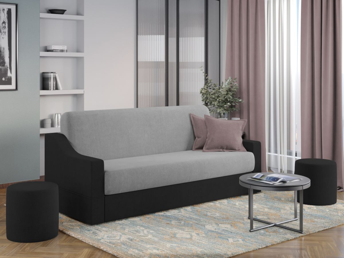 Canapea Iris Gri Deschis / Gri Antracit Canapea Iris Gri Deschis / Gri Antracit are un design minimalist si poate fi usor integrata alaturi de celelalte piese de mobilier din camera. Bratele canapelei ofera un suport placut si anatomic prin forma lor deosebita. Pe langa confort, acestea aduc un plus de stil. Dimensiunile sunt generoase si prin extindere se realizeaza un pat confortabil cu suprafata utila de 184 x 118 cm, in care se poate dormi atat ocazional, cat si zi de zi . Acesta are dimensiunea de: 210 cm lungime, 86 cm latime, 90 cm inaltime totala . Este tapitata cu stofa de calitate pe diverse culori. Atentie: Pretul afisat nu include alte accesorii sau obiecte de decor. Taburetele, pernele deco si draperiile se pot achizitiona optional. Livrare gratuita si rapida, 4-10 zile lucratoare prin flota proprie Suntem producatori de tapiterii, fara intermediari Toate piesele de tapiterii au o garantie de 2 ani Sezutul si extensia canapelei sunt pe relaxa (arcuri elicoidale si poliuretan) . Scheletul este rezistent, realizat pe structura solida de fag si pal . Sistemul de extensie este de tipul click-clack , se ridica de sezut, pana cand spatarul ajunge in pozitie orizontala si se aude un click, apoi se lasa sezutul si se formeaza zona de dormit. Sub sezut este lada pentru depozitare . Dupa extindere partea din spate ramane in pozitie fixa impiedicand alunecarea asternuturilor sau a pernelor. Canapea Iris Gri Deschis / Gri Antracit se incadreaza cu usurinta in majoritatea locuintelor indiferent de stilul acestora. Puteti alege din mai multe culori pentru stofa. Produsele disponibile le puteti vedea aici Modele Iris . Dimensiuni Canapea Iris Gri Deschis / Gri Antracit Latime: 210 cm Adancime: 86 cm Adancime sezut: 58 cm Inaltime sezut: 46 cm Inaltime: 90 cm Latime intre brate: 184 cm Adancime extinsa: 118 cm Spatiu de dormit: 184 x 118 cm Tapiterie Canapea Iris Gri Deschis / Gri Antracit Tapiteria produsului este din stofa Gri Deschis si Gri Antracit . Nuantele acestui produs nu sunt pretentioase, mascheaza eventualele evenimente neplacute prin care se pot murdari sau pata si se integreaza perfect in majoritatea locuintelor. Intretinere: se recomanda ca praful sa se stearga cu un material textil moale (finet) umed si sa nu se curete cu agenti chimici (diluant, acetona). Imaginile sunt cu titlu de prezentare si pot avea mici diferente de nuante in functie de display. Dimensiunile sunt exprimate în centimetri si pot oscila între ± 50 mm.