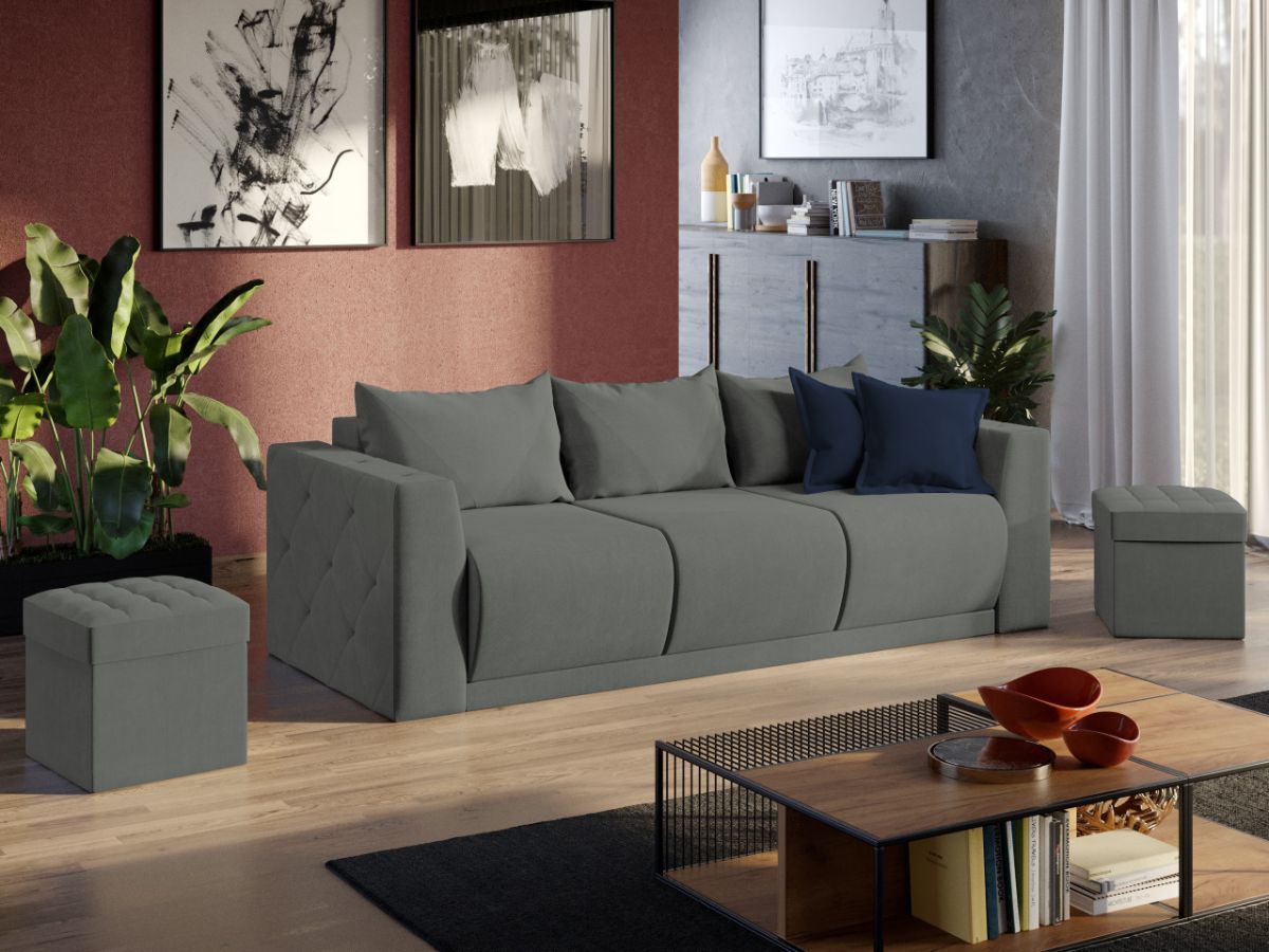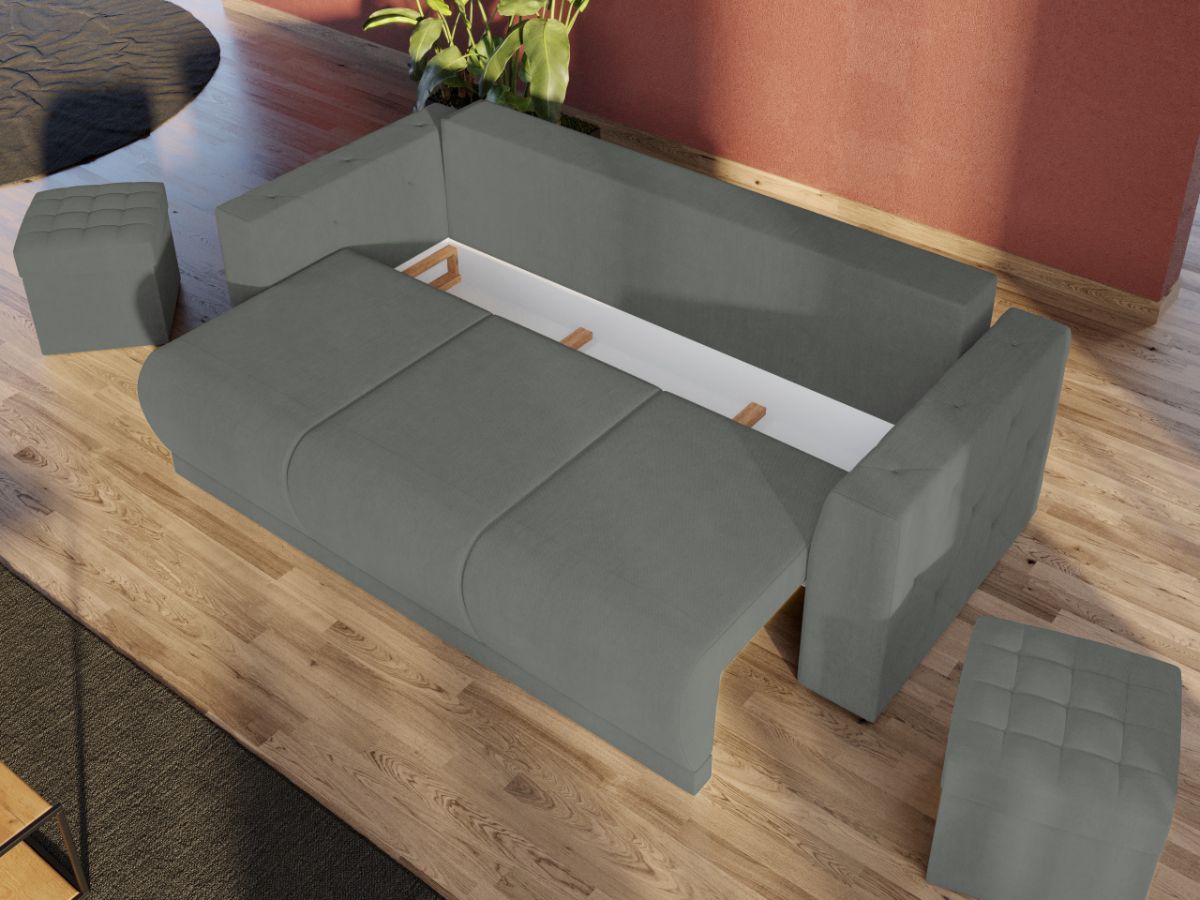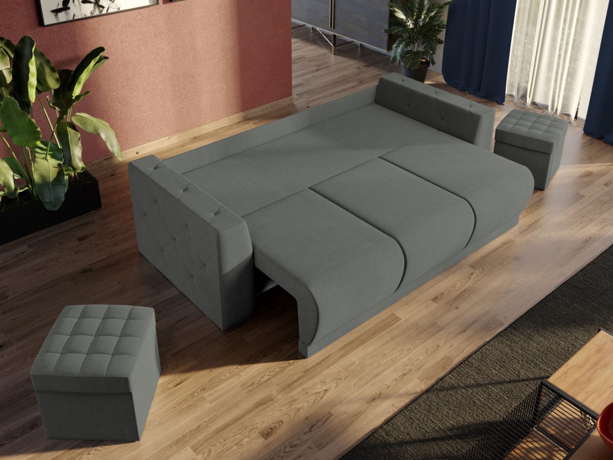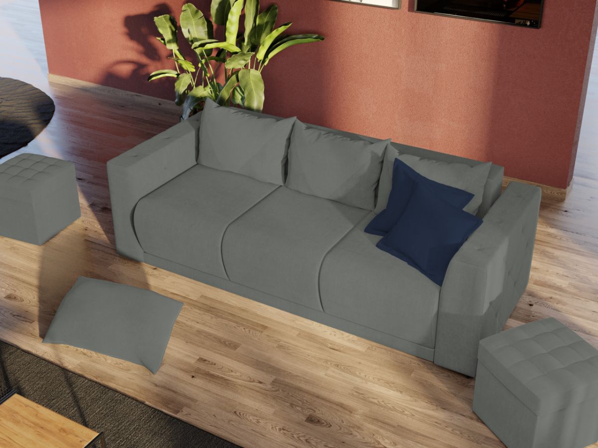 Canapea Luna Havana 10 Oferind trei locuri primitoare, Canapea Luna Havana 10  este un mobilier potrivit incaperilor mici si cochete. Mai mult, aspectul dat de liniile curbate ale sezutului, bratelor si celor 3 perne detasabile o face potrivita oricarei case moderne si confera sustinere corpului exact in pozitia dorita. Butonii de pe brate dau un plus de eleganta si stil oricarui living. Canapeaua se transforma usor intr-un pat spatios de 190×148 cm si este prevazuta cu lada pentru depozitare . Aceasta are dimensiunea de: 236 cm lungime, 106 cm latime, 87 cm inaltime totala . Este tapitata cu stofa de calitate pe diverse culori. Atentie:  Pretul afisat nu include alte accesorii sau obiecte de decor. Taburetele, pernele deco si draperiile se pot achizitiona optional. Livrare gratuita si rapida, 4-10 zile lucratoare prin flota proprie Suntem producatori de tapiterii, fara intermediari Toate piesele de tapiterii au o garantie de 2 ani Sezutul si extensia canapelei  sunt pe  relaxa (arcuri elicoidale si poliuretan).  Scheletul este rezistent, realizat pe  structura solida de fag si pal . Extensia este de tip Doppelliege, ce prezinta un sistem actionat prin role, astfel ca partea de sezut se trage si permite partii de spatar sa gliseze spre partea din fata si sa se pozitioneze orizontal. Canapea Luna Havana 10 se incadreaza cu usurinta in majoritatea locuintelor indiferent de stilul acestora. Puteti alege din mai multe culori pentru stofa. Produsele disponibile le puteti vedea aici Modele Luna . Dimensiuni Canapea Luna Havana 10 Lungime: 236 cm Latime: 106 cm Lungime intre brate: 190 cm Inaltime sezut: 46 cm Inaltime: 87 cm Adancime sezut: 83 cm Dimensiuni extinsa Lungime extinsa: 190 cm Adancime extinsa: 148 cm Dimensiuni brate Lungime brate: 96 cm Inaltime brate: 65 cm Grosime brate: 23 cm Tapiterie Canapea Luna Havana 10 Tapiteria produsului este din stofa Havana 10 . Nuanta acestui produs nu este pretentioasa, mascheaza eventualele evenimente neplacute prin care se poate murdari sau pata si se integreaza perfect in majoritatea locuintelor. Intretinere: se recomanda ca praful sa se stearga cu un material textil moale (finet) umed si sa nu se curete cu agenti chimici (diluant, acetona). Imaginile sunt cu titlu de prezentare si pot avea mici diferente de nuante in functie de display. Dimensiunile sunt exprimate în centimetri si pot oscila între ± 50 mm.