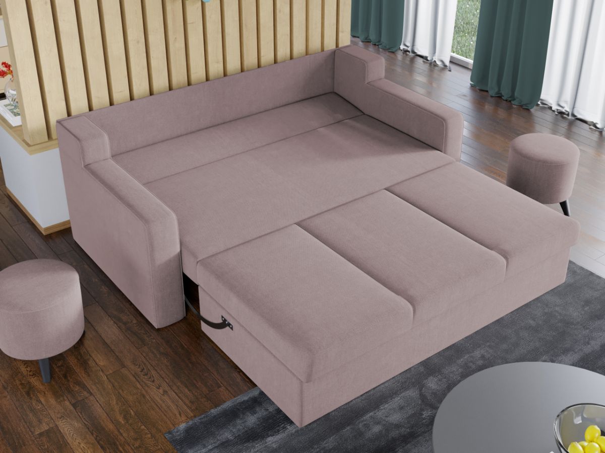 Canapea Mexic Roze Canapea Mexic Roze este compacta si foarte confortabila. Formele moderne si simple fac din aceasta o alegere potrivita pentru adeptii stilului minimalist in materie de mobilier si amenajarea casei. Cele doua perne mari detasabile si sezutul comod iti ofera relaxarea de care ai nevoie dupa o zi lunga. Lada este ideala pentru depozitarea lenjeriei, a pernelor sau a paturii si pentru a pastra la indemana toate articolele frecvent utilizate. Canapeaua are dimensiunile de: 197 cm lungime, 115 cm latime, 95 cm inaltime totala. Dupa extindere, obtineti un spatiu pentru odihna si relaxare, cu suprafata utila 200 x 160 cm. Este tapitata cu stofa de calitate pe diverse culori. Atentie: Pretul afisat nu include alte accesorii sau obiecte de decor. Pernele deco si draperiile se pot achizitiona optional. Livrare gratuita si rapida, 4-10 zile lucratoare prin flota proprie Suntem producatori de tapiterii, fara intermediari Toate piesele de tapiterii au o garantie de 2 ani Sezutul si extensia canapelei sunt din poliuretan High Resilience. Scheletul este rezistent, realizat pe structura solida de fag si pal . Extensia este de tip Doppelliege, ce prezinta un sistem actionat prin role, astfel ca partea de sezut se trage si permite partii de spatar sa gliseze spre partea din fata si sa se pozitioneze orizontal. Canapea Mexic Roze se incadreaza cu usurinta in majoritatea locuintelor indiferent de stilul acestora. Puteti alege din mai multe culori pentru stofa. Produsele disponibile le puteti vedea aici Modele Mexic . Dimensiuni Canapea Mexic Roze Lungime: 197 cm Latime: 115 cm Lungime intre brate: 160 cm Inaltime sezut: 43 cm Inaltime: 95 cm Adancime sezut: 82 cm Inaltime brate: 60 cm Lungime brate: 75 cm Grosime brate: 17 cm Dimensiuni extinsa Lungime extinsa: 160 cm Adancime extinsa: 200 cm Tapiterie Canapea Mexic Roze Tapiteria produsului este din stofa Roze . Nuanta acestui produs nu este pretentioasa, mascheaza eventualele evenimente neplacute prin care se poate murdari sau pata si se integreaza perfect in majoritatea locuintelor. Intretinere: se recomanda ca praful sa se stearga cu un material textil moale (finet) umed si sa nu se curete cu agenti chimici (diluant, acetona). Imaginile sunt cu titlu de prezentare si pot avea mici diferente de nuante in functie de display. Dimensiunile sunt exprimate în centimetri si pot oscila între ± 50 mm.