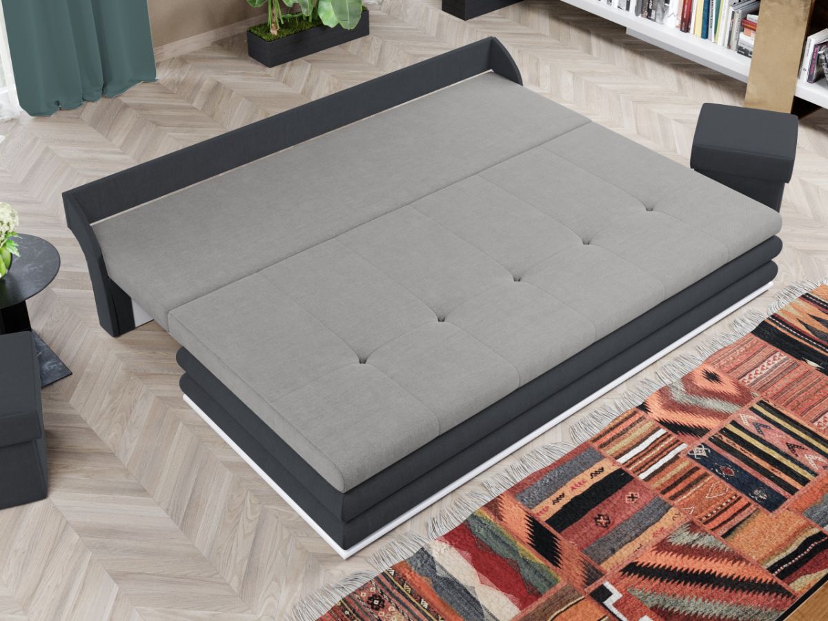 Canapea Mira Vardo 6 / Vardo 19 Canapea Mira Vardo 6 / Vardo 19 este o canapea moderna, perfecta pentru orice camera de zi. Definitoriu pentru aceasta este design-ul special, dat de formele rotunjite ale fetei sezutului, de butonii de pe acesta si de ornamentul contrastant de la baza. Cele doua perne si bratele laterale detasabile ofera confort si sustinere. Printre cele mai importante functii ale canapelei este spatiul de depozitare pe care il ofera, dar si capacitatea de a se transforma intr-un pat confortabil de 200x160cm . Are dimensiunea de: 210 cm lungime, 112 cm latime, 80 cm inaltime totala . Este tapitata cu stofa de calitate pe diverse culori. Atentie: Pretul afisat nu include alte accesorii sau obiecte de decor. Taburetele, pernele deco si draperiile se pot achizitiona optional. Livrare gratuita si rapida, 4-10 zile lucratoare prin flota proprie Suntem producatori de tapiterii, fara intermediari Toate piesele de tapiterii au o garantie de 2 ani Sezutul si extensia canapelei sunt din poliuretan HR (spuma poliuretanica High Resilience). Scheletul este rezistent, realizat pe structura solida de fag si pal. Extensia este de tip Doppelliege, ce prezinta un sistem actionat prin role, astfel ca partea de sezut se trage si permite partii de spatar sa gliseze spre partea din fata si sa se pozitioneze orizontal. Canapea Mira Vardo 6 / Vardo 19 se incadreaza cu usurinta in majoritatea locuintelor indiferent de stilul acestora. Puteti alege din mai multe culori pentru stofa. Produsele disponibile le puteti vedea aici Modele Mira . Dimensiuni Canapea Mira Vardo 6 / Vardo 19 Lungime: 210 cm Latime: 112 cm Lungime intre brate: 140 cm Inaltime sezut: 44 cm Inaltime: 80 cm Adancime sezut : 90 cm Dimensiuni extinsa Lungime extinsa: 200 cm Adancime extinsa: 160 cm Dimensiuni brate Lungime brate: 84 cm Latime brate: 33 cm Tapiterie Canapea Mira Vardo 6 / Vardo 19 Tapiteria produsului este din stofa Gri si Gri Inchis. Nuanta acestui produs nu este pretentioasa, mascheaza eventualele evenimente neplacute prin care se poate murdari sau pata si se integreaza perfect in majoritatea locuintelor. Intretinere: se recomanda ca praful sa se stearga cu un material textil moale (finet) umed si sa nu se curete cu agenti chimici (diluant, acetona). Imaginile sunt cu titlu de prezentare si pot avea mici diferente de nuante in functie de display. Dimensiunile sunt exprimate în centimetri si pot oscila între ± 50 mm.