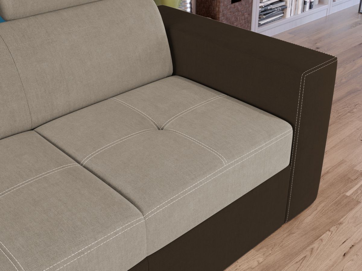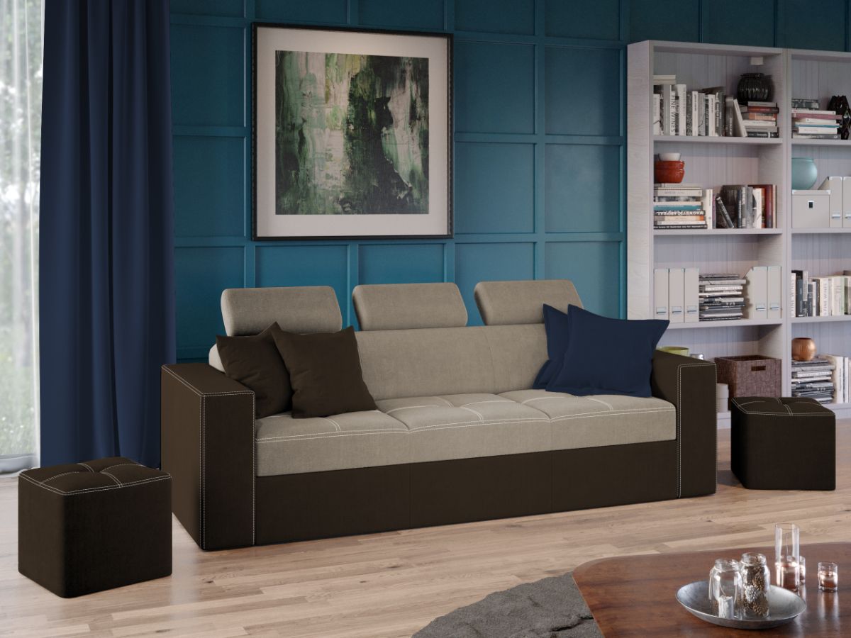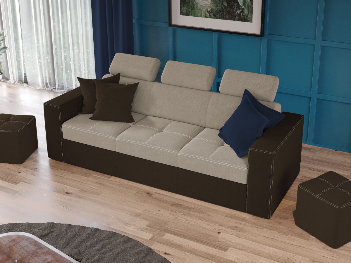 Canapea Paloma Crem / Maro Canapea Paloma Crem / Maro are un design modern, contemporan. Stilul imbina doua nuante de stofa, iar cusaturile contrastante ofera un aspect sofisticat. Tetierele, elementul surpriza al acestei canapele, pe langa aspectul aparte, au si un mecanism de reglare pe inaltime pentru un confort sporit. Se poate transforma intr-un pat confortabil in doar cateva minute. Este recomandata atat pentru incaperi mici sau mari si are dimensiunea de: 224 cm lungime, 85 cm latime, 96 cm inaltime totala . Dupa extindere, obtineti un spatiu pentru odihna si relaxare, cu suprafata utila 184 x 125 cm . Este tapitata cu stofa de calitate pe diverse culori. Atentie: Pretul afisat nu include alte accesorii sau obiecte de decor. Taburetele, pernele deco si draperiile se pot achizitiona optional. Livrare gratuita si rapida, 4-10 zile lucratoare prin flota proprie Suntem producatori de tapiterii, fara intermediari Toate piesele de tapiterii au o garantie de 2 ani Sezutul este pe relaxa (arcuri elicoidale si poliuretan) si extensia este din poliuretan. Scheletul este rezistent, realizat pe structura solida de fag si pal. Extensia de tip sertar este pozitionata sub sezutul canapelei. Se deschide ca un sertar, apoi se ridica salteaua din interiorul acestuia. Canapea Paloma Crem / Maro se incadreaza cu usurinta in majoritatea locuintelor indiferent de stilul acestora. Puteti alege din mai multe culori pentru stofa. Produsele disponibile le puteti vedea aici Modele Paloma . Dimensiuni Canapea Paloma Crem / Maro Lungime: 224 cm Latime: 85 cm Lungime intre brate: 184 cm Inaltime sezut: 42 cm Adancime sezut: 55 cm Inaltime cu tetiere: 96 cm Inaltime fara tetiere: 70 cm Dimensiuni extinsa Lungime extinsa: 184 cm Adancime extinsa: 125 cm Dimensiuni brate Inaltime brate: 60 cm Lungime brate: 85 cm Tapiterie Canapea Paloma Crem / Maro Tapiteria produsului este din stofa Crem si Maro . Nuantele acestui produs nu sunt pretentioase, mascheaza eventualele evenimente neplacute prin care se pot murdari sau pata si se integreaza perfect in majoritatea locuintelor. Intretinere: se recomanda ca praful sa se stearga cu un material textil moale (finet) umed si sa nu se curete cu agenti chimici (diluant, acetona). Imaginile sunt cu titlu de prezentare si pot avea mici diferente de nuante in functie de display. Dimensiunile sunt exprimate în centimetri si pot oscila între ± 50 mm.