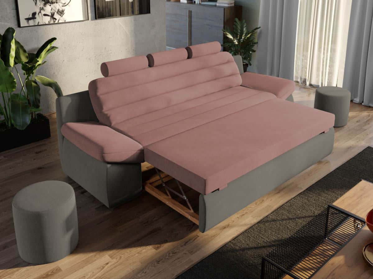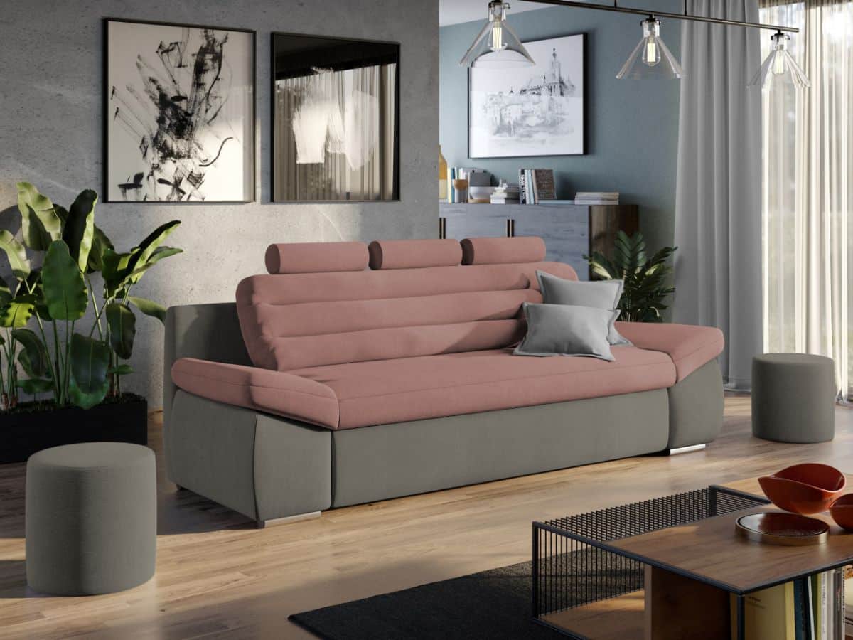 Canapea Quinn Harmony 63 / Harmony 85 Incapatoare si foarte confortabila, Canapea Quinn Harmony 63 / Harmony 85 este alegerea potrivita in materie de mobilier si de amenajarea casei, fiind usor de integrat in orice incapere. Pe langa nivelul de confort pe care il ofera datorita suportului spatarului si al celor 3 tetiere, canapeaua este caracterizata de formele sale moderne, elegante si este potrivita pentru o camera medie sau mare. Te poti relaxa si rasfata dupa o zi lunga pe sezutul sau comod, transformandu-se intr-un pat cu suprafata utila de 185 x 125 cm in doar cateva minute. Canapeaua are dimensiunea de: 260 cm lungime, 100 cm latime, 105 cm inaltime totala . Este tapitata cu stofa de calitate pe diverse culori. Atentie: Pretul afisat nu include alte accesorii sau obiecte de decor. Taburetele, pernele deco si draperiile se pot achizitiona optional. Livrare gratuita si rapida, 4-10 zile lucratoare prin flota proprie Suntem producatori de tapiterii, fara intermediari Toate piesele de tapiterii au o garantie de 2 ani Sezutul si extensia canapelei sunt din poliuretan High Resilience. Scheletul este rezistent, realizat pe structura solida de fag si pal. Extensia de tip sertar este pozitionata sub sezutul canapelei. Se deschide ca un sertar, apoi se ridica salteaua din interiorul acestuia. Canapea Quinn Harmony 63 / Harmony 85 se incadreaza cu usurinta in majoritatea locuintelor indiferent de stilul acestora. Puteti alege din mai multe culori pentru stofa. Produsele disponibile le puteti vedea aici Modele Quinn . Dimensiuni Canapea Quinn Harmony 63 / Harmony 85 Lungime: 260 cm Latime: 100 cm Lungime intre brate: 185 cm Inaltime sezut: 52 cm Adancime sezut: 60 cm Inaltime totala: 105 cm Dimensiuni extinsa Lungime extinsa: 185 cm Adancime extinsa: 125 cm Tapiterie Canapea Quinn Harmony 63 / Harmony 85 Tapiteria produsului este din stofa Harmony 63 si Harmony 85 . Nuanta acestui produs nu este pretentioasa, mascheaza eventualele evenimente neplacute prin care se poate murdari sau pata si se integreaza perfect in majoritatea locuintelor. Intretinere: se recomanda ca praful sa se stearga cu un material textil moale (finet) umed si sa nu se curete cu agenti chimici (diluant, acetona). Imaginile sunt cu titlu de prezentare si pot avea mici diferente de nuante in functie de display. Dimensiunile sunt exprimate în centimetri si pot oscila între ± 50 mm.