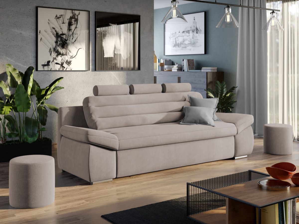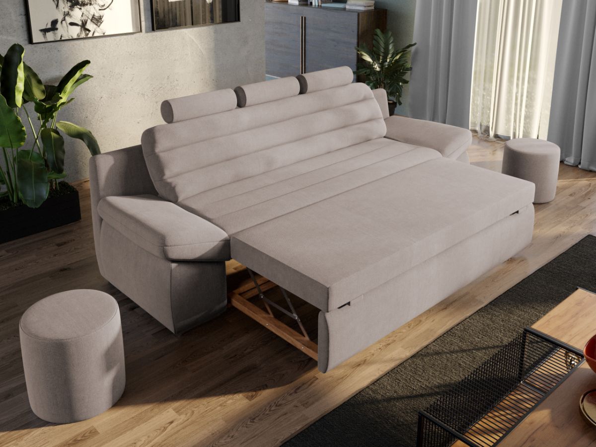 Canapea Quinn Now or Never 05 Incapatoare si foarte confortabila, Canapea Quinn Now or Never 05 este alegerea potrivita in materie de mobilier si de amenajarea casei, fiind usor de integrat in orice incapere. Pe langa nivelul de confort pe care il ofera datorita suportului spatarului si al celor 3 tetiere, canapeaua este caracterizata de formele sale moderne, elegante si este potrivita pentru o camera medie sau mare. Te poti relaxa si rasfata dupa o zi lunga pe sezutul sau comod, transformandu-se intr-un pat cu suprafata utila de 185 x 125 cm in doar cateva minute. Canapeaua are dimensiunea de: 260 cm lungime, 100 cm latime, 105 cm inaltime totala . Este tapitata cu stofa de calitate pe diverse culori. Atentie: Pretul afisat nu include alte accesorii sau obiecte de decor. Taburetele, pernele deco si draperiile se pot achizitiona optional. Livrare gratuita si rapida, 4-10 zile lucratoare prin flota proprie Suntem producatori de tapiterii, fara intermediari Toate piesele de tapiterii au o garantie de 2 ani Sezutul si extensia canapelei sunt din poliuretan High Resilience. Scheletul este rezistent, realizat pe structura solida de fag si pal. Extensia de tip sertar este pozitionata sub sezutul canapelei. Se deschide ca un sertar, apoi se ridica salteaua din interiorul acestuia. Canapea Quinn Now or Never 05 se incadreaza cu usurinta in majoritatea locuintelor indiferent de stilul acestora. Puteti alege din mai multe culori pentru stofa. Produsele disponibile le puteti vedea aici Modele Quinn . Videoclipul contine alta nuanta decat cea de pe pagina produsului, acesta avand ca scop prezentarea familiei pentru a se reda in detaliu aspectul produsului. Dimensiuni Canapea Quinn Now or Never 05 Lungime: 260 cm Latime: 100 cm Lungime intre brate: 185 cm Inaltime sezut: 52 cm Adancime sezut: 60 cm Inaltime totala: 105 cm Dimensiuni extinsa Lungime extinsa: 185 cm Adancime extinsa: 125 cm Tapiterie Canapea Quinn Now or Never 05 Tapiteria produsului este din stofa cappuccino – Now or Never 05 . Nuanta acestui produs nu este pretentioasa, mascheaza eventualele evenimente neplacute prin care se poate murdari sau pata si se integreaza perfect in majoritatea locuintelor. Intretinere: se recomanda ca praful sa se stearga cu un material textil moale (finet) umed si sa nu se curete cu agenti chimici (diluant, acetona). Imaginile sunt cu titlu de prezentare si pot avea mici diferente de nuante in functie de display. Dimensiunile sunt exprimate în centimetri și pot oscila între ± 50 mm.