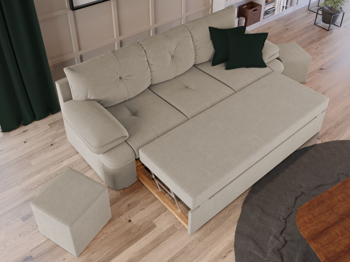 Canapea Roma Crem Oferind un spatiu compact si confortabil pentru relaxare, Canapea Roma Crem se potriveste perfect cu numeroasele idei de amenajare a interiorului casei tale. Calitatea si un design modern sunt principalele caracteristici ale canapelei, creand o atmosfera primitoare si relaxanta. Pe langa nivelul de confort pe care il ofera, aceasta canapea este alegerea potrivita pentru incaperi mici sau mari. Se poate transforma intr-un pat in doar cateva minute. Canapeaua are dimensiunea de: 235 cm lungime, 100 cm latime, 90 cm inaltime totala . Dupa extindere, obtineti un spatiu pentru odihna si relaxare, cu suprafata utila 175 x 130 cm . Este tapitata cu stofa de calitate pe diverse culori. Pernele nu sunt detasabile. Atentie: Pretul afisat nu include alte accesorii sau obiecte de decor. Taburetele, pernele deco si draperiile se pot achizitiona optional. Livrare gratuita si rapida, 4-10 zile lucratoare prin flota proprie Suntem producatori de tapiterii, fara intermediari Toate piesele de tapiterii au o garantie de 2 ani Sezutul si extensia canapelei sunt din poliuretan High Resilience. Scheletul este rezistent, realizat pe structura solida de fag si pal. Extensia de tip sertar este pozitionata sub sezutul canapelei. Se deschide ca un sertar, apoi se ridica salteaua din interiorul acestuia. Canapea Roma Crem se incadreaza cu usurinta in majoritatea locuintelor indiferent de stilul acestora. Puteti alege din mai multe culori pentru stofa. Produsele disponibile le puteti vedea aici Modele Roma . Dimensiuni Canapea Roma Crem Lungime: 235 cm Latime: 100 cm Lungime intre brate: 175 cm Inaltime sezut: 29 cm Adancime sezut: 60 cm Inaltime totala: 90 cm Dimensiuni extinsa Lungime extinsa: 175 cm Adancime extinsa: 130 cm Tapiterie Canapea Roma Crem Tapiteria produsului este din stofa Crem . Nuanta acestui produs nu este pretentioasa, mascheaza eventualele evenimente neplacute prin care se poate murdari sau pata si se integreaza perfect in majoritatea locuintelor. Intretinere: se recomanda ca praful sa se stearga cu un material textil moale (finet) umed si sa nu se curete cu agenti chimici (diluant, acetona). Imaginile sunt cu titlu de prezentare si pot avea mici diferente de nuante in functie de display. Dimensiunile sunt exprimate în centimetri si pot oscila între ± 50 mm.