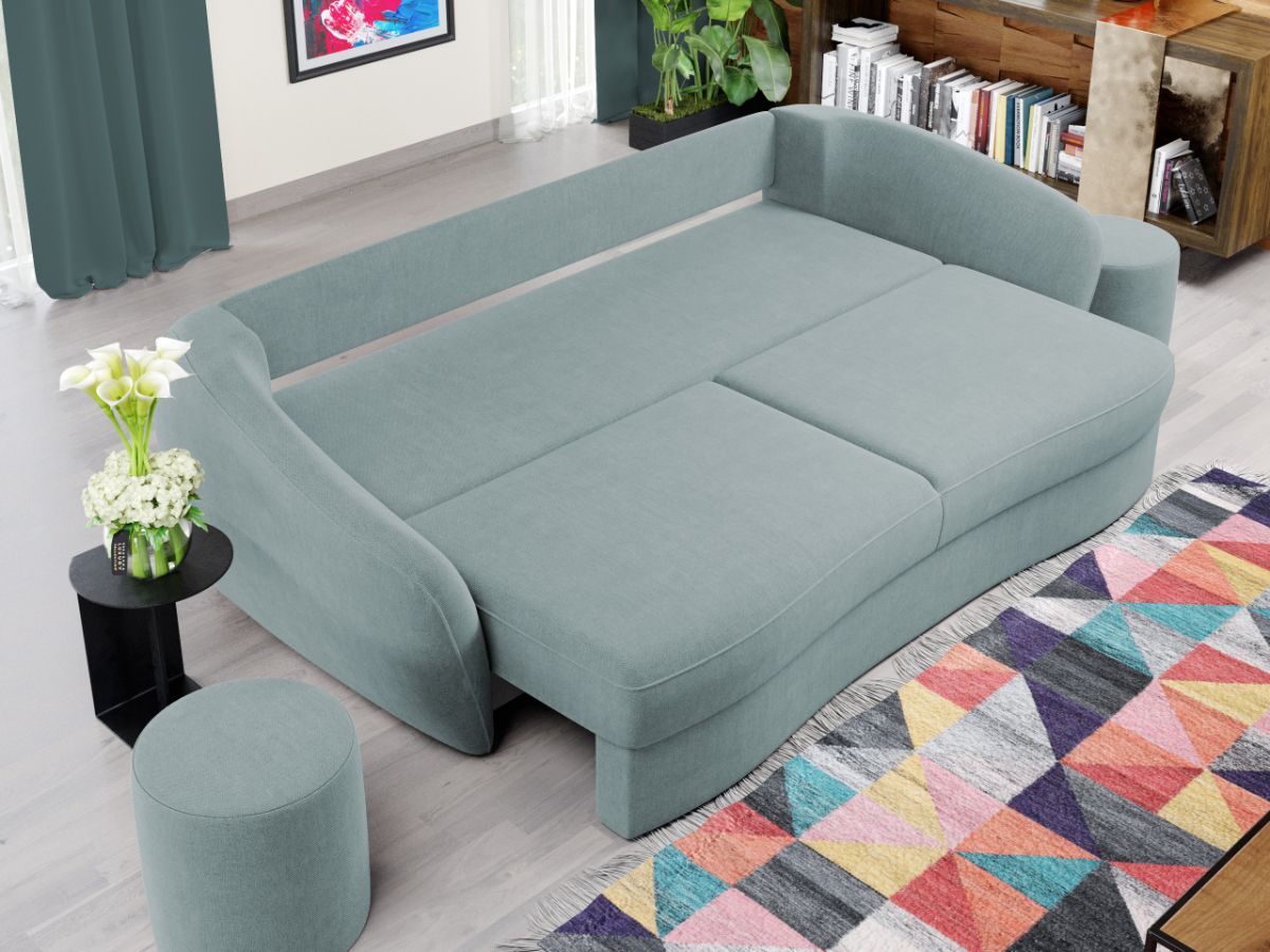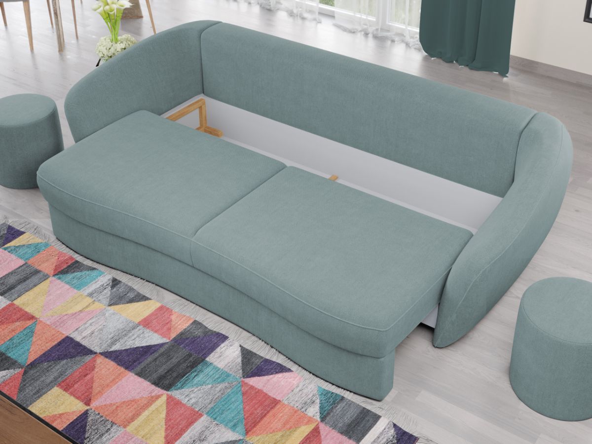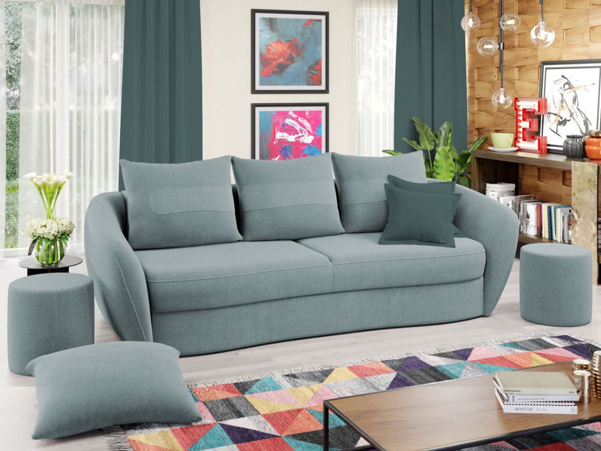 Canapea Velur Barrel 72 Canapea Velur Barrel 72 este caracterizata de un design elegant si modern. Liniile curbate ale sezutului, bratelor si ale celor 3 perne detasabile sunt elementele definitorii ale acesteia. Este alegerea potrivita pentru camera de zi, realizand aspectul armonios pe care il doresti in casa ta. Pe langa rolul estetic ce creeaza un ambient prietenos si primitor, canapeaua detine si un rol de sustinere pentru un confort sporit. Aceasta este o alegere practica pentru casa ta, transformandu-se usor intr-un pat spatios de 190×150 cm , fiind prevazuta cu lada pentru depozitare . Are dimensiunea de: 245 cm lungime, 120 cm latime, 90 cm inaltime totala . Este tapitata cu stofa de calitate pe diverse culori. Atentie: Pretul afisat nu include alte accesorii sau obiecte de decor. Taburetele, pernele deco si draperiile se pot achizitiona optional. Livrare gratuita si rapida, 4-10 zile lucratoare prin flota proprie Suntem producatori de tapiterii, fara intermediari Toate piesele de tapiterii au o garantie de 2 ani Sezutul si extensia canapelei sunt pe relaxa (arcuri elicoidale și poliuretan) . Scheletul este rezistent, realizat pe structura solida de fag si pal. Extensia este de tip Doppelliege, ce prezinta un sistem actionat prin role, astfel ca partea de sezut se trage si permite partii de spatar sa gliseze spre partea din fata si sa se pozitioneze orizontal. Canapea Velur Barrel 72 se incadreaza cu usurinta in majoritatea locuintelor indiferent de stilul acestora. Puteti alege din mai multe culori pentru stofa. Produsele disponibile le puteti vedea aici Modele Velur . Dimensiuni Canapea Velur Barrel 72 Lungime: 245 cm Latime: 120 cm Lungime intre brate: 190 cm Inaltime sezut: 43 cm Inaltime: 90 cm Adancime sezut fara perne: 85 cm Adancime sezut cu perne: 80 cm Dimensiuni extinsa Lungime extinsa: 190 cm Adancime extinsa: 150 cm Dimensiuni brate Lungime brate: 100 cm Inaltime brate: 75 cm Grosime brate: 20 cm Tapiterie Canapea Velur Barrel 72 Tapiteria produsului este din stofa Turcoaz – Barrel 72. Nuanta acestui produs nu este pretentioasa, mascheaza eventualele evenimente neplacute prin care se poate murdari sau pata si se integreaza perfect in majoritatea locuintelor. Intretinere: se recomanda ca praful sa se stearga cu un material textil moale (finet) umed si sa nu se curete cu agenti chimici (diluant, acetona). Imaginile sunt cu titlu de prezentare si pot avea mici diferente de nuante in functie de display. Dimensiunile sunt exprimate în centimetri și pot oscila între ± 50 mm.