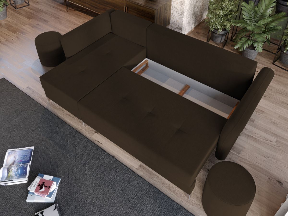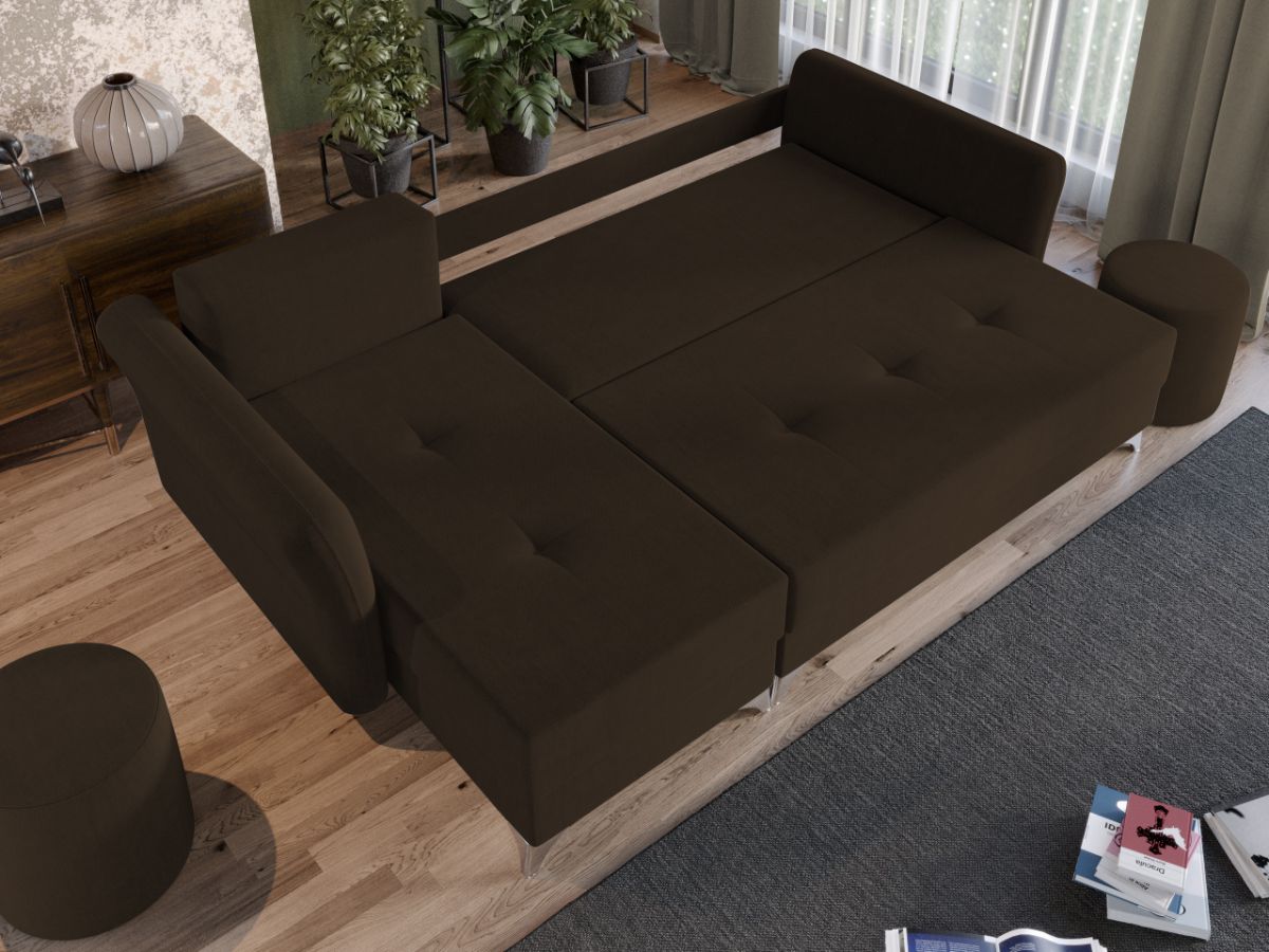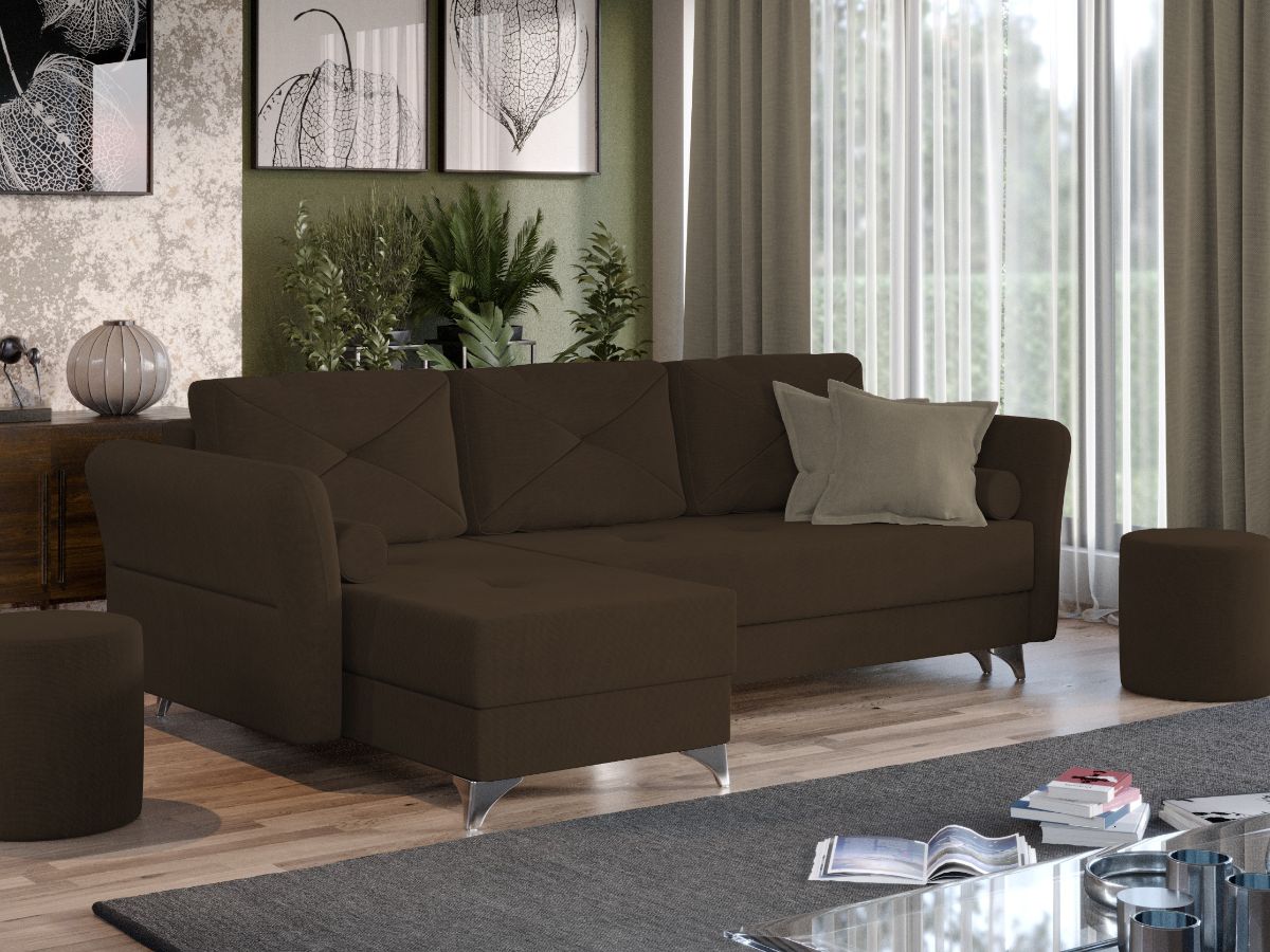 Coltar Bali Maro Coltar Bali Maro are un design modern, contemporan, cu un aspect aparte dat de pernele tip rulou si bratele rotunjite. Picioarele argintii lucioase completeaza eleganta acestui coltar. Pe langa aspect, ofera confort prin cele 5 perne detasabile cat si prin faptul ca se poate transforma rapid intr-un pat ce are lada de depozitare dedesubt. Bratele, sezutul si pernele de la spatar au cusaturi ce dau un design armonios in orice camera. Este recomandat atat pentru incaperi mici sau mari si are dimensiunea de: 260 cm lungime, 150 cm latime, 90 cm inaltime totala . Dupa extindere, obtineti un spatiu pentru odihna si relaxare, cu suprafata utila 220 x 130 cm . Este tapitat cu o stofa de calitate uni pe diverse culori. Atentie: Pretul afisat nu include alte accesorii sau obiecte de decor. Taburetele, pernele deco si draperiile se pot achizitiona optional. Livrare gratuita si rapida, 4-10 zile lucratoare prin flota proprie Suntem producatori de tapiterii, fara intermediari Toate piesele de tapiterii au o garantie de 2 ani Sezutul si extensia coltarului sunt pe relaxa (arcuri elicoidale si poliuretan) . Lada incorporata este ideala pentru depozitarea lenjeriei sau a altor obiecte. Scheletul este rezistent, realizat pe structura solida de fag si pal. Extensia este de tip Doppelliege ce prezinta un sistem actionat prin role, astfel ca partea de sezut se trage si permite partii de spatar sa gliseze spre partea din fata si sa se pozitioneze orizontal. Coltar Bali Maro se incadreaza cu usurinta in majoritatea locuintelor indiferent de stilul acestora. Puteti alege din mai multe culori pentru stofa. Produsele disponibile le puteti vedea aici Modele Bali . Dimensiuni Coltar Bali Maro Lungime: 260 cm Latime: 150 cm Lungime intre brate: 220 cm Inaltime sezut: 45 cm Adancime sezut: 80 cm (fara perne) Adancime sezut: 55 cm (pana in perne) Inaltime cu perne: 90 cm Inaltime fara perne: 75 cm Dimensiuni extins Lungime extins: 220 cm Adancime extins: 130 cm Dimensiuni brate Inaltime brate: 70 cm Lungime brate: 100 cm Tapiterie Coltar Bali Maro Tapiteria produsului este din stofa Maro . Nuanta acestui produs nu este pretentioasa, mascheaza eventualele evenimente neplacute prin care se poate murdari sau pata si se integreaza perfect in majoritatea locuintelor. Intretinere: se recomanda ca praful sa se stearga cu un material textil moale (finet) umed si sa nu se curete cu agenti chimici (diluant, acetona). Imaginile sunt cu titlu de prezentare si pot avea mici diferente de nuante in functie de display. Dimensiunile sunt exprimate în centimetri si pot oscila între ± 50 mm.