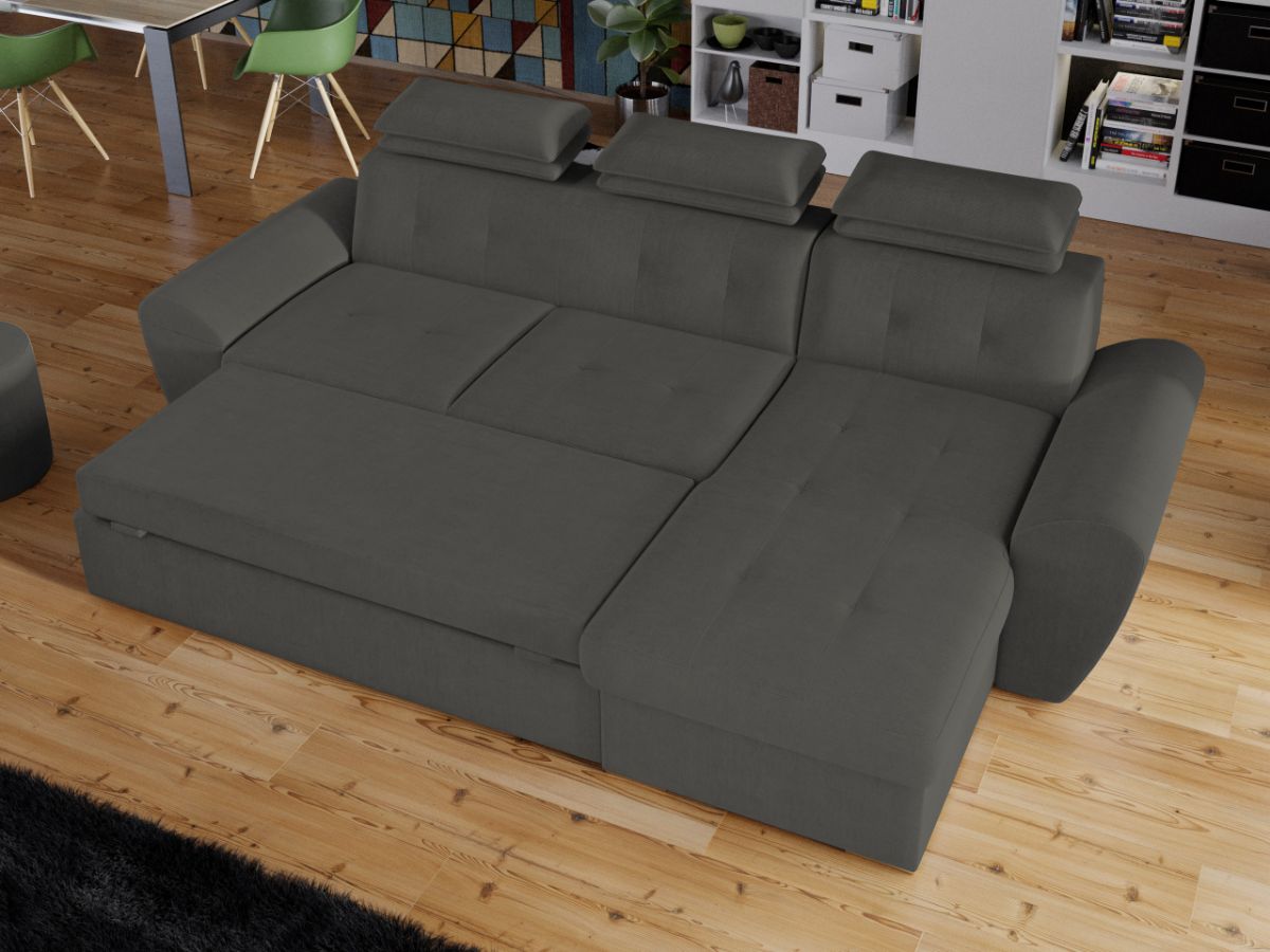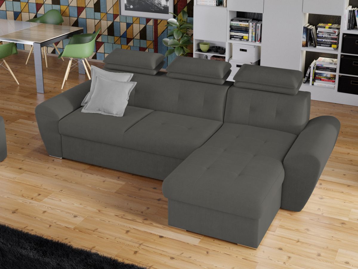 Coltar Barini Castel 93 Coltar Barini Castel 93 este un coltar cu design modern, cu forme rotunjite. Tetierele reglabile in mai multe trepte asigura confortul necesar in momentele de relaxare, sustinand capul exact in pozitia dorita. Picioarele argintii si butonii de pe sezut si de pe spatar confera eleganta acestui coltar. Se poate transforma intr-un pat in doar cateva minute si este prevazut cu lada pentru depozitare pozitionata sub sezlong, care poate fi accesata prin ridicarea partii superioare a acestuia. Coltarul are dimensiunea de: 280 cm lungime, 180 cm latime, 105 cm inaltime totala . Dupa extindere, obtineti un spatiu pentru odihna si relaxare, cu suprafata utila 228 x 130 cm . Este tapitat cu stofa de calitate pe diverse culori. Atentie: Pretul afisat nu include alte accesorii sau obiecte de decor. Taburetele, pernele deco si draperiile se pot achizitiona optional. Livrare gratuita si rapida, 4-10 zile lucratoare prin flota proprie Suntem producatori de tapiterii, fara intermediari Toate piesele de tapiterii au o garantie de 2 ani Sezutul si extensia coltarului sunt din poliuretan High Resilience . Scheletul este rezistent, realizat pe structura solida de fag si pal. Extensia de tip sertar este pozitionata sub sezutul coltarului. Se deschide ca un sertar, apoi se ridica salteaua din interiorul acestuia. Coltar Barini Castel 93 se incadreaza cu usurinta in majoritatea locuintelor indiferent de stilul acestora. Puteti alege din mai multe culori pentru stofa. Produsele disponibile le puteti vedea aici Modele Barini . Dimensiuni Coltar Barini Lungime: 280 cm Latime: 180 cm Lungime intre brate: 228 cm Inaltime sezut: 45 cm Inaltime : 105 cm Adancime sezut: 65 cm Adancime selon 135 cm Latime sezlon 90 cm Dimensiuni extinsa Lungime extinsa: 228 cm Adancime extinsa: 130 cm Tapiterie Coltar Barini Castel 93 Tapiteria produsului este din stofa Castel 93. Nuanta acestui produs nu este pretentioasa, mascheaza eventualele evenimente neplacute prin care se poate murdari sau pata si se integreaza perfect in majoritatea locuintelor. Intretinere: se recomanda ca praful sa se stearga cu un material textil moale (finet) umed si sa nu se curete cu agenti chimici (diluant, acetona). Imaginile sunt cu titlu de prezentare si pot avea mici diferente de nuante in functie de display. Dimensiunile sunt exprimate în centimetri si pot oscila între ± 50 mm.