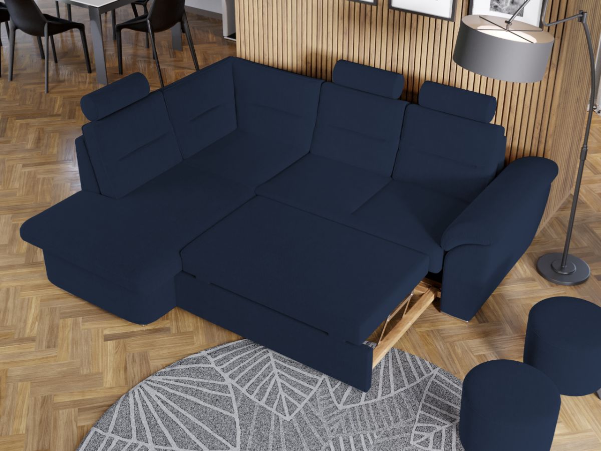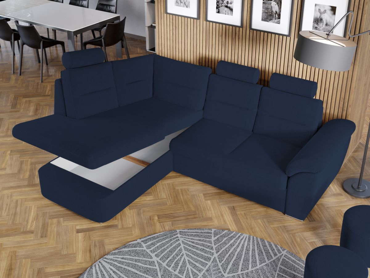 Coltar Biano Albastru Coltar Biano Albastru are un design modern , contemporan si un aspect impunator, caracterizat de forme rotunjite si simple. Imbina cu succes functionalitatea cu designul, transformandu-se rapid intr-un pat confortabil de 182 x 127 cm . Este prevazut cu lada pentru depozitare pozitionata sub sezlong, care poate fi accesata prin ridicarea partii superioare a acestuia. Poti avea parte de relaxare completa si un confort sporit, gratie tetierelor reglabile , spatarului si bratului care ofera sustinere corpului tau exact in pozitia dorita. Este potrivit pentru un living cu dimensiuni generoase, avand dimensiunea de: 245 cm lungime, 184 cm latime, 106 cm inaltime totala . Este tapitat cu stofa de calitate pe diverse culori. Atentie: Pretul afisat nu include alte accesorii sau obiecte de decor. Taburetele, pernele deco si draperiile se pot achizitiona optional. Livrare gratuita si rapida, 4-10 zile lucratoare prin flota proprie Suntem producatori de tapiterii, fara intermediari Toate piesele de tapiterii au o garantie de 2 ani Sezutul si extensia coltarului sunt din poliuretan High Resilience . Scheletul este rezistent, realizat pe structura solida de fag si pal. Extensia de tip sertar este pozitionata sub sezutul coltarului. Se deschide ca un sertar, apoi se ridica salteaua din interiorul acestuia. Coltar Biano Albastru se incadreaza cu usurinta in majoritatea locuintelor indiferent de stilul acestora. Puteti alege din mai multe culori pentru stofa. Produsele disponibile le puteti vedea aici Modele Biano . Dimensiuni Coltar Biano Lungime: 245 cm Latime: 184 cm Lungime intre brate: 182 cm Inaltime sezut: 43 cm Inaltime : 106 cm Adancime sezut: 60 cm Adancime selon 152 cm Latime sezlon 98 cm Dimensiuni extinsa Lungime extinsa: 182 cm Adancime extinsa: 127 cm Tapiterie Coltar Biano Albastru Tapiteria produsului este din stofa Albastra. Nuanta acestui produs nu este pretentioasa, mascheaza eventualele evenimente neplacute prin care se poate murdari sau pata si se integreaza perfect in majoritatea locuintelor. Intretinere: se recomanda ca praful sa se stearga cu un material textil moale (finet) umed si sa nu se curete cu agenti chimici (diluant, acetona). Imaginile sunt cu titlu de prezentare si pot avea mici diferente de nuante in functie de display. Dimensiunile sunt exprimate în centimetri si pot oscila între ± 50 mm.