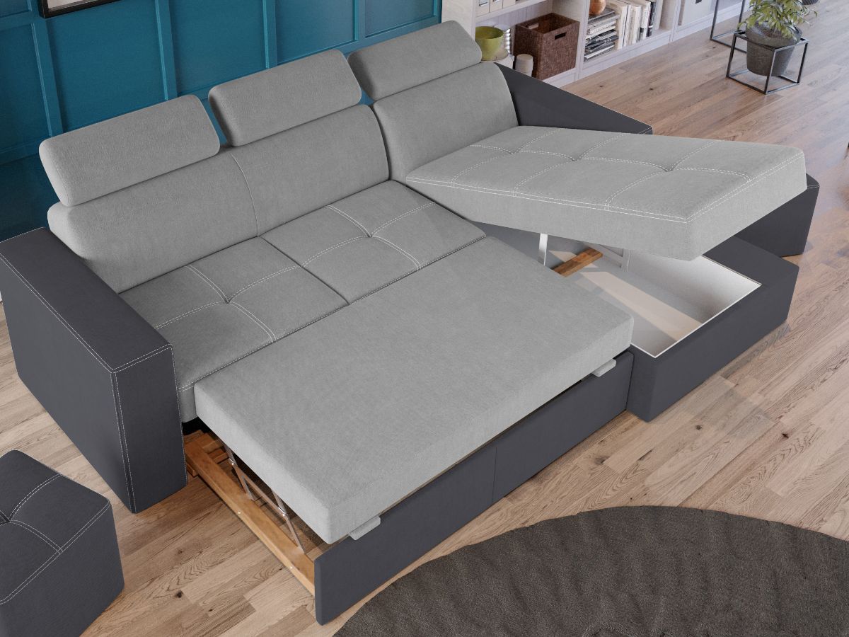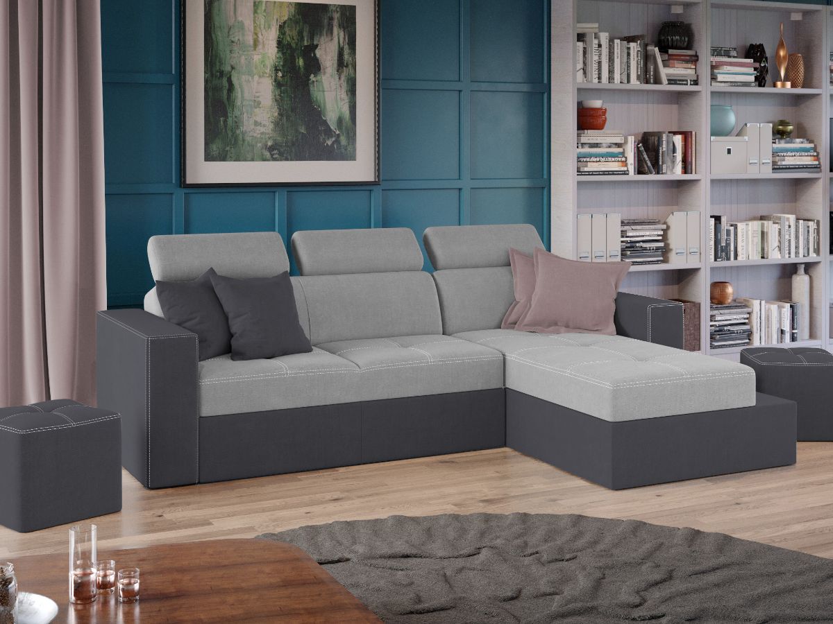 Coltar Paloma Gri Deschis / Gri Coltar Paloma Gri Deschis / Gri are un design modern, contemporan. Stilul imbina doua nuante de stofa, iar cusaturile contrastante ofera un aspect sofisticat. Tetierele, elementul surpriza al acestui coltar, pe langa aspectul aparte, au si un mecanism de reglare pe inaltime pentru un confort sporit. Se poate transforma intr-un pat confortabil in doar cateva minute si este prevazut cu lada pentru depozitare. Este recomandat atat pentru incaperi mici sau mari si are dimensiunea de: 245 cm lungime, 164 cm latime, 96 cm inaltime totala . Dupa extindere, obtineti un spatiu pentru odihna si relaxare, cu suprafata utila 203 x 125 cm . Este tapitat cu stofa de calitate pe diverse culori. Atentie: Pretul afisat nu include alte accesorii sau obiecte de decor. Taburetele, pernele deco si draperiile se pot achizitiona optional. Livrare gratuita si rapida, 4-10 zile lucratoare prin flota proprie Suntem producatori de tapiterii, fara intermediari Toate piesele de tapiterii au o garantie de 2 ani Sezutul este pe relaxa (arcuri elicoidale si poliuretan) si extensia este din poliuretan. Scheletul este rezistent, realizat pe structura solida de fag si pal. Extensia de tip sertar este pozitionata sub sezutul coltarului. Se deschide ca un sertar, apoi se ridica salteaua din interiorul acestuia. Coltar Paloma Gri Deschis / Gri se incadreaza cu usurinta in majoritatea locuintelor indiferent de stilul acestora. Puteti alege din mai multe culori pentru stofa. Produsele disponibile le puteti vedea aici Modele Paloma . Dimensiuni Coltar Paloma Gri Deschis / Gri Lungime: 245 cm Latime: 164 cm Lungime intre brate: 203 cm Inaltime sezut: 44 cm Adancime sezut: 56 cm Inaltime cu tetiere: 96 cm Inaltime fara tetiere: 70 cm Dimensiuni extinsa Lungime extinsa: 203 cm Adancime extinsa: 125 cm Dimensiuni brate Inaltime brate: 60 cm Lungime brate: 92 cm Tapiterie Coltar Paloma Gri Deschis / Gri Tapiteria produsului este din stofa Gri Deschis si Gri. Nuantele acestui produs nu sunt pretentioase, mascheaza eventualele evenimente neplacute prin care se pot murdari sau pata si se integreaza perfect in majoritatea locuintelor. Intretinere: se recomanda ca praful sa se stearga cu un material textil moale (finet) umed si sa nu se curete cu agenti chimici (diluant, acetona). Imaginile sunt cu titlu de prezentare si pot avea mici diferente de nuante in functie de display. Dimensiunile sunt exprimate în centimetri si pot oscila între ± 50 mm.