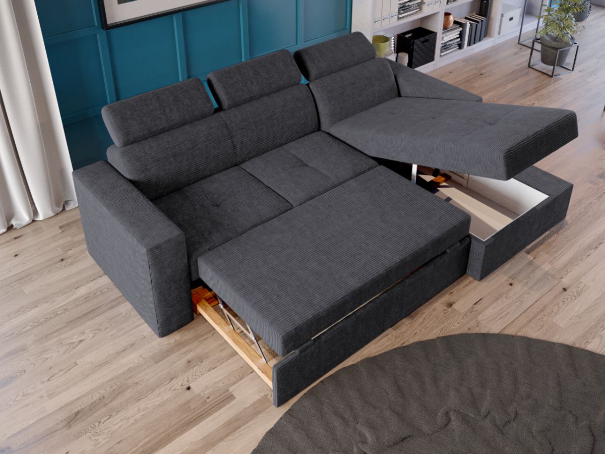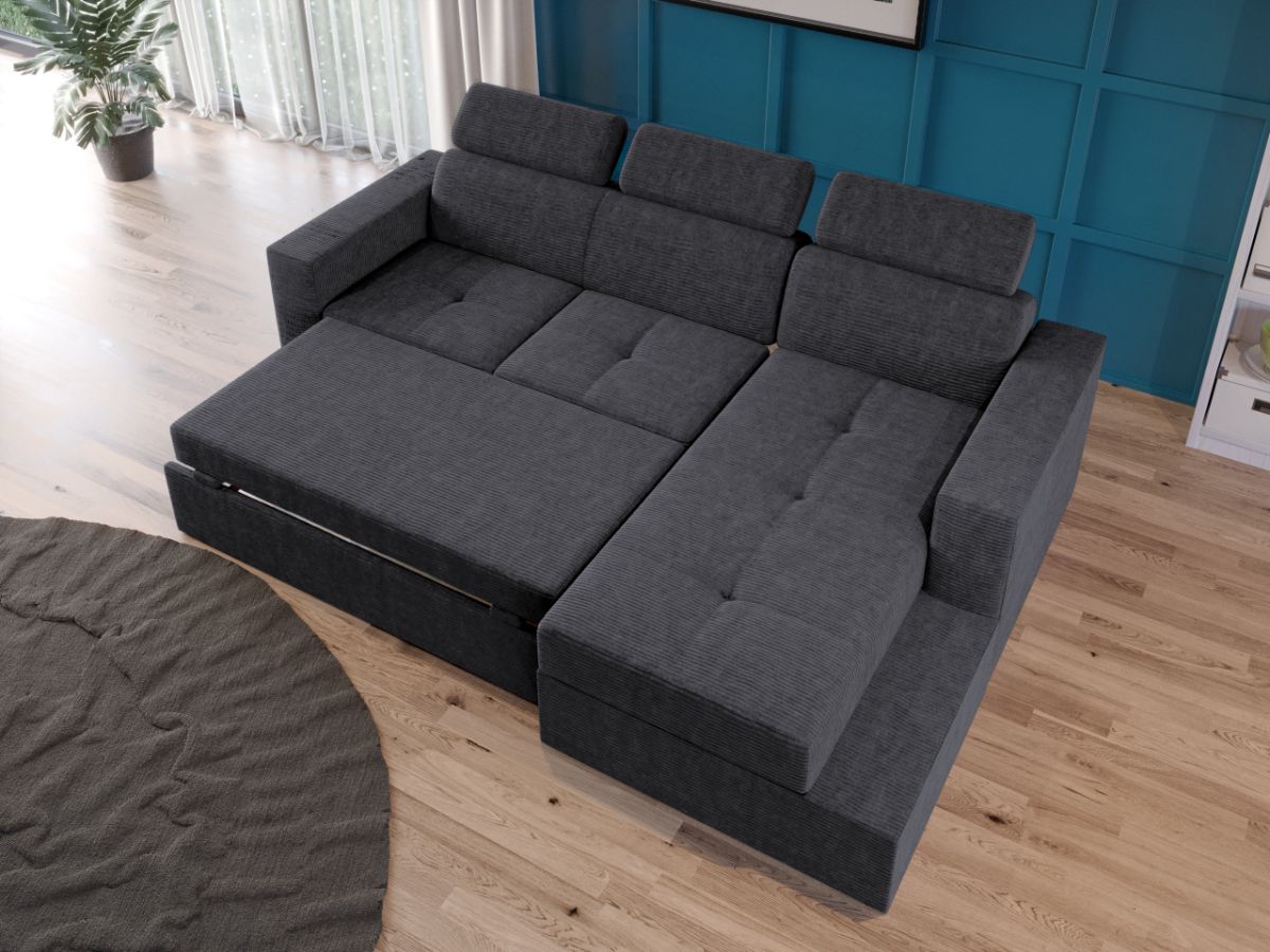 Coltar Paloma reiat Zoom New 22 Coltar Paloma reiat Zoom New 22 are un design modern, contemporan. Acesta este usor de integrat in orice decor, datorita liniilor moderne ale acestuia, iar cusaturile contrastante ofera un aspect sofisticat. Tetierele, elementul surpriza al acestui coltar, pe langa aspectul aparte, au si un mecanism de reglare pe inaltime pentru un confort sporit. Se poate transforma intr-un pat confortabil in doar cateva minute si este prevazut cu lada pentru depozitare. Este recomandat atat pentru incaperi mici sau mari si are dimensiunea de: 245 cm lungime, 164 cm latime, 96 cm inaltime totala . Dupa extindere, obtineti un spatiu pentru odihna si relaxare, cu suprafata utila 203 x 125 cm . Este tapitat cu stofa de calitate pe diverse culori. Atentie: Pretul afisat nu include alte accesorii sau obiecte de decor. Taburetele, pernele deco si draperiile se pot achizitiona optional. Livrare gratuita si rapida, 4-10 zile lucratoare prin flota proprie Suntem producatori de tapiterii, fara intermediari Toate piesele de tapiterii au o garantie de 2 ani Sezutul este pe relaxa (arcuri elicoidale și poliuretan) si extensia este din poliuretan. Scheletul este rezistent, realizat pe structura solida de fag si pal. Extensia de tip sertar este pozitionata sub sezutul coltarului. Se deschide ca un sertar, apoi se ridica salteaua din interiorul acestuia. Coltar Paloma reiat Zoom New 22 se incadreaza cu usurinta in majoritatea locuintelor indiferent de stilul acestora. Puteti alege din mai multe culori pentru stofa. Produsele disponibile le puteti vedea aici Modele Paloma . Videoclipul poate contine alta nuanta decat cea de pe pagina produsului, acesta avand ca scop prezentarea familiei pentru a se reda in detaliu aspectul materialului. Dimensiuni Coltar Paloma reiat Zoom New 22 Lungime: 245 cm Latime: 164 cm Lungime intre brate: 203 cm Inaltime sezut: 44 cm Adancime sezut: 56 cm Inaltime cu tetiere: 96 cm Inaltime fara tetiere: 70 cm Dimensiuni extinsa Lungime extinsa: 203 cm Adancime extinsa: 125 cm Dimensiuni brate Inaltime brate: 60 cm Lungime brate: 92 cm Tapiterie Coltar Paloma reiat Zoom New 22 Tapiteria produsului este din stofa reiat gri inchis – Zoom New 22. Nuanta acestui produs nu este pretentioasa, mascheaza eventualele evenimente neplacute prin care se poate murdari sau pata si se integreaza perfect in majoritatea locuintelor. Intretinere: se recomanda ca praful sa se stearga cu un material textil moale (finet) umed si sa nu se curete cu agenti chimici (diluant, acetona). Imaginile sunt cu titlu de prezentare si pot avea mici diferente de nuante in functie de display. Dimensiunile sunt exprimate în centimetri și pot oscila între ± 50 mm.