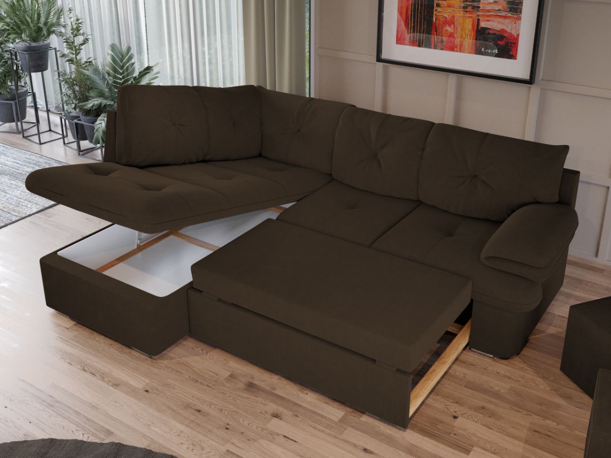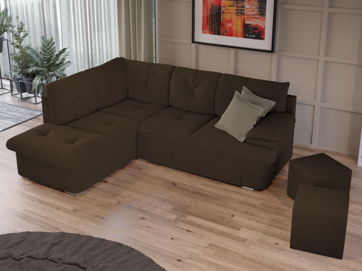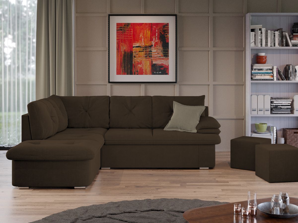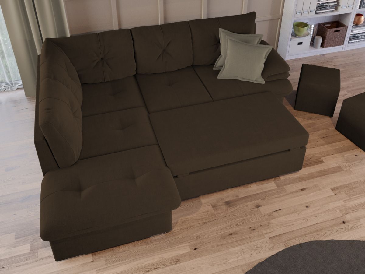 Coltar Roma Maro Coltar Roma Maro are un design modern si dimensiuni generoase. Pe langa nivelul de confort si relaxare pe care il ofera, acest coltar este alegerea potrivita pentru un living spatios. Se poate transforma intr-un pat in doar cateva minute si este prevazut cu lada pentru depozitare pozitionata sub sezlong, care poate fi accesata prin ridicarea partii superioare a acestuia. Coltarul are dimensiunea de: 245 cm lungime, 185 cm latime, 85 cm inaltime totala . Dupa extindere, obtineti un spatiu pentru odihna si relaxare, cu suprafata utila 180 x 130 cm . Este tapitat cu stofa de calitate pe diverse culori. Pernele nu sunt detasabile. Atentie: Pretul afisat nu include alte accesorii sau obiecte de decor. Taburetele, pernele deco si draperiile se pot achizitiona optional. Livrare gratuita si rapida, 4-10 zile lucratoare prin flota proprie Suntem producatori de tapiterii, fara intermediari Toate piesele de tapiterii au o garantie de 2 ani Sezutul si extensia coltarului sunt din poliuretan High Resilience . Scheletul este rezistent, realizat pe structura solida de fag si pal. Extensia de tip sertar este pozitionata sub sezutul coltarului. Se deschide ca un sertar, apoi se ridica salteaua din interiorul acestuia. Coltar Roma Maro se incadreaza cu usurinta in majoritatea locuintelor indiferent de stilul acestora. Puteti alege din mai multe culori pentru stofa. Produsele disponibile le puteti vedea aici Modele Roma . Dimensiuni Coltar Roma Lungime: 245 cm Latime: 185 cm Lungime intre brate: 180 cm Inaltime sezut: 43 cm Inaltime : 85 cm Adancime sezut: 60 cm Adancime selon 150 cm Latime sezlon 100 cm Dimensiuni extinsa Lungime extinsa: 180 cm Adancime extinsa: 130 cm Tapiterie Coltar Roma Maro Tapiteria produsului este din stofa Maro. Nuanta acestui produs nu este pretentioasa, mascheaza eventualele evenimente neplacute prin care se poate murdari sau pata si se integreaza perfect in majoritatea locuintelor. Intretinere: se recomanda ca praful sa se stearga cu un material textil moale (finet) umed si sa nu se curete cu agenti chimici (diluant, acetona). Imaginile sunt cu titlu de prezentare si pot avea mici diferente de nuante in functie de display. Dimensiunile sunt exprimate în centimetri si pot oscila între ± 50 mm.