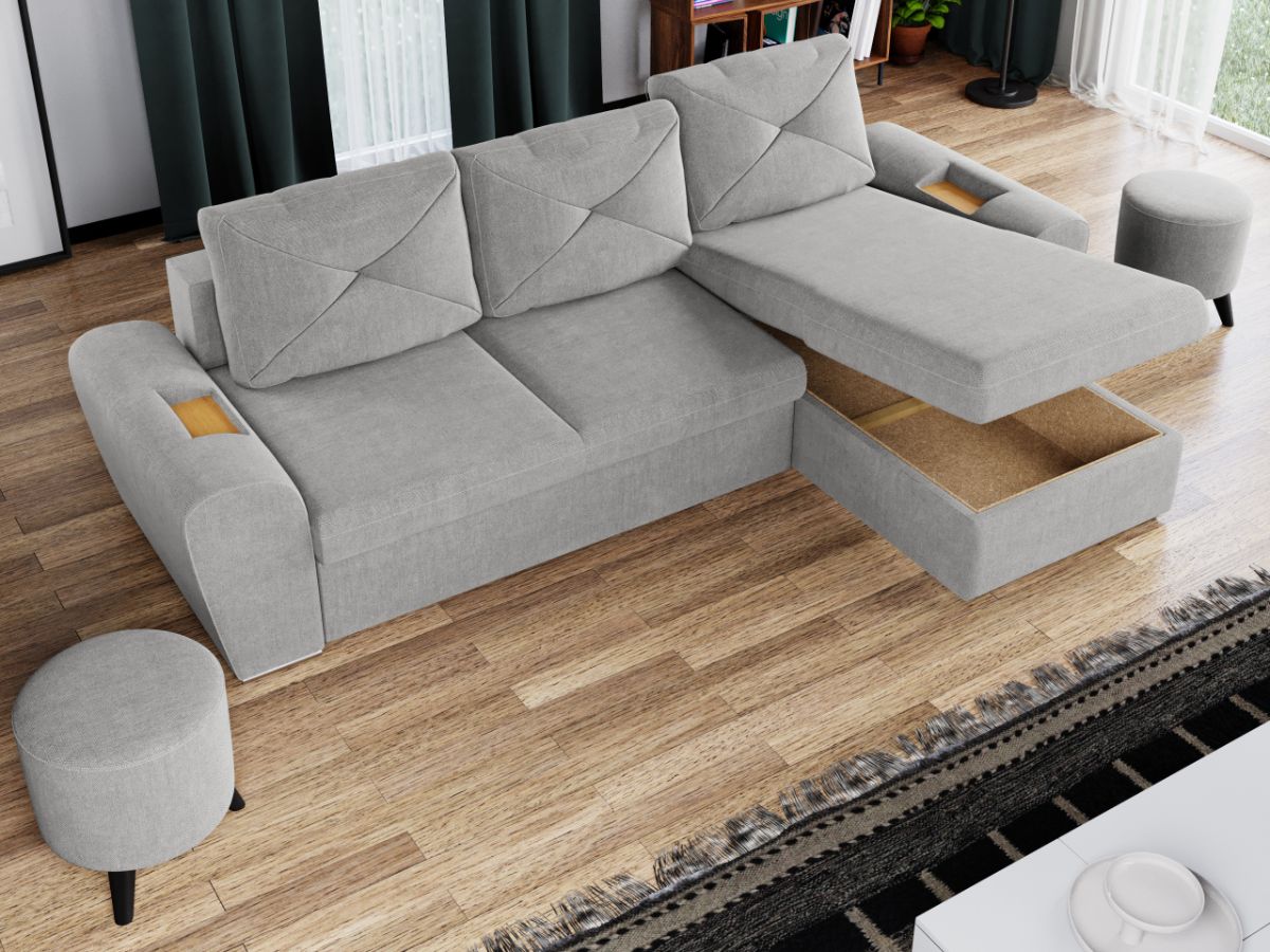 Coltar Gloria Vardo 6 Coltar Gloria Vardo 6 este un coltar modern, fiind ideal pentru cei ce isi doresc confort, dar si functionalitate. Coltarul este practic prin suportul de 25 x 15 cm integrat in fiecare brat care te va ajuta sa tii la indemana accesoriile de care ai nevoie cum ar fi telecomanda, pahare etc. Cele trei perne nu sunt detasabile, fac parte din spatar. Acesta se transforma rapid intr-un pat confortabil de 225 x 130 cm si are dimensiunile de: 287 cm lungime, 165 cm latime, 92 cm inaltime totala si este prevazut cu lada de depozitare . Este tapitat cu o stofa de calitate uni pe diverse culori. Atentie: Pretul afisat nu include alte accesorii sau obiecte de decor. Draperiile si pernele deco se pot achizitiona optional. Livrare gratuita si rapida, 4-10 zile lucratoare prin flota proprie Suntem producatori de tapiterii, fara intermediari Toate piesele de tapiterii au o garantie de 2 ani Sezutul si extensia coltarului sunt pe relaxa (arcuri elicoidale și poliuretan) . Scheletul este rezistent, realizat pe structura solida de fag si pal. Extensia de tip sertar este pozitionata sub sezutul coltarului. Se deschide ca un sertar, apoi se ridica salteaua din interiorul acestuia. Coltar Gloria Vardo 6 se incadreaza cu usurinta in majoritatea locuintelor indiferent de stilul acestora. Puteti alege din mai multe culori pentru stofa. Produsele disponibile le puteti vedea aici Modele Gloria . Videoclipul contine alta nuanta decat cea de pe pagina produsului, acesta avand ca scop prezentarea familiei pentru a se reda in detaliu aspectul materialului. Dimensiuni Coltar Gloria Lungime: 287 cm Latime: 165 cm Lungime intre brate: 225 cm Inaltime sezut: 46 cm Inaltime: 92 cm Inaltime brate: 62 cm Adancime sezut: 57 cm Adancime selon 130 cm Latime sezlon 85 cm Inaltime picioare: 4 cm Dimensiuni extins Lungime extins: 225 cm Adancime extins: 130 cm Tapiterie Coltar Gloria Vardo 6 Tapiteria produsului este din stofa Vardo 6. Nuanta acestui produs nu este pretentioasa, mascheaza eventualele evenimente neplacute prin care se poate murdari sau pata si se integreaza perfect in majoritatea locuintelor. Intretinere: se recomanda ca praful sa se stearga cu un material textil moale (finet) umed si sa nu se curete cu agenti chimici (diluant, acetona). Imaginile sunt cu titlu de prezentare si pot avea mici diferente de nuante in functie de display. Dimensiunile sunt exprimate în centimetri și pot oscila între ± 50 mm.