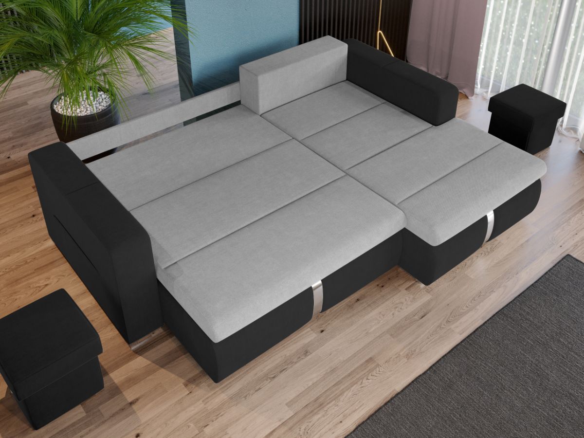 Coltar Ivy Gri Deschis / Gri Antracit Coltar Ivy Gri Deschis / Gri Antracit imbina doua nuante de stofa, iar picioarele si insertiile metalice argintii ofera un design elegant. Pe langa aspectul aparte, acesta este prevazut cu lada, ideala pentru depozitarea lenjeriei, a pernelor sau a paturii si pentru a pastra la indemana toate articolele frecvent utilizate. Coltarul ofera confort prin cele 5 perne detasabile si se poate transforma intr-un pat cu suprafata utila de 210 x 145 cm in doar cateva minute. Acesta are dimensiunea de: 255 cm lungime, 175 cm latime, 75 cm inaltime totala . Este tapitat cu stofa de calitate pe diverse culori. Atentie: Pretul afisat nu include alte accesorii sau obiecte de decor. Taburetele, pernele deco si draperiile se pot achizitiona optional. Livrare gratuita si rapida, 4-10 zile lucratoare prin flota proprie Suntem producatori de tapiterii, fara intermediari Toate piesele de tapiterii au o garantie de 2 ani Sezutul si extensia coltarului sunt din poliuretan de inalta densitate . Scheletul este rezistent, realizat pe structura solida de fag si pal. Extensia este de tip Doppelliege, ce prezinta un sistem actionat prin role, astfel ca partea de sezut se trage si permite partii de spatar sa gliseze spre partea din fata si sa se pozitioneze orizontal. Coltar Ivy Gri Deschis / Gri Antracit se incadreaza cu usurinta in majoritatea locuintelor indiferent de stilul acestora. Puteti alege din mai multe culori pentru stofa. Produsele disponibile le puteti vedea aici Modele Ivy . Dimensiuni Coltar Ivy Gri Deschis / Gri Antracit Lungime: 255 cm Latime: 175 cm Lungime intre brate: 210 cm Inaltime sezut: 42 cm Inaltime : 75 cm Adancime sezut: 86 cm Adancime selon 155 cm Latime sezlon 105 cm Dimensiuni extins Lungime extins: 210 cm Adancime extins: 145 cm Tapiterie Coltar Ivy Gri Deschis / Gri Antracit Tapiteria produsului este din stofa Gri Deschis si Gri Antracit. Nuantele acestui produs nu sunt pretentioase, mascheaza eventualele evenimente neplacute prin care se pot murdari sau pata si se integreaza perfect in majoritatea locuintelor. Intretinere: se recomanda ca praful sa se stearga cu un material textil moale (finet) umed si sa nu se curete cu agenti chimici (diluant, acetona). Imaginile sunt cu titlu de prezentare si pot avea mici diferente de nuante in functie de display. Dimensiunile sunt exprimate în centimetri si pot oscila între ± 50 mm.