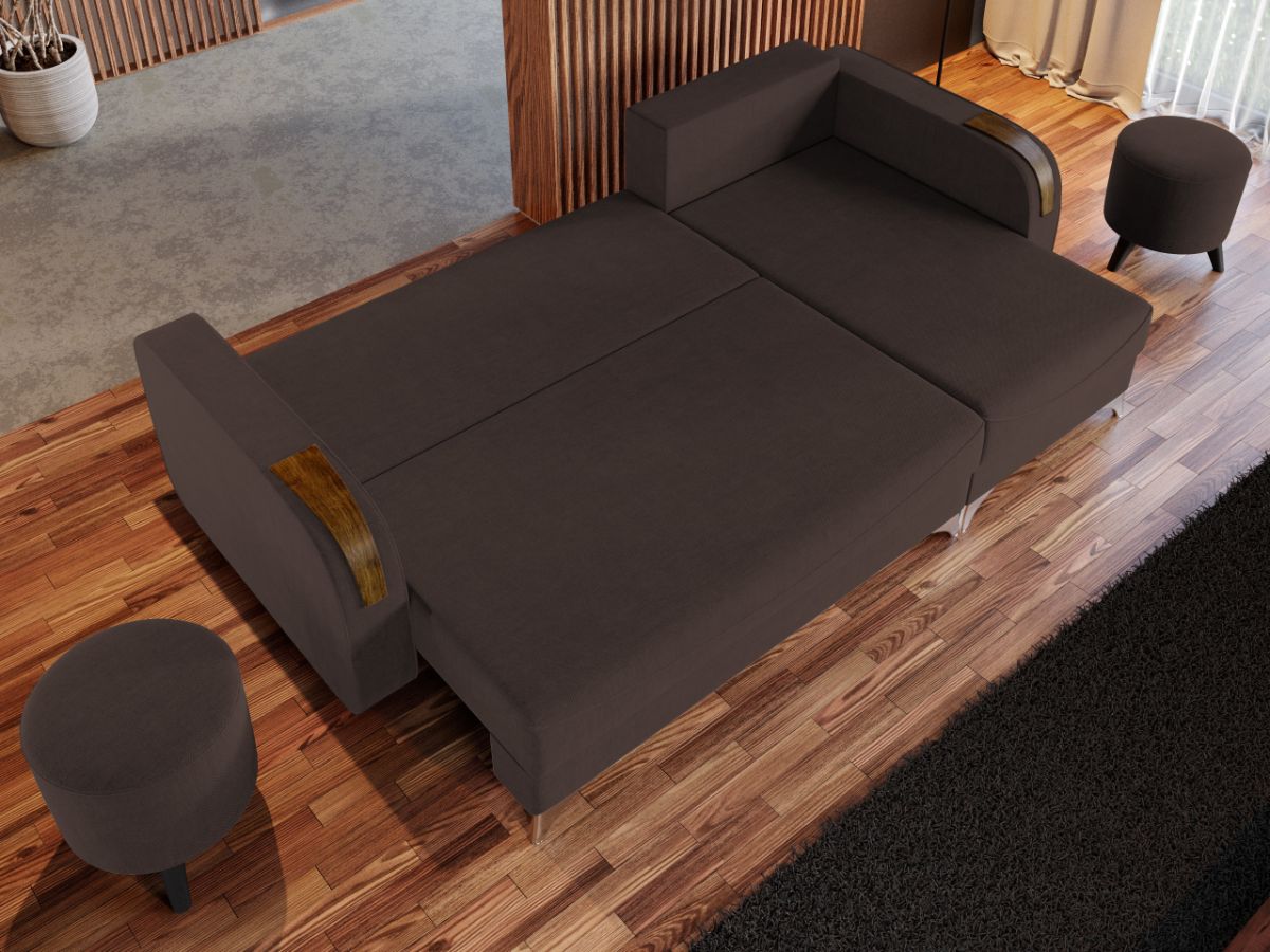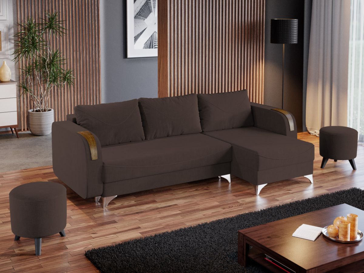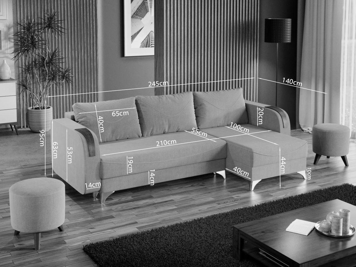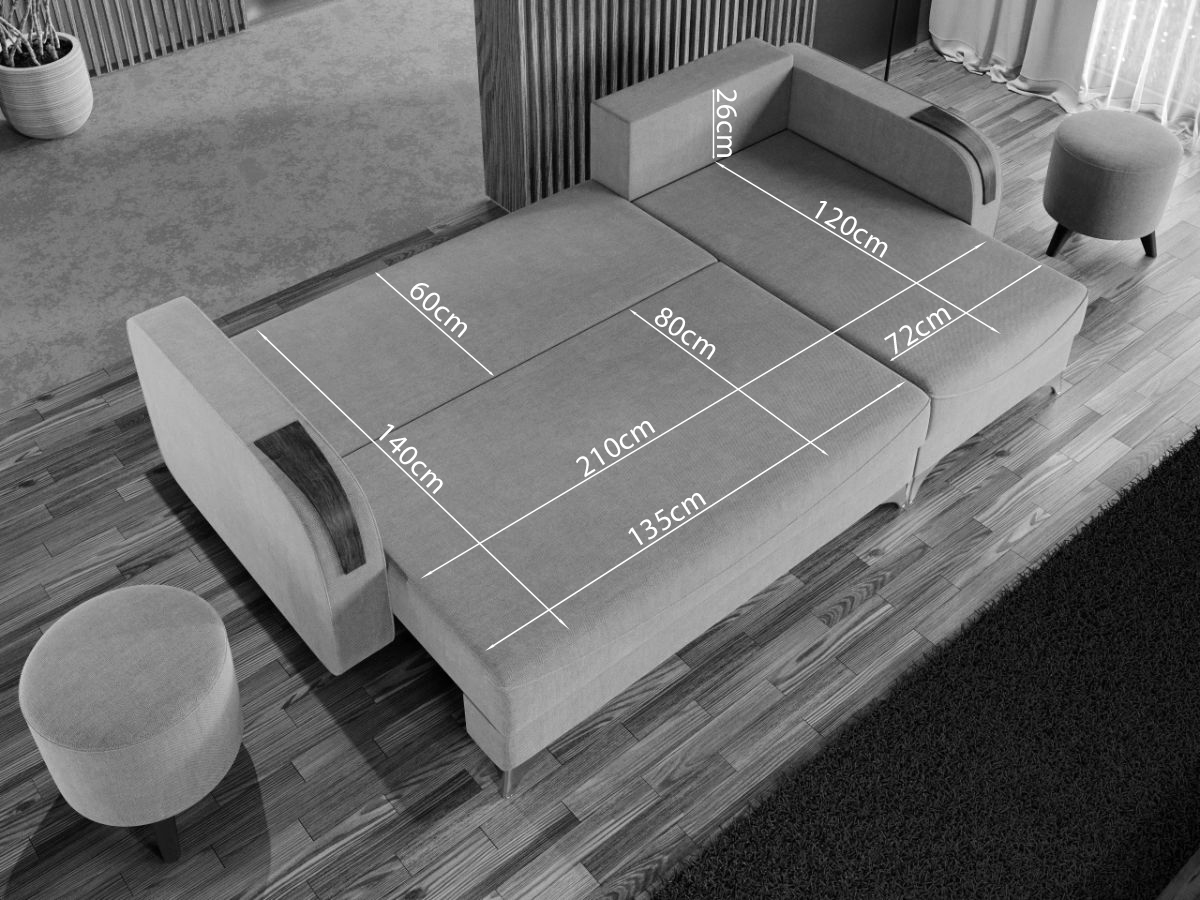 Coltar Londa Maro Coltar Londa Maro combina stilul si confortul, fiind alegerea potrivita pentru locuinta dumneavoastra. Picioarele argintii lucioase si insertiile de lemn de pe brate completeaza eleganta acestui coltar. Pe langa aspect, ofera confort prin cele 3 perne detasabile, cat si prin faptul ca se poate transforma rapid intr-un pat ce are lada de depozitare dedesubt. Este recomandat atat pentru incaperi medii, cat si mari si are dimensiunile de: 245 cm lungime, 140 cm latime, 95 cm inaltime totala . Dupa extindere, obtineti un spatiu pentru odihna si relaxare, cu suprafata utila 210 x 140 cm . Este tapitat cu o stofa de calitate uni pe diverse culori. Atentie: Pretul afisat nu include alte accesorii sau obiecte de decor. Taburetele si draperiile se pot achizitiona optional. Livrare gratuita si rapida, 4-10 zile lucratoare prin flota proprie Suntem producatori de tapiterii, fara intermediari Toate piesele de tapiterii au o garantie de 2 ani Sezutul si extensia coltarului sunt pe relaxa (arcuri elicoidale si poliuretan) . Scheletul este rezistent, realizat pe structura solida de fag si pal. Extensia este de tip Doppelliege ce prezinta un sistem actionat prin role, astfel ca partea de sezut se trage si permite partii de spatar sa gliseze spre partea din fata si sa se pozitioneze orizontal. Coltar Londa Maro se incadreaza cu usurinta in majoritatea locuintelor indiferent de stilul acestora. Puteti alege din mai multe culori pentru stofa. Produsele disponibile le puteti vedea aici Modele Londa . Dimensiuni Coltar Londa Lungime: 245 cm Latime: 140 cm Lungime intre brate: 210 cm Inaltime sezut: 44 cm Inaltime: 95 cm Adancime sezut cu perne: 55 cm Adancime sezut fara perne: 80 cm Adancime selong cu perne: 100 cm Adancime selong fara perne: 120 cm Latime sezlon 72 cm Inaltime picioare: 10 cm Dimensiuni extins Lungime extins: 210 cm Adancime extins: 140 cm Tapiterie Coltar Londa Maro Tapiteria produsului este din stofa Maro. Nuanta acestui produs nu este pretentioasa, mascheaza eventualele evenimente neplacute prin care se poate murdari sau pata si se integreaza perfect in majoritatea locuintelor. Intretinere: se recomanda ca praful sa se stearga cu un material textil moale (finet) umed si sa nu se curete cu agenti chimici (diluant, acetona). Imaginile sunt cu titlu de prezentare si pot avea mici diferente de nuante in functie de display. Dimensiunile sunt exprimate în centimetri si pot oscila între ± 50 mm.