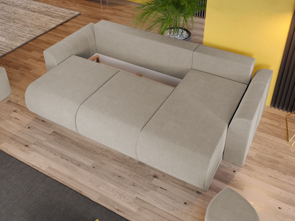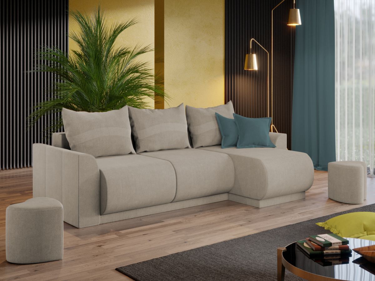 Coltar Nova Crem Coltar Nova Crem are un aspect aparte dat de liniile curbate de la sezut, brate si modelul pernelor. Spatarul are 3 perne detasabile cu 2 fete, o fata cu model si una in culoare uni. Coltarul se transforma rapid si usor intr-un pat spatios de 220 x 150 cm atunci cand scoti pernele si tragi sezutul in exterior coborand spatarul. Bratele si sezutul sunt rotunjite conferind un suport anatomic pentru maini si picioare. Te poti aseza astfel incat sa te simti bine si relaxat timp de multe ore, gratie pernelor detasabile pentru spatar, care ofera sustinere corpului tau exact in pozitia dorita. Acesta are dimensiunea de: 265 cm lungime, 155 cm latime, 87 cm inaltime totala . Este tapitat cu stofa de calitate pe diverse culori. Atentie: Pretul afisat nu include alte accesorii sau obiecte de decor. Taburetele, pernele deco si draperiile se pot achizitiona optional. Livrare gratuita si rapida, 4-10 zile lucratoare prin flota proprie Suntem producatori de tapiterii, fara intermediari Toate piesele de tapiterii au o garantie de 2 ani Sezutul si extensia coltarului sunt pe relaxa (arcuri elicoidale si poliuretan) . Scheletul este rezistent, realizat pe structura solida de fag si pal. Extensia este de tip Doppelliege, ce prezinta un sistem actionat prin role, astfel ca partea de sezut se trage si permite partii de spatar sa gliseze spre partea din fata si sa se pozitioneze orizontal. Coltar Nova Crem se incadreaza cu usurinta in majoritatea locuintelor indiferent de stilul acestora. Puteti alege din mai multe culori pentru stofa. Produsele disponibile le puteti vedea aici Modele Nova . Dimensiuni Coltar Nova Lungime: 265 cm Latime: 155 cm Lungime intre brate: 220 cm Inaltime sezut: 46 cm Inaltime : 87 cm Adancime sezut: 85 cm Adancime selon 130 cm Latime sezlon 70 cm Dimensiuni extins Lungime extins: 220 cm Adancime extins: 150 cm Dimensiuni brate Inaltime brate: 63 cm Lungime brate: 96 cm Tapiterie Coltar Nova Crem Tapiteria produsului este din stofa Crem . Nuanta acestui produs nu este pretentioasa, mascheaza eventualele evenimente neplacute prin care se poate murdari sau pata si se integreaza perfect in majoritatea locuintelor. Intretinere: se recomanda ca praful sa se stearga cu un material textil moale (finet) umed si sa nu se curete cu agenti chimici (diluant, acetona). Imaginile sunt cu titlu de prezentare si pot avea mici diferente de nuante in functie de display. Dimensiunile sunt exprimate în centimetri si pot oscila între ± 50 mm.