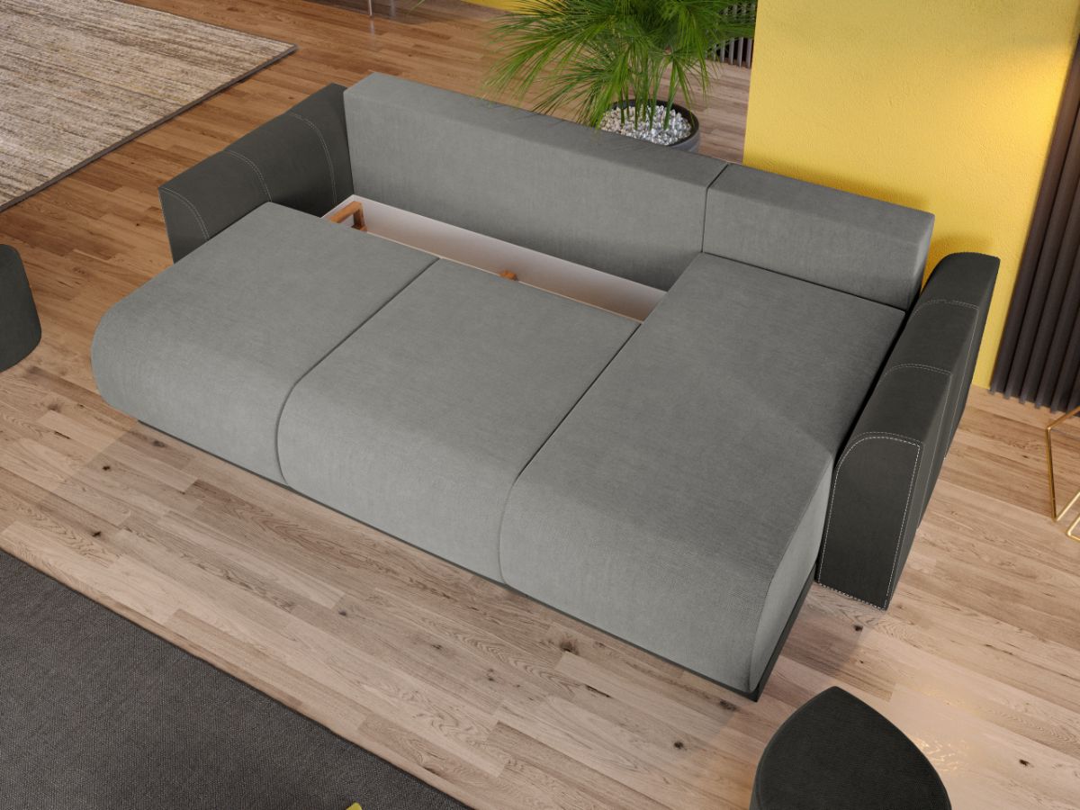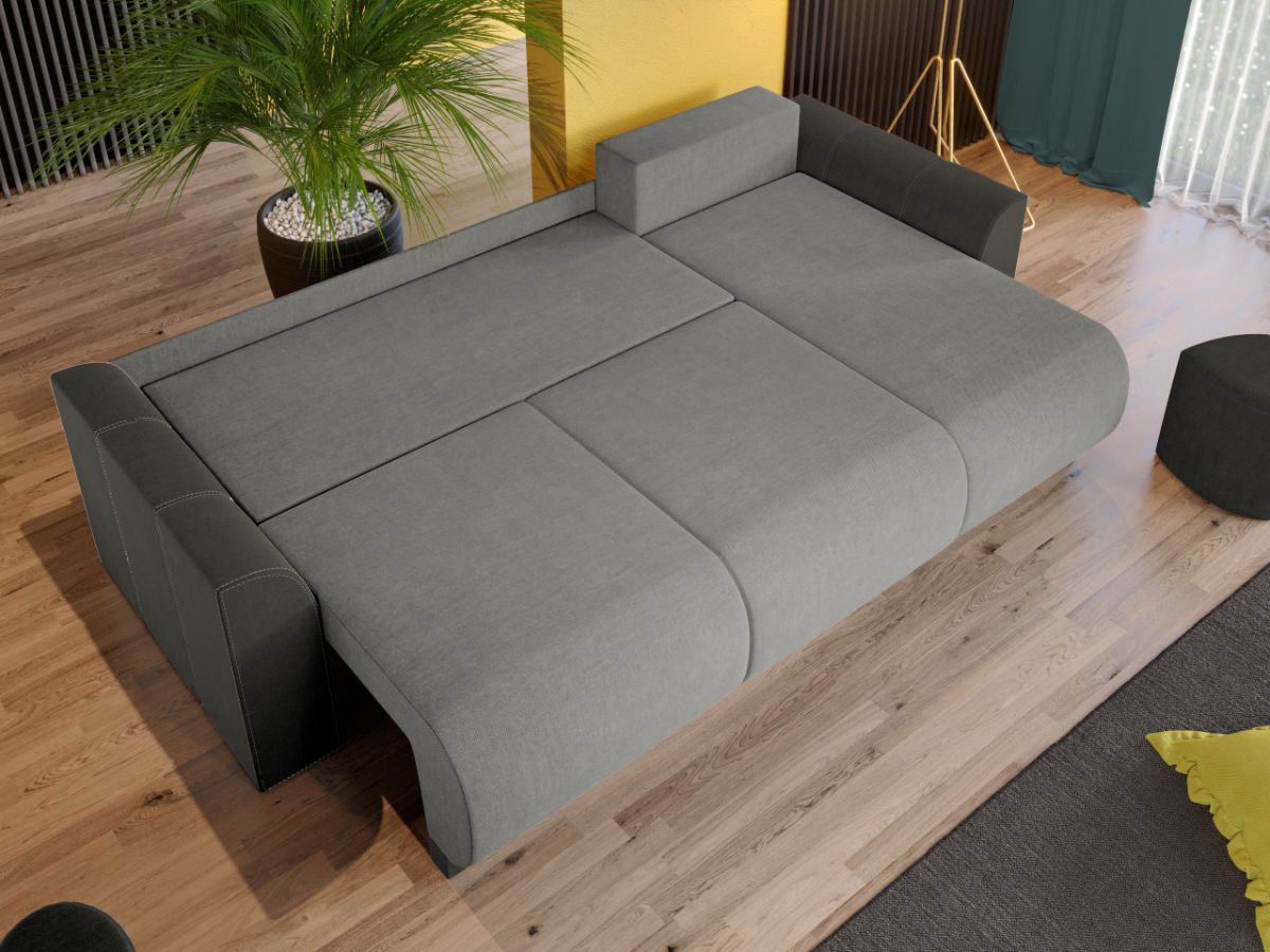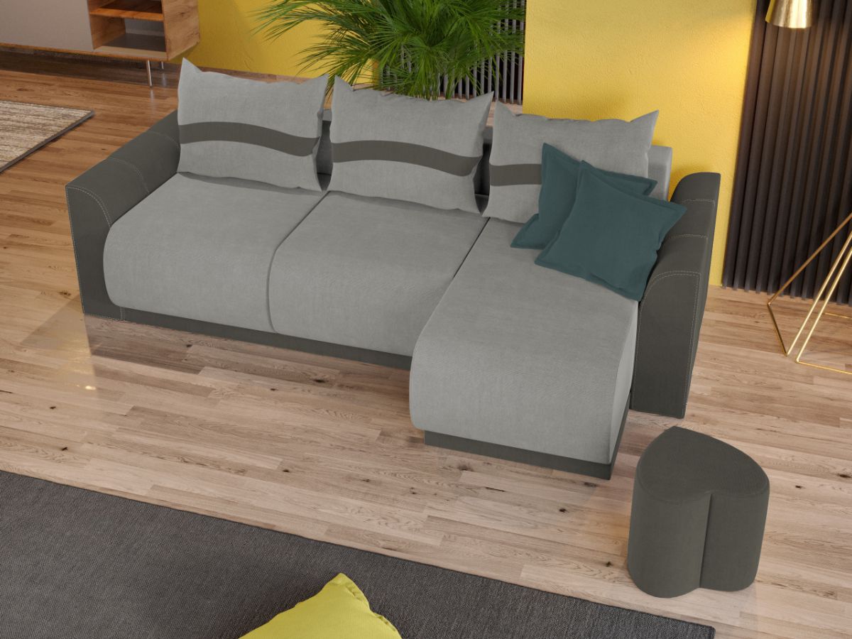 Coltar Nova Havana 6 / Olifante 13 Coltar Nova Havana 6 / Olifante 13 are un aspect aparte dat de liniile curbate de la sezut, brate si modelul pernelor. Spatarul are 3 perne detasabile cu 2 fete, o fata cu model si una in culoare uni. Coltarul se transforma rapid si usor intr-un pat spatios de 220 x 150 cm atunci cand scoti pernele si tragi sezutul in exterior coborand spatarul. Bratele si sezutul sunt rotunjite conferind un suport anatomic pentru maini si picioare. Te poti aseza astfel incat sa te simti bine si relaxat timp de multe ore, gratie pernelor detasabile pentru spatar, care ofera sustinere corpului tau exact in pozitia dorita. Acesta are dimensiunea de: 265 cm lungime, 155 cm latime, 87 cm inaltime totala . Este tapitat cu stofa de calitate pe diverse culori. Atentie: Pretul afisat nu include alte accesorii sau obiecte de decor. Taburetele, pernele deco si draperiile se pot achizitiona optional. Livrare gratuita si rapida, 4-10 zile lucratoare prin flota proprie Suntem producatori de tapiterii, fara intermediari Toate piesele de tapiterii au o garantie de 2 ani Sezutul si extensia coltarului sunt pe relaxa (arcuri elicoidale si poliuretan) . Scheletul este rezistent, realizat pe structura solida de fag si pal. Extensia este de tip Doppelliege, ce prezinta un sistem actionat prin role, astfel ca partea de sezut se trage si permite partii de spatar sa gliseze spre partea din fata si sa se pozitioneze orizontal. Coltar Nova Havana 6 / Olifante 13 se incadreaza cu usurinta in majoritatea locuintelor indiferent de stilul acestora. Puteti alege din mai multe culori pentru stofa. Produsele disponibile le puteti vedea aici Modele Nova . Dimensiuni Coltar Nova Lungime: 265 cm Latime: 155 cm Lungime intre brate: 220 cm Inaltime sezut: 46 cm Inaltime : 87 cm Adancime sezut: 85 cm Adancime selon 130 cm Latime sezlon 70 cm Dimensiuni extins Lungime extins: 220 cm Adancime extins: 150 cm Dimensiuni brate Inaltime brate: 63 cm Lungime brate: 96 cm Tapiterie Coltar Nova Havana 6 / Olifante 13 Tapiteria produsului este din stofa Havana 6 pe sezut si Olifante 13 pe brate . Nuantele acestui produs nu sunt pretentioase, mascheaza eventualele evenimente neplacute prin care se pot murdari sau pata si se integreaza perfect in majoritatea locuintelor. Intretinere: se recomanda ca praful sa se stearga cu un material textil moale (finet) umed si sa nu se curete cu agenti chimici (diluant, acetona). Imaginile sunt cu titlu de prezentare si pot avea mici diferente de nuante in functie de display. Dimensiunile sunt exprimate în centimetri si pot oscila între ± 50 mm.