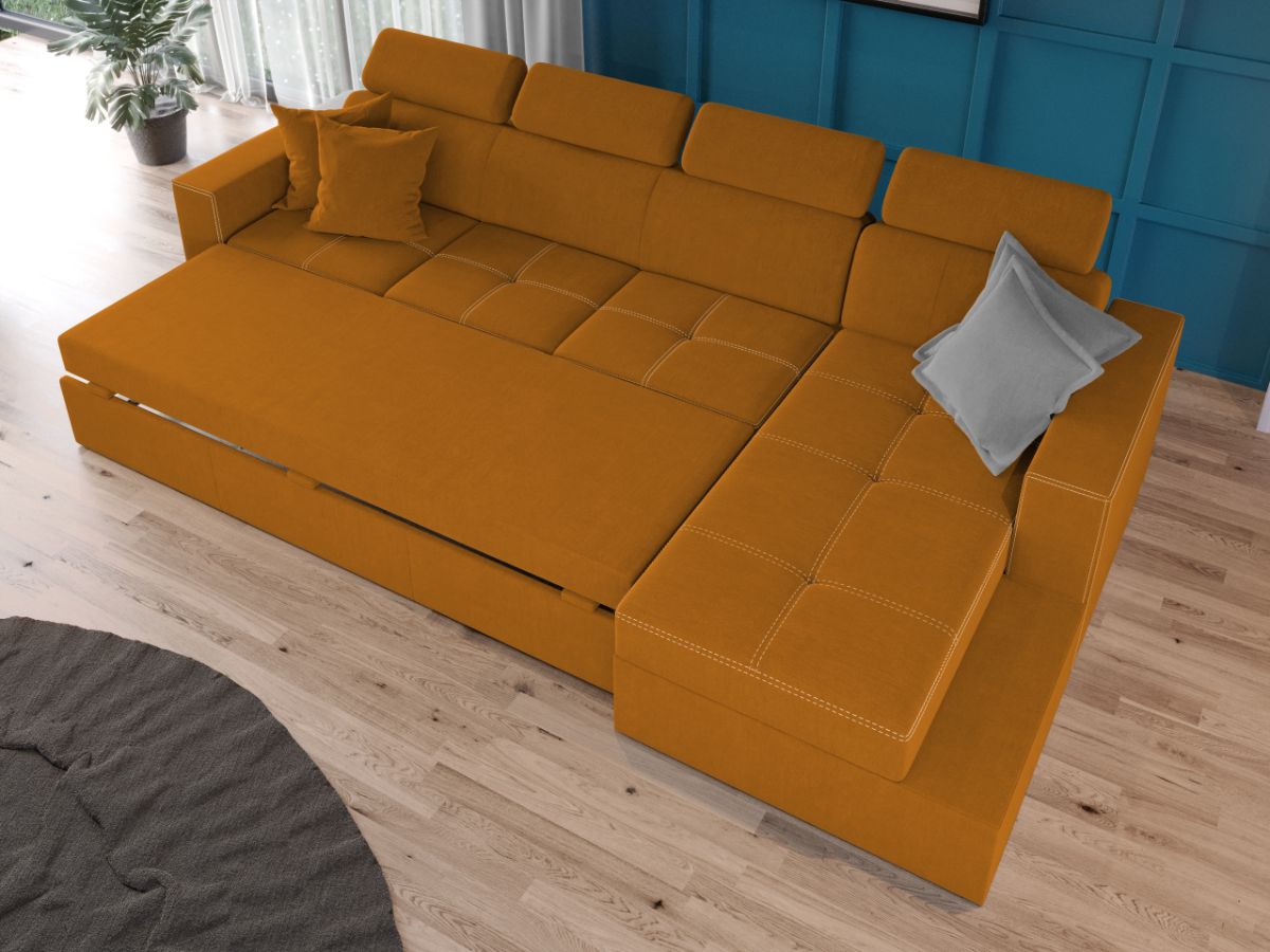 Coltar Paloma + 1 loc Portocaliu Coltar Paloma + 1 loc Portocaliu are un design modern, contemporan. Acesta este usor de integrat in orice decor, datorita liniilor moderne ale acestuia, iar cusaturile contrastante ofera un aspect sofisticat. Tetierele, elementul surpriza al acestui coltar, pe langa aspectul aparte, au si un mecanism de reglare pe inaltime pentru un confort sporit. Se poate transforma intr-un pat confortabil in doar cateva minute si este prevazut cu lada pentru depozitare. Este recomandat atat pentru incaperi mici sau mari si are dimensiunea de: 300 cm lungime, 164 cm latime, 96 cm inaltime totala . Dupa extindere, obtineti un spatiu pentru odihna si relaxare, cu suprafata utila 256 x 125 cm . Este tapitat cu stofa de calitate pe diverse culori. Atentie:  Pretul afisat nu include alte accesorii sau obiecte de decor. Taburetele, pernele deco si draperiile se pot achizitiona optional. Livrare gratuita si rapida, 4-10 zile lucratoare prin flota proprie Suntem producatori de tapiterii, fara intermediari Toate piesele de tapiterii au o garantie de 2 ani Sezutul este pe relaxa (arcuri elicoidale si poliuretan) si extensia este din poliuretan. Scheletul este rezistent, realizat pe structura solida de fag si pal. Extensia de tip sertar este pozitionata sub sezutul coltarului. Se deschide ca un sertar, apoi se ridica salteaua din interiorul acestuia. Coltar Paloma + 1 loc Portocaliu se incadreaza cu usurinta in majoritatea locuintelor indiferent de stilul acestora. Puteti alege din mai multe culori pentru stofa. Produsele disponibile le puteti vedea aici Modele Paloma . Dimensiuni Coltar Paloma + 1 loc Portocaliu Lungime: 300 cm Latime: 164 cm Lungime intre brate: 256 cm Inaltime sezut: 44 cm Adancime sezut: 56 cm Inaltime cu tetiere: 96 cm Inaltime fara tetiere: 70 cm Dimensiuni extinsa Lungime extinsa: 256 cm Adancime extinsa: 125 cm Dimensiuni brate Inaltime brate: 60 cm Lungime brate: 92 cm Tapiterie Coltar Paloma + 1 loc Portocaliu Tapiteria produsului este din stofa Portocalie. Nuanta acestui produs nu este pretentioasa, mascheaza eventualele evenimente neplacute prin care se poate murdari sau pata si se integreaza perfect in majoritatea locuintelor. Intretinere: se recomanda ca praful sa se stearga cu un material textil moale (finet) umed si sa nu se curete cu agenti chimici (diluant, acetona). Imaginile sunt cu titlu de prezentare si pot avea mici diferente de nuante in functie de display. Dimensiunile sunt exprimate în centimetri si pot oscila între ± 50 mm.