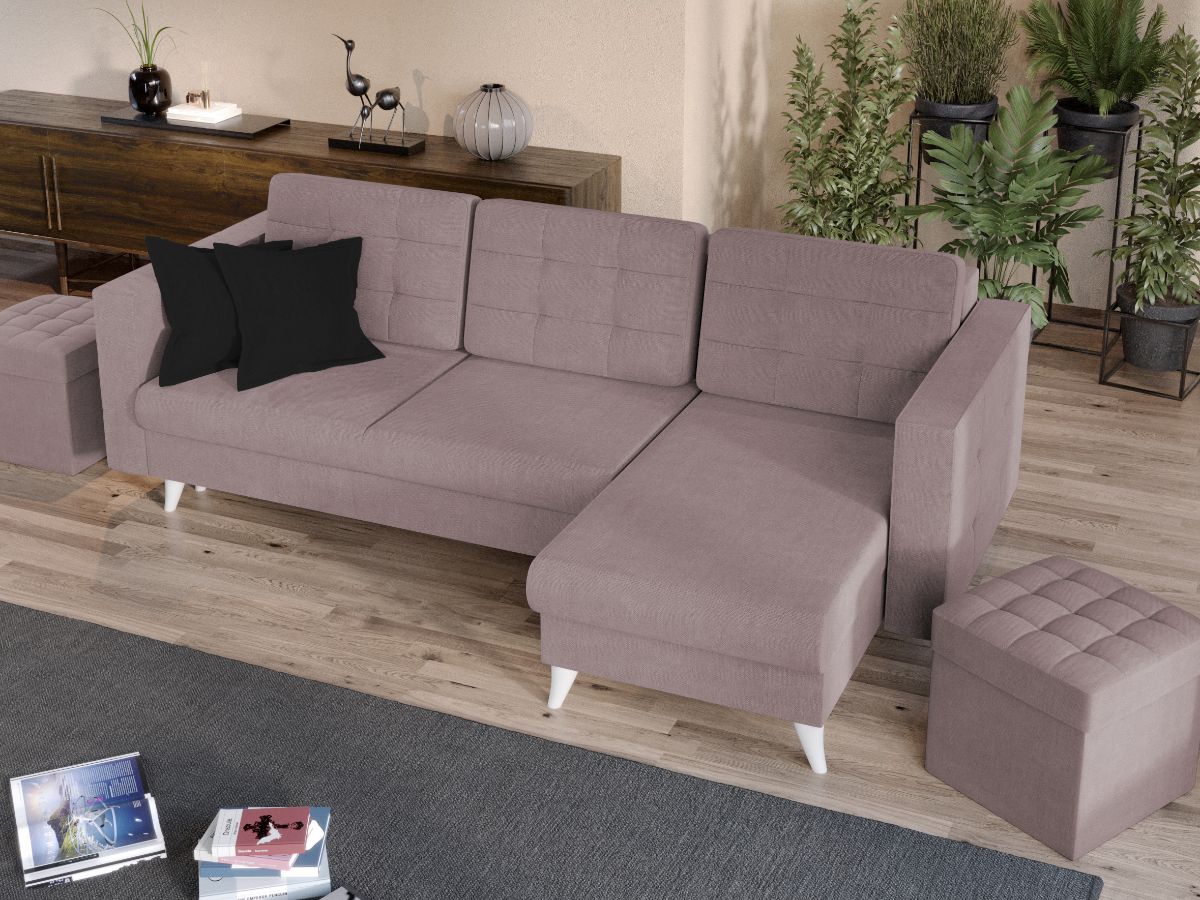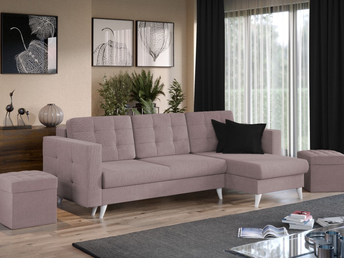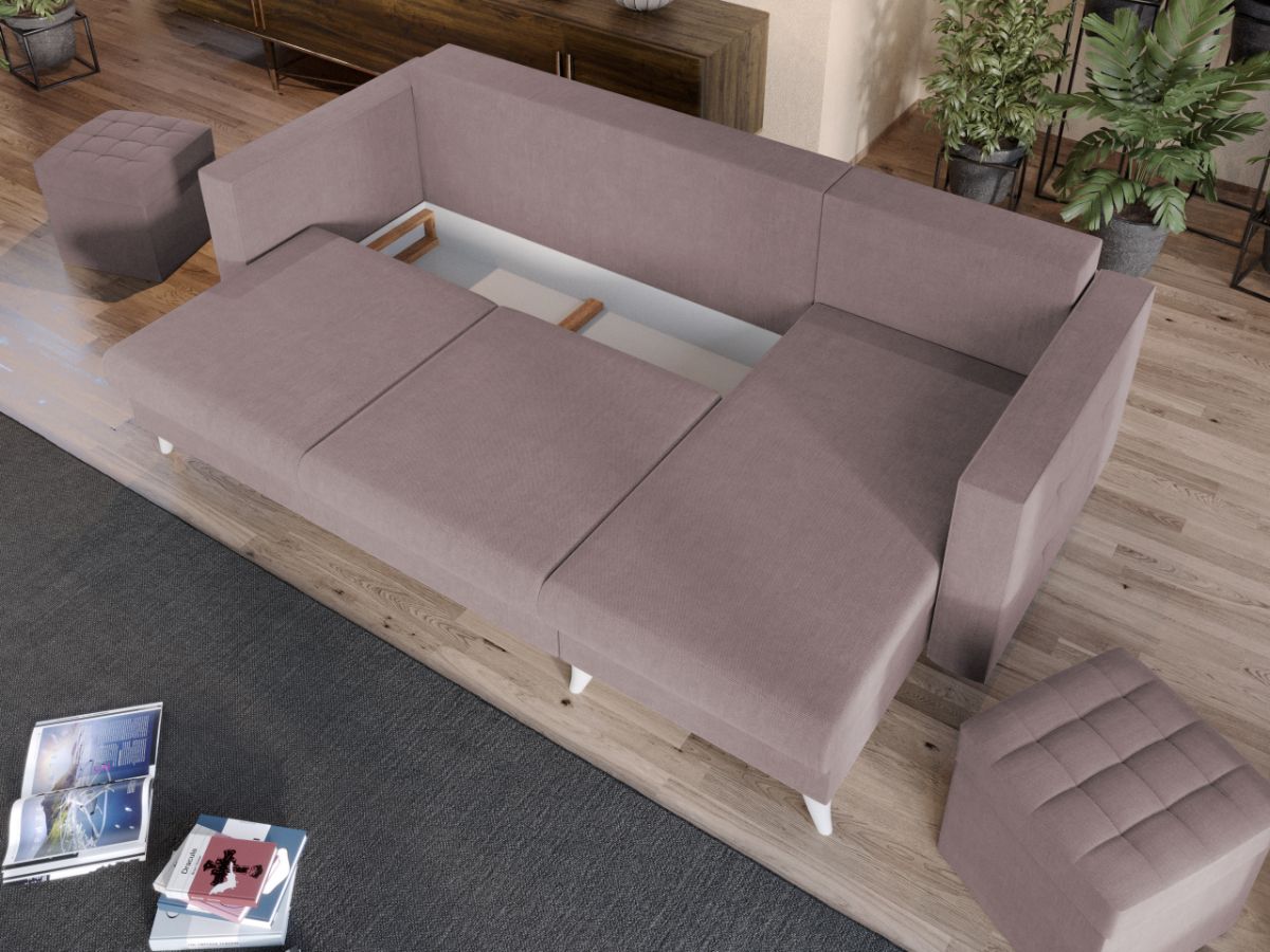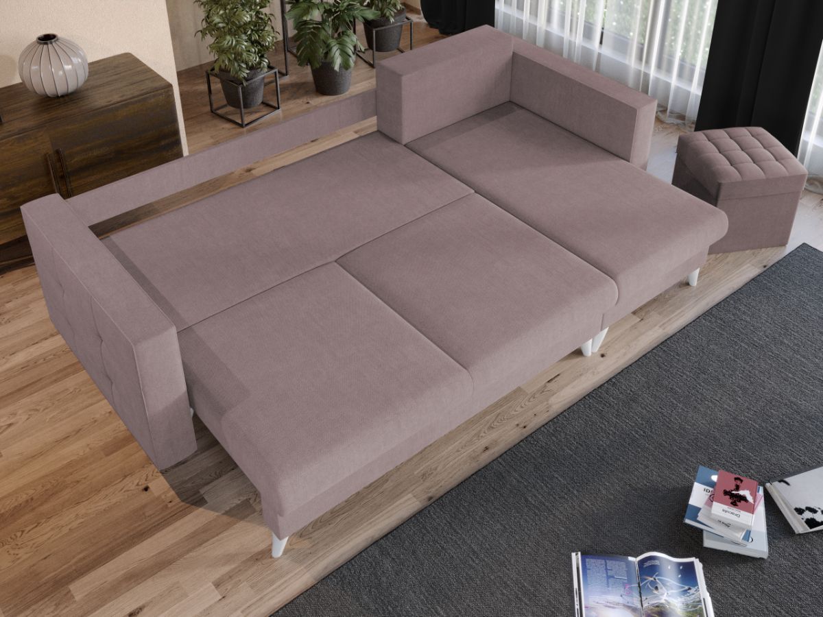 Coltar Santorini Roz Pudrat Coltar Santorini Roz Pudrat are un design modern, contemporan, cu un stil aparte. Picioarele sunt cu o forma usor arcuita si de culoare ivory. Se poate transforma intr-un pat confortabil in doar cateva minute si este prevazut cu lada de depozitare . Ofera confort prin cele 3 perne detasabile, iar butonii de pe acestea si de pe brate dau un plus de eleganta si stil oricarui living. Este recomandat atat pentru incaperi mici sau mari si are dimensiunea de: 250 cm lungime, 150 cm latime, 90 cm inaltime totala . Dupa extindere, obtineti un spatiu pentru odihna si relaxare, cu suprafata utila 220 x 150 cm . Este tapitat cu o stofa de calitate uni pe diverse culori. Atentie: Pretul afisat nu include alte accesorii sau obiecte de decor. Taburetele, pernele deco si draperiile se pot achizitiona optional. Livrare gratuita si rapida, 4-10 zile lucratoare prin flota proprie Suntem producatori de tapiterii, fara intermediari Toate piesele de tapiterii au o garantie de 2 ani Sezutul si extensia coltarului sunt pe relaxa (arcuri elicoidale si poliuretan) . Lada incorporata este ideala pentru depozitarea lenjeriei sau a altor obiecte. Scheletul este rezistent, realizat pe structura solida de fag si pal. Extensia este de tip Doppelliege ce prezinta un sistem actionat prin role, astfel ca partea de sezut se trage si permite partii de spatar sa gliseze spre partea din fata si sa se pozitioneze orizontal. Coltar Santorini Roz Pudrat se incadreaza cu usurinta in majoritatea locuintelor indiferent de stilul acestora. Puteti alege din mai multe culori pentru stofa. Produsele disponibile le puteti vedea aici Modele Santorini . Dimensiuni Coltar Santorini Roz Pudrat Lungime: 250 cm Latime: 150 cm Lungime intre brate: 220 cm Inaltime sezut: 48 cm Adancime sezut: 80 cm (fara perne) Adancime sezut: 65 cm (pana in perne) Inaltime cu perne: 90 cm Inaltime fara perne: 75 cm Dimensiuni extins Lungime extins: 220 cm Adancime extins: 150 cm Dimensiuni brate Inaltime brate: 69 cm Lungime brate: 96 cm Tapiterie Coltar Santorini Roz Pudrat Tapiteria produsului este din stofa Roz Pudrat . Nuanta acestui produs nu este pretentioasa, mascheaza eventualele evenimente neplacute prin care se poate murdari sau pata si se integreaza perfect in majoritatea locuintelor. Intretinere: se recomanda ca praful sa se stearga cu un material textil moale (finet) umed si sa nu se curete cu agenti chimici (diluant, acetona). Imaginile sunt cu titlu de prezentare si pot avea mici diferente de nuante in functie de display. Dimensiunile sunt exprimate în centimetri si pot oscila între ± 50 mm.