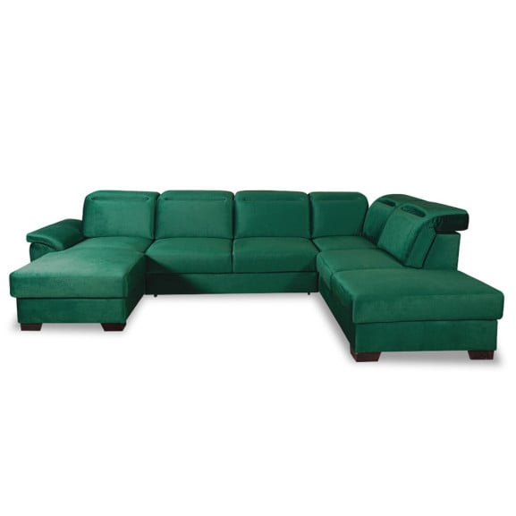 Coltar U Extensibil Cu Lada Dax, Dreapta, Tetiere Reglabile, Verde, 375 Cm