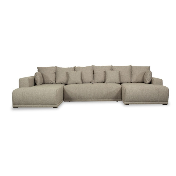 Produs fabricat in Romania!Suntem mândri să îți recomandăm acest produs care este realizat de catre producatorul Larix Mobila. Colțarul extensibil Otis în forma de U este soluția ideală pentru a crea un spațiu de relaxare și socializare în locuința ta. Cu un design ingenios și o funcționalitate remarcabilă, acest colțar aduce un plus de eleganță și stil în orice living.Fabricat cu materiale de calitate, colțarul extensibil Otis garantează rezistență și durabilitate pe termen lung. Structura solidă și confortabilă este realizată din PAL și lemn masiv, oferindu-ți un suport stabil și confortabil în timpul utilizării. Unul dintre punctele forte ale coltaruluii Otis este lada de depozitare spațioasă integrată în designul său inteligent. Această ladă oferă un spațiu util și practic pentru a păstra lenjeria de pat, pernele sau alte obiecte personale, economisind astfel spațiu în cameră și contribuind la organizarea impecabilă a locuinței dumneavoastră.Tapițeria completează aspectul rafinat al colțarului Otis. Acest material moale și plăcut la atingere oferă o experiență deosebită de confort, invitându-te să te relaxezi și să te bucuri de momentele de odihnă alături de cei dragi.Cu forma sa inconfundabilă de U, acest colțar extensibil maximizează spațiul disponibil și îți permite să te bucuri de o zonă de conversație amplă și confortabilă. Poți invita prietenii și familia să se așeze confortabil pe acest colțar generos și să petreceți timp de calitate împreună.De asemenea, colțarul extensibil Otis dispune de extensie, permițându-ți să transformi rapid și ușor colțarul într-un spațiu de dormit suplimentar. Indiferent dacă ai musafiri care rămân peste noapte sau vrei să te odihnești într-un loc confortabil, această funcționalitate adaugă o valoare deosebită colțarului.Colțarul extensibil Otis reprezintă alegerea perfectă pentru un living spațios și elegant. Cu materiale de calitate, confort deosebit și funcționalitate versatilă, acest colțar transformă orice încăpere într-un spațiu de relaxare și socializare extraordinar. SPECIFICATII:Tip produs: coltarTip: extensibilLatime: 357 cm Lungime: 204 cmCuloare: bejFinisaj picior: plastic negruNumar locuri: 6 Caracteristici cheie: extensibila (extensie pe role), lada de depozitare, 6 perne mari si 4 perne miciUtilizat pentru: LivingMaterial tapiterie: Lukka 12Water Repellent – Rezistent la apaTesatura materialului este acoperita cu un strat protector special, formand un strat hidrofug care previne infiltrarea rapidă a fluidului. Țesătura este acoperită cu un film protector special, creând un strat rezistent la apă, care protejează împotriva absorbției rapide a lichidelor. În loc să fie imediat absorbită, apa este condensată pe suprafața materialului. Pe eticheta produsului veti gasi afisat simbolul specific ceea ce va indica ca tesatura este acoperita cu un strat protector special, formând un strat hidrofug care previne scurgerea rapidă a fluidelor. Se permite doar spălarea manuală, nu este permisă spălarea cu înălbitor, nu se permite stoarcerea și uscarea articolului, călcare la temperature scăzută, (maxim 110°С). Material cadru: PAL, lemn masivSezutStructura sezut: Burete poliuretanic, Arcuri sinusoidale Tip extensie: DoppelliegeDimensiune suprafata de dormit (cm): 309 x 140 cm Caracteristici speciale: Confortul și rezistența în timp sunt asigurate prin folosirea arcurilor sinusoidale și a spumei poliuretanice de înaltă rezistență;Instructiuni ingrijire: Aspirati saptamanal produsul sau folositi o perie de haine. Evitati expunerea la radiatii solare directe sau folosirea produsului la temperaturi sub zero grade Celsius. Toate materialele se curata chimic in centre specializate de curatare. * Dimensiunile produsului pot sa difere cu aproximativ +/- 3 cm.