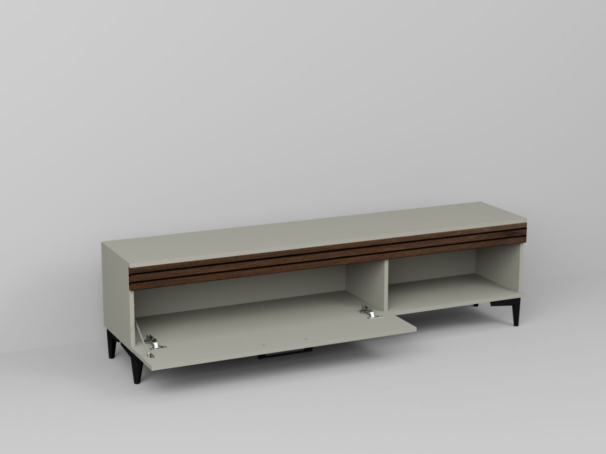 Comoda TV 1600 Nori Ideala pentru living, sufragerie sau chiar dormitor sau hol, mobila Comoda TV 1600 Nori are 2 spatii de depozitare, cel mare este cu usa, unde puteti pune obiecte ce nu doriti sa se vada si cel mic este deschis. Poate fi folosit ca un corp unic sau combinat cu alte corpuri din familia de mobila pentru sufragerie Nori . Latime: 160 cm Adancime: 33.5 cm Inaltime: 43.7 cm Inaltime picioare 12cm, este inclusa in dimensiunile corpului. Culoarea principala este Casmir, iar in combinatie cu Deep Line (cu aspect care imita riflajul) cu manerul si picioarele negre denota o eleganta si un rafinament aparte. DESCARCA SCHITA MONTAJ Pretul afisat nu include alte accesorii sau obiecte de decor (TV, tablouri, elemente de iluminat, covor etc.) Dimensiunile sunt exprimate in cm si pot oscila intre ± 10 mm. Produsul se livreaza demontat si este insotit de accesorii si instructiuni de asamblare. Comoda TV 1600 Nori Livrare rapida, 4-10 zile lucratoare prin flota proprie Suntem producatori de mobilier, fara intermediari Toate piesele de mobilier au o garantie de 2 ani Comoda TV 1600 Nori face parte din familia de mobila pentru sufragerie / living Nori . Aceasta colectie este alcatuita din mai multe module, care, prin combinatiile de materiale si culori, denota o eleganta si un rafinament aparte. Puteti alege direct din configuratiile realizate de noi sau, daca doriti, puteti creea singuri propria configuratie de living combinand corpurile de mobila astfel incat sa se potriveasca perfect in spatiul dorit. Corpurile din gama Living Nori sunt construite din PAL melaminat de 16mm cu finisaj Casmir si Deep Line (cu aspect care imita riflajul) care, impreuna cu manerele si picioarele negre , creeaza un ambient primitor si o atmosfera placuta. Cantul aplicat este unul de 0,6 care le permite muchiilor sa fie placute la atingere.