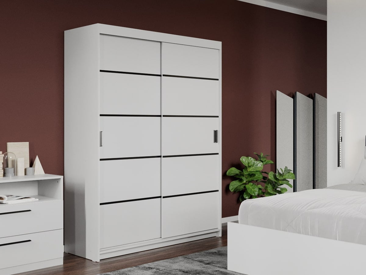 Dressing / Dulap dormitor Alb 138 – Elis este o piesă de mobilier care oferă spațiu pentru depozitare într-un mod practic și estetic. Dressingul dispune de 2 uși glisante , acestea fiind proiectate pentru a se deplasa pe șine. Acest concept permite economisirea spațiului în încăpere și tot odată oferă camerei un aspect modern și elegant. Dulapurile cu uși glisante sunt ideale pentru încăperi în care spațiul este limitat, deoarece nu necesită spațiu suplimentar pentru deschiderea ușilor tradiționale. Dimensiuni exterioare: Lățime: 138 cm Adâncime: 55 cm Inălțime: 194,8 cm Informații suplimentare Dressing / Dulap dormitor Alb 138 – Elis: Dressingul dispune de 5 spații sub formă de polițe si 2 bare pentru umerașe ; Finisajul Alb oferă un plus de eleganță încăperii; Dulapul este compus din carcasă , fronturi , polițe , bară pentru umerașe și mânere pentru uși, toate asigurând o funcționalitate și accesibilitate optimă; Carcasa și fronturile sunt realizate din PAL melaminat , având o grosime de 16 mm; Dressingul pune la dispoziție 2 uși pe șine; Dulapul este decorat cu baghete de culoare neagră. OPȚIONAL: Corp cu sertare. – Descarcă schița de montaj !Atenție! Baghetele decorative care sunt prezente pe fronutrile de la dulap se vor aplica de către client! Dimensiunile produsului pot varia cu ± 10 mm. aduce o notă de frumusețe și rafinament încăperii. Dressingul poate fi amplasat în diverse încăperi, fiind versatil și ușor de integrat în orice tip de amenajare. Deoarece sistemul de deschidere este unul pe șine și nu este nevoie de spațiu suplimentar pentru deschiderea ușiilor, dulapul este ideal pentru spații de mici dimensiuni. Produsul se expediază în colete, demontat și este însoțit de toate accesoriile și schița de montaj aferentă. Atenție! Costul produsului nu include accesorii sau elemente decorative suplimentare, precum tablouri, lămpi, lenjerii de pat sau covoare. *Scopul fotografiilor este de a oferi o reprezentare generală, însă există posibilitatea unor mici variații de culoare cauzate de dispozitivele utilizate.