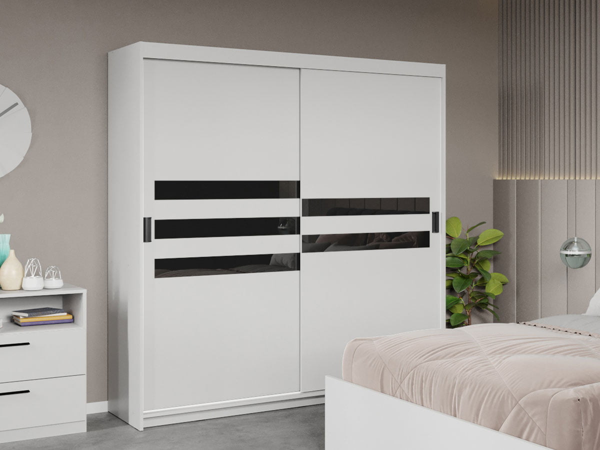 Dressing / Dulap dormitor Alb 184 – Glass este o piesă de mobilier care oferă spațiu pentru depozitare într-un mod practic și estetic. Dulapul dispune de 2 uși glisante , acestea fiind proiectate pentru a se deplasa pe șine. Acest concept permite economisirea spațiului în încăpere și tot odată oferă camerei un aspect modern și elegant. Dulapurile cu uși glisante sunt ideale pentru încăperi în care spațiul este limitat, deoarece nu necesită spațiu suplimentar pentru deschiderea ușilor tradiționale. Dimensiuni exterioare: Lățime: 184 cm Adâncime: 55 cm Inălțime: 194,8 cm Informații suplimentare Dressing / Dulap dormitor Alb 184 – Glass: Dressingul dispune de 5 spații sub formă de polițe si 2 bare pentru umerașe ; Finisajul Alb oferă un plus de eleganță încăperii; Dulapul este compus din carcasă , fronturi , polițe , bară pentru umerașe și mânere pentru uși, toate asigurând o funcționalitate și accesibilitate optimă; Carcasa și fronturile sunt realizate din PAL melaminat , având o grosime de 16 mm; Dressingul pune la dispoziție 2 uși pe șine; Dulapul este decorat cu baghete de culoare neagră. OPȚIONAL: Corp cu sertare. – Descarcă schița de montaj !Atenție! Sticla decorativă prezentă pe fronutrile de la dulap se va aplica de către client! Dimensiunile produsului pot varia cu ± 10 mm. aduce o notă de frumusețe și rafinament încăperii. Dulapul poate fi amplasat în diverse încăperi, fiind versatil și ușor de integrat în orice tip de amenajare. Deoarece sistemul de deschidere este unul pe șine și nu este nevoie de spațiu suplimentar pentru deschiderea ușiilor, dulapul este ideal pentru spații de mici dimensiuni. Produsul se expediază în colete, demontat și este însoțit de toate accesoriile și schița de montaj aferentă. Atenție! Costul produsului nu include accesorii sau elemente decorative suplimentare, precum tablouri, lămpi, lenjerii de pat sau covoare. *Scopul fotografiilor este de a oferi o reprezentare generală, însă există posibilitatea unor mici variații de culoare cauzate de dispozitivele utilizate.