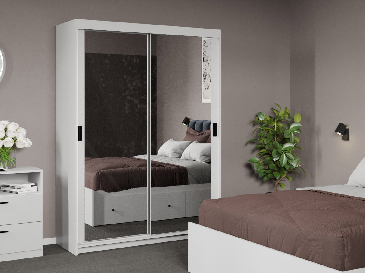 Dressing / Dulap dormitor cu Oglinda 138 – Karin este o piesă de mobilier care oferă spațiu pentru depozitare într-un mod practic și estetic. Dulapul dispune de 2 uși glisante , acestea fiind proiectate pentru a se deplasa pe șine. Acest concept permite economisirea spațiului în încăpere și tot odată oferă camerei un aspect modern și elegant. Dulapurile cu uși glisante sunt ideale pentru încăperi în care spațiul este limitat, deoarece nu necesită spațiu suplimentar pentru deschiderea ușilor tradiționale. Dimensiuni exterioare: Lățime: 138 cm Adâncime: 55 cm Inălțime: 194,8 cm Informații suplimentare Dressing / Dulap dormitor cu Oglinda 138 – Karin: Dulapul dispune de 5 spații sub formă de polițe si 2 bare pentru umerașe ; Finisajul Alb împreună cu cele două oglinzi oferă un plus de eleganță încăperii; Dressingul este compus din carcasă , fronturi , oglindă, polițe , bară pentru umerașe și mânere pentru uși, toate asigurând o funcționalitate și accesibilitate optimă; Carcasa și fronturile sunt realizate din PAL melaminat , având o grosime de 16 mm; Dressingul pune la dispoziție 2 uși pe șine; OPȚIONAL: Corp cu sertare. – Descarcă schița de montaj Dimensiunile produsului pot varia cu ± 10 mm. Cele două oglinzi vor crea iluzia unui spațiu mai mare , iar prin reflectarea încăperii, oglinzile pot face camera să pară mai deschisă și mai luminoasă . Dulapul poate fi amplasat în diverse încăperi, fiind versatil și ușor de integrat în orice tip de amenajare. Deoarece sistemul de deschidere este unul pe șine și nu este nevoie de spațiu suplimentar pentru deschiderea ușiilor, dulapul este ideal pentru spații de mici dimensiuni. Produsul se expediază în colete, demontat și este însoțit de toate accesoriile și schița de montaj aferentă. Atenție! Costul produsului nu include accesorii sau elemente decorative suplimentare, precum tablouri, lămpi, lenjerii de pat sau covoare. *Scopul fotografiilor este de a oferi o reprezentare generală, însă există posibilitatea unor mici variații de culoare cauzate de dispozitivele utilizate.