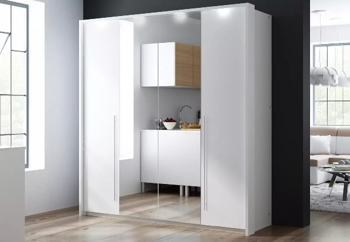 Dotare: uși suspendate pe feronerie HETTICH, iluminat – puncte LED în marginea dulapului,
