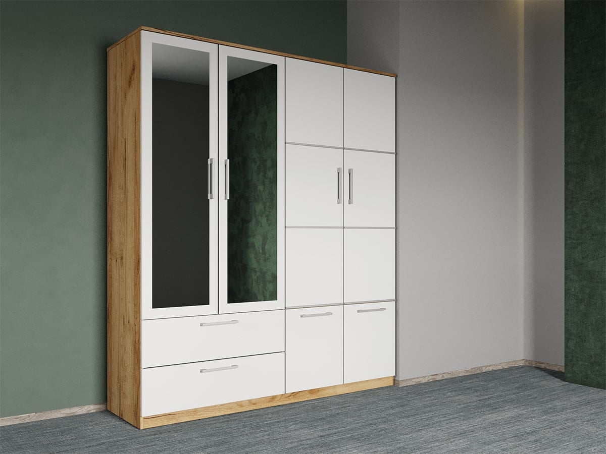 Dulap dormitor Alb-Stejar 4U cu oglinda – Acapulco