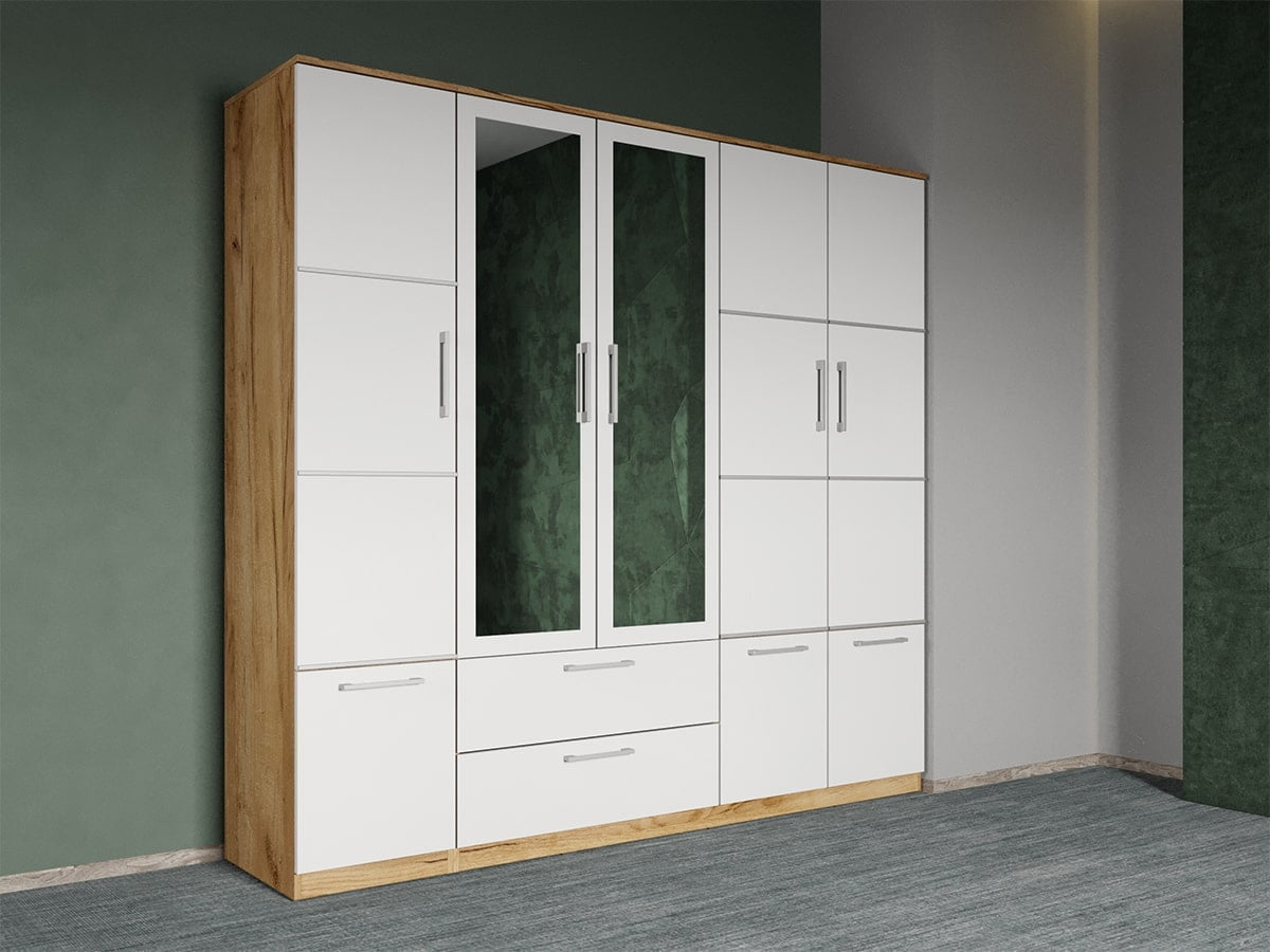 Dulap dormitor Alb-Stejar Auriu 5U cu oglinda – Acapulco