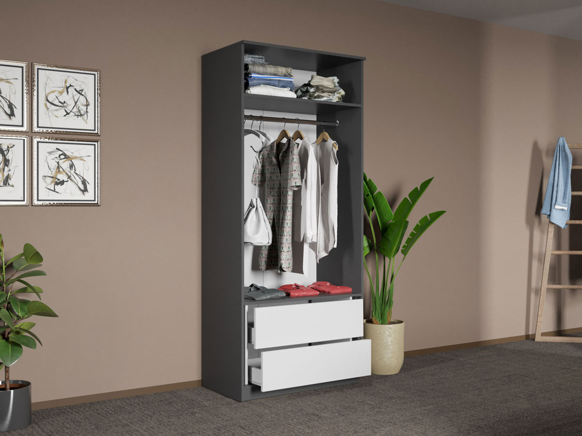 Dulap dormitor Gri+Alb Shape C02