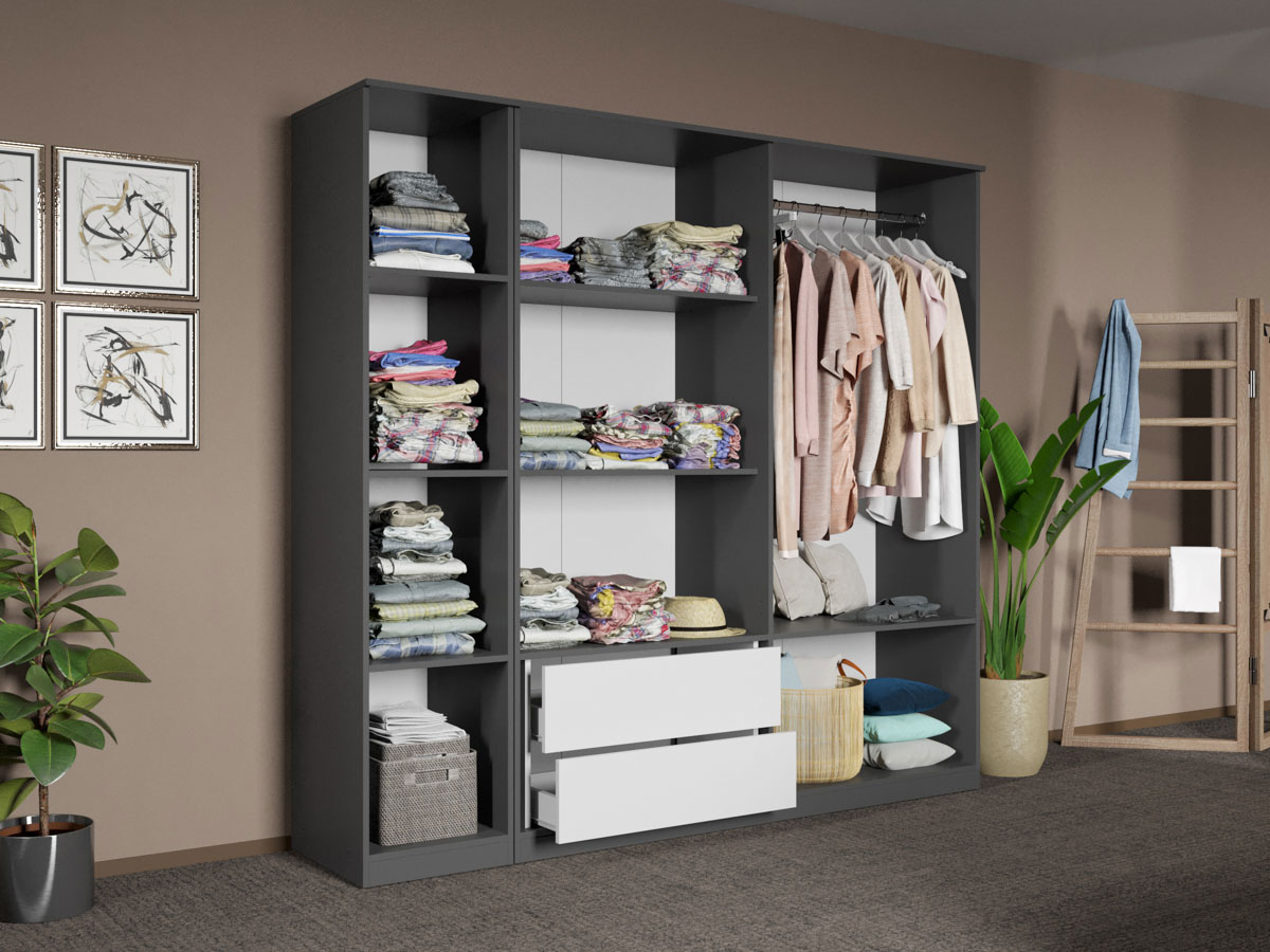 Dulap dormitor Gri+Alb Shape C05 Dulap dormitor Gri+Alb Shape C05 face parte din colectia de dormitor Shape ce este compusa din corpuri de culoare gri antracit si cu elemente albe. Dulapurile sunt spatioase si au un design impunator dat de stilul modern si de manerele generoase de culoare neagra. Piesele pentru dormitor sunt modulare, astfel puteti realiza un dulap pe latimea dorita care sa se incadreze perfect. Dulapurile din colectia Shape pentru dormitor sunt alegerea perfecta pentru a-ti transforma dormitorul intr-un spatiu modern si util. Realizate din materiale de calitate, aceste dulapuri sunt durabile si rezistente in timp. Dulapul de dormitor este compartimentat cu: 10 polite + bara haine + optional corp sertare. Corpul alb cu 6 polite deschise include in pachet 6 X-uri pentru compartimentare si design, puteti folosi optional oricate doriti sau puteti utiliza corpul doar cu polite clasice la alegere. Video de prezentare familie NOTA: videoul de prezentare poate contine mai multe corpuri de mobilier sau mai putine in comparatie cu produsul de pe aceasta pagina. Scopul acestui video este de a detalia aspectul materialelor, accesoriilor cat si a familiei din care face parte. Dimensiuni exterioare dulap dormitor Latime: 205.4 cm Adancime: 48 cm Inaltime: 192.5 cm Dimensiunile produsului pot varia cu ± 10 mm. Informatii Dulap dormitor Gri+Alb Shape C05 Componentele sunt realizate din PAL melaminat avand o grosime de 16 mm. Dulapul poate fi amplasat in diverse incaperi, fiind versatil si usor de integrat si in alte camere. Produsul se expediaza in colete, demontat si este insotit de toate accesoriile si schita de montaj. Costul produsului nu include accesorii sau elemente decorative suplimentare, precum tablouri, lampi, covoare etc. Scopul fotografiilor este de a oferi o reprezentare generala, insa exista posibilitatea unor mici variatii de culoare cauzate de dispozitivele utilizate. Designul lor modern si rafinat se integreaza perfect in orice stil de amenajare a dormitorului. Fie ca preferi un aspect minimalist sau unul clasic, dulapurile Shape sunt concepute pentru a se potrivi cu gusturile si preferintele tale. Dulapurile de dormitor ofera o multitudine de optiuni de organizare interioara, astfel incat sa-ti poti depozita hainele si accesoriile intr-un mod eficient. In plus, dulapurile sunt usor de intretinut si curatat. Suprafetele lor rezistente la zgarieturi iti vor asigura ca dulapul tau va arata mereu impecabil. Alege un dulap din colectia Shape pentru a-ti completa dormitorul cu un element de mobilier functional si elegant. Transforma-ti spatiul personal intr-un loc relaxant si organizat cu ajutorul acestor dulapuri de calitate superioara.