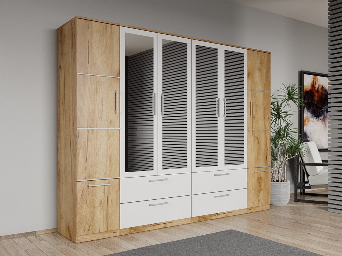 Dulap dormitor Stejar Auriu-alb 6U cu 4 oglinzi – Acapulco