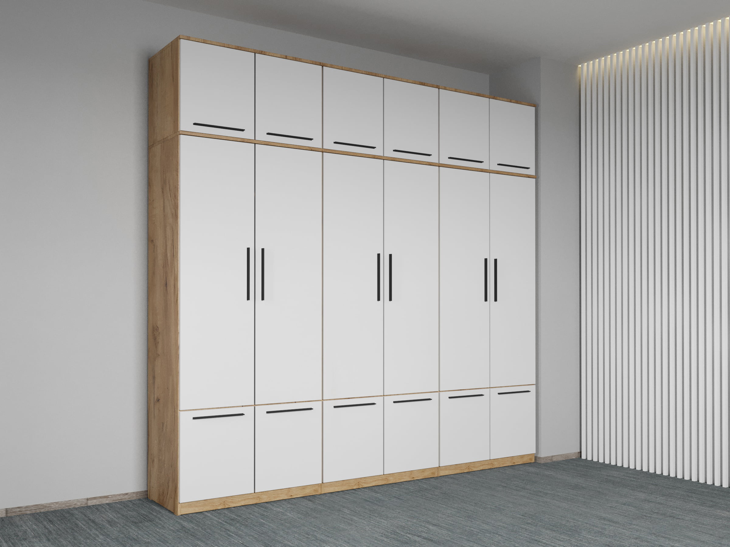 Dulap dormitor Stejar+Alb 6U+suprapozabil – Madrid