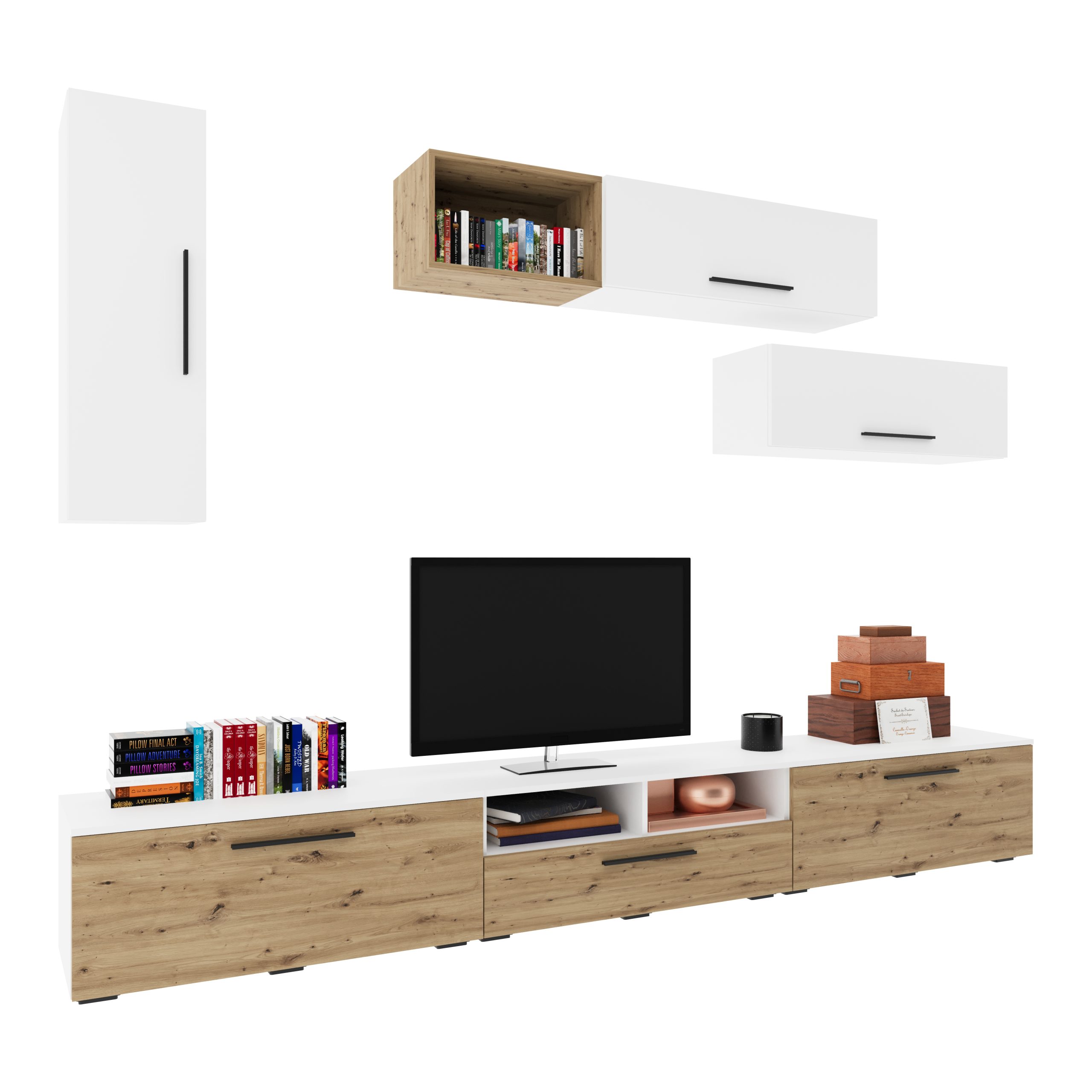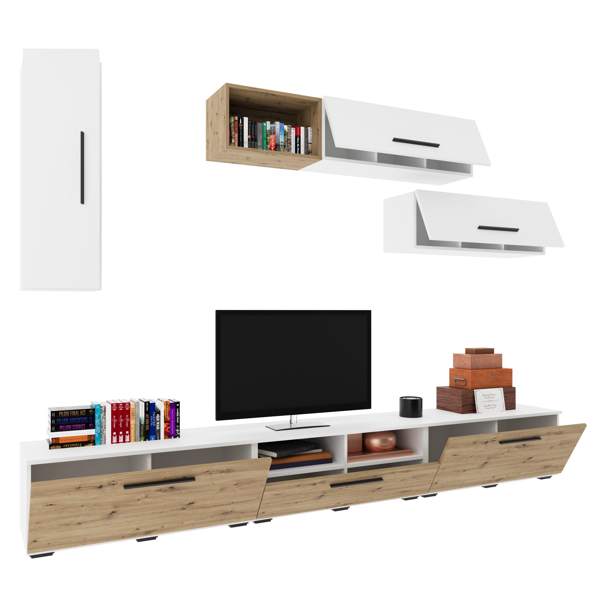 Living Kos V19, Alb/Stejar Artisan, L 285 cm