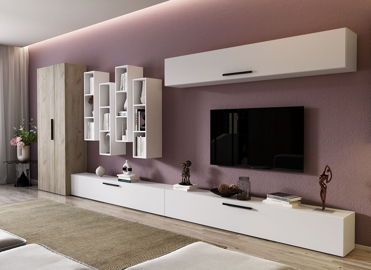 Living Pati 051 – Mobila Sufragerie Alba Living Pati 051 – Mobila Sufragerie Alba face parte dintr-o categorie de mobilier modern, contemporan ce imbina designul cu utilitatea. Familia de living Pati are 4 decoruri: stejar, alb, gri si beton . Am realizat peste 100 de configuratii din care puteti alege cu dimensiuni si stiluri diferite. Dulapul de haine este optional si puteti alege unul sau mai multe bucati. Livrare gratuita si rapida, 4-10 zile lucratoare prin flota proprie Suntem producatori de mobilier, fara intermediari Toate piesele de mobilier au o garantie de 2 ani Corpurile sunt construite din PAL melaminat de 16mm. Cantul aplicat este de 0,6 ce le permite muchiilor sa fie placute la atingere . Dimensiuni Living Pati 051 – Mobila Sufragerie Alba Imaginea alaturata prezinta compartimentarea pentru mobila de sufragerie Pati. Aceasta configuratie contine urmatoarele corpuri: 3 x Corp 1850: L 185 x H 29 x A 26.7 cm 4 x Corp decorativ: L 91.5 x H 23.2 x A 25 cm Optional dulap: L 79.8 x H 185 x A 35 cm Dimensiuni totale living Pati Fara dulap: L 370 x A 26.7 x H 180 cm Cu un dulap: L 449.8 x A 35 x H 185 cm Spatiul de TV: diagonala maxima 139 cm. Toate corpurile se pot pune pe stanga sau pe dreapta in functie de cum doriti. Nu este obligatoriu pozitionarea ca in prezentare. Ele nu sunt prinse unul de celalalt, sunt independente. SCHITA MONTAJ CORP 1850 SUSPENDAT SCHITA MONTAJ CORP 1850 COMODA SCHITA MONTAJ CORP DECORATIV SCHITA MONTAJ dulap 2U Pati Pretul afisat nu include alte accesorii sau obiecte de decor (TV, tablouri, elemente de iluminat, covor etc.) Dimensiunile sunt exprimate in cm si pot oscila intre ± 10 mm. Produsul se livreaza demontat si este insotit de accesorii si instructiuni de asamblare.